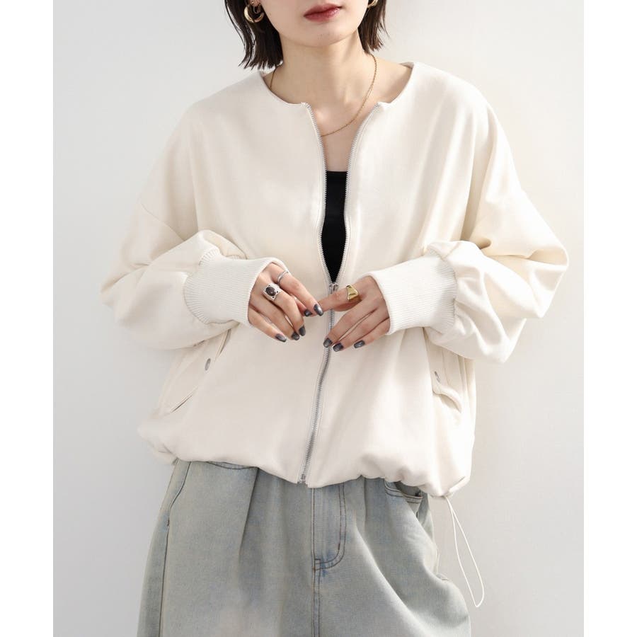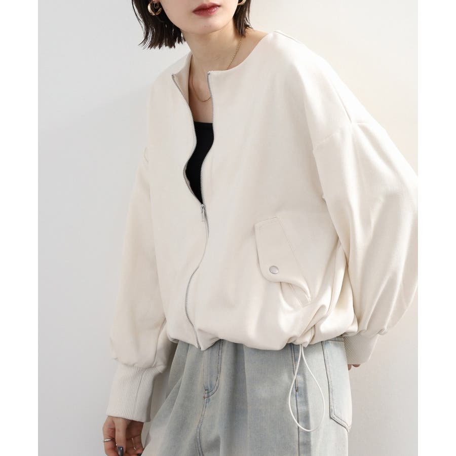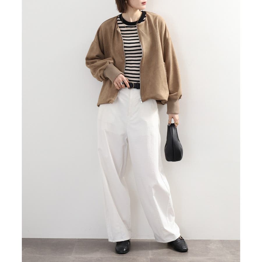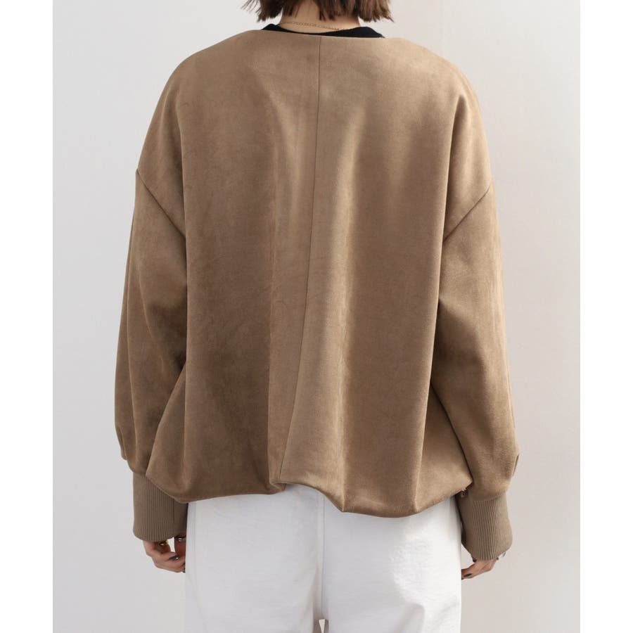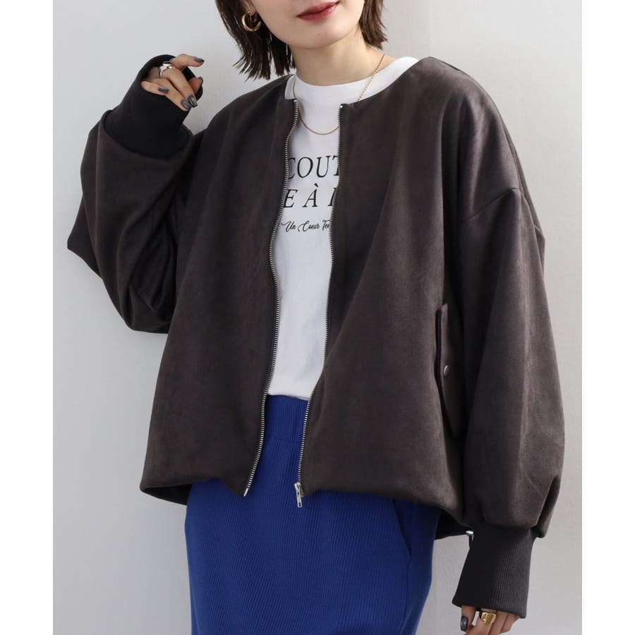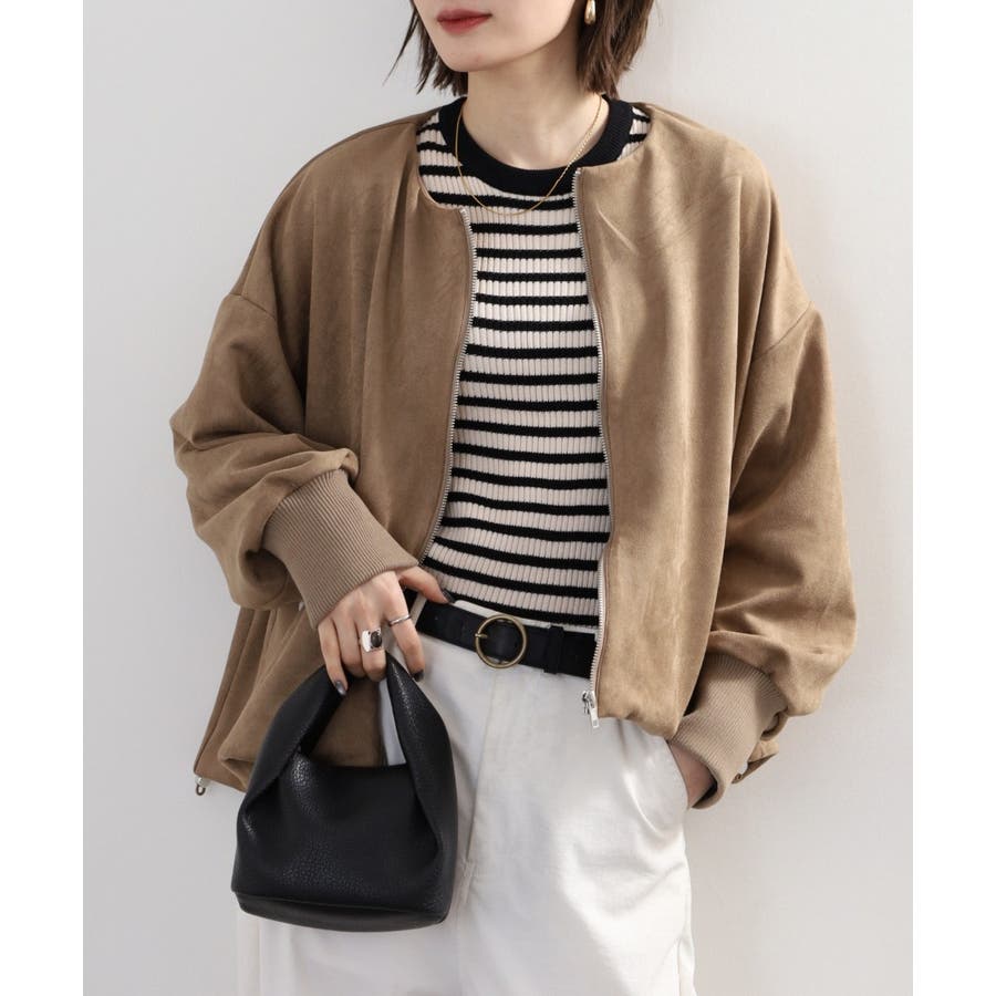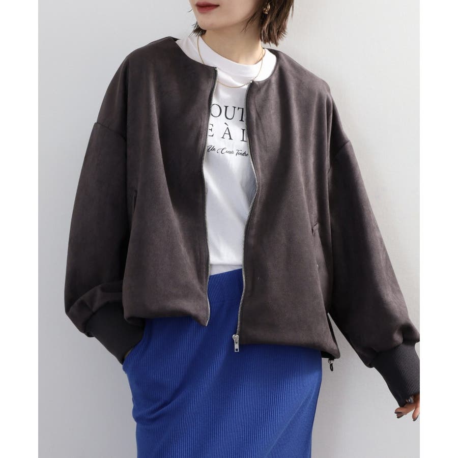 フェイクスエードポンチの上品な質感と軽やかな着心地が魅力で、バルーンシルエットが自然な立体感をつくる万能ブルゾン。