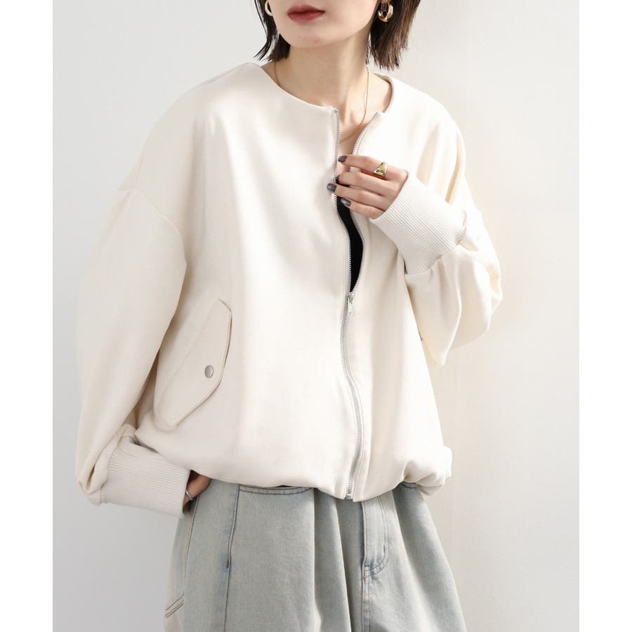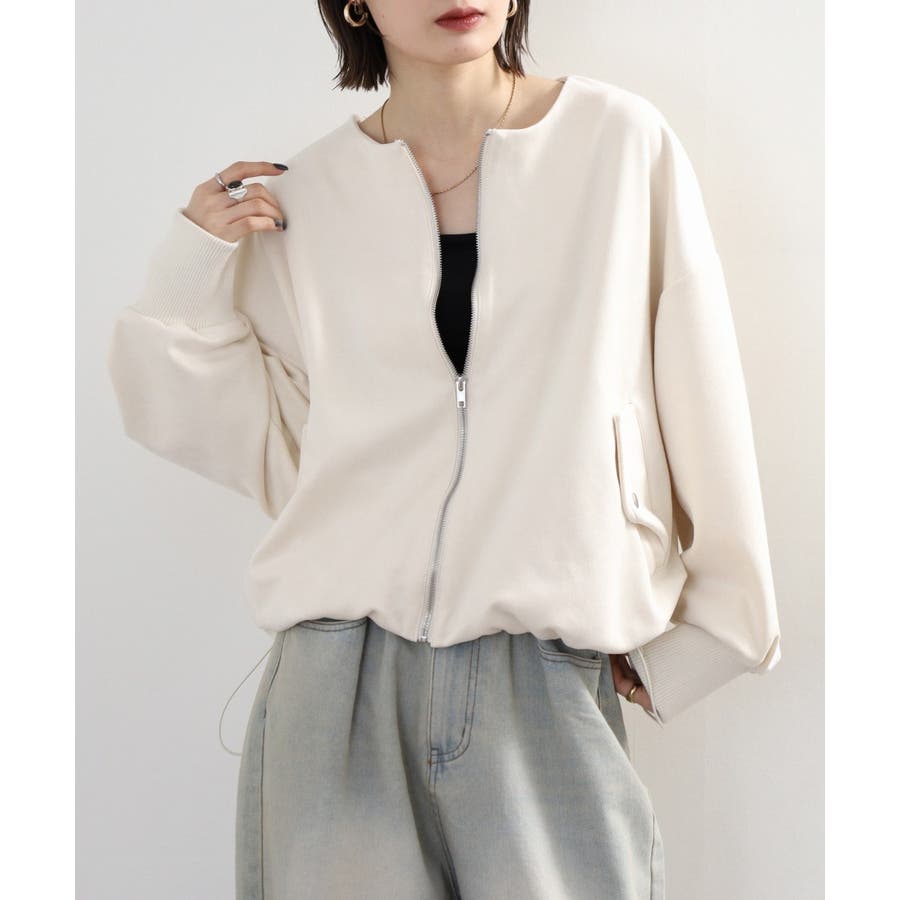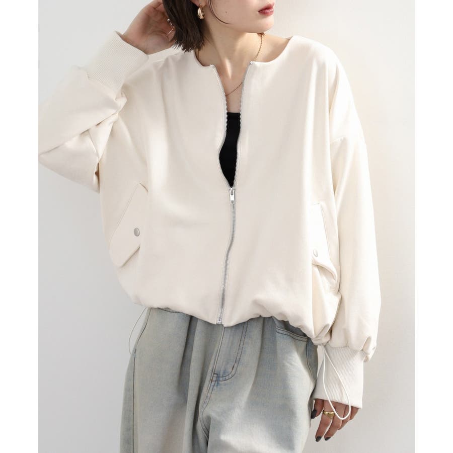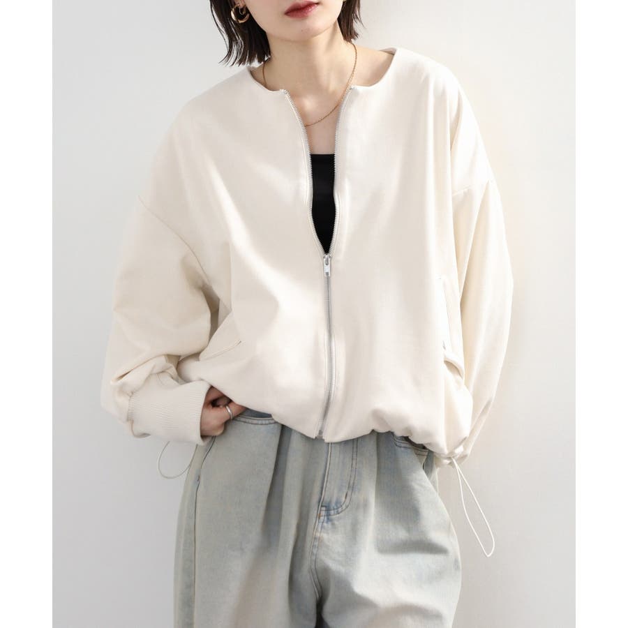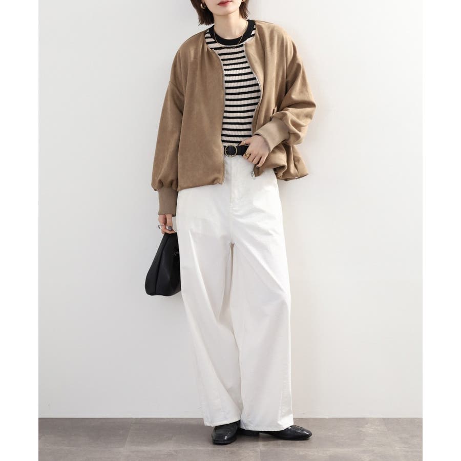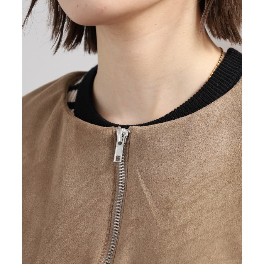 フェイクスエードポンチの上品な質感と軽やかな着心地が魅力で、バルーンシルエットが自然な立体感をつくる万能ブルゾン。