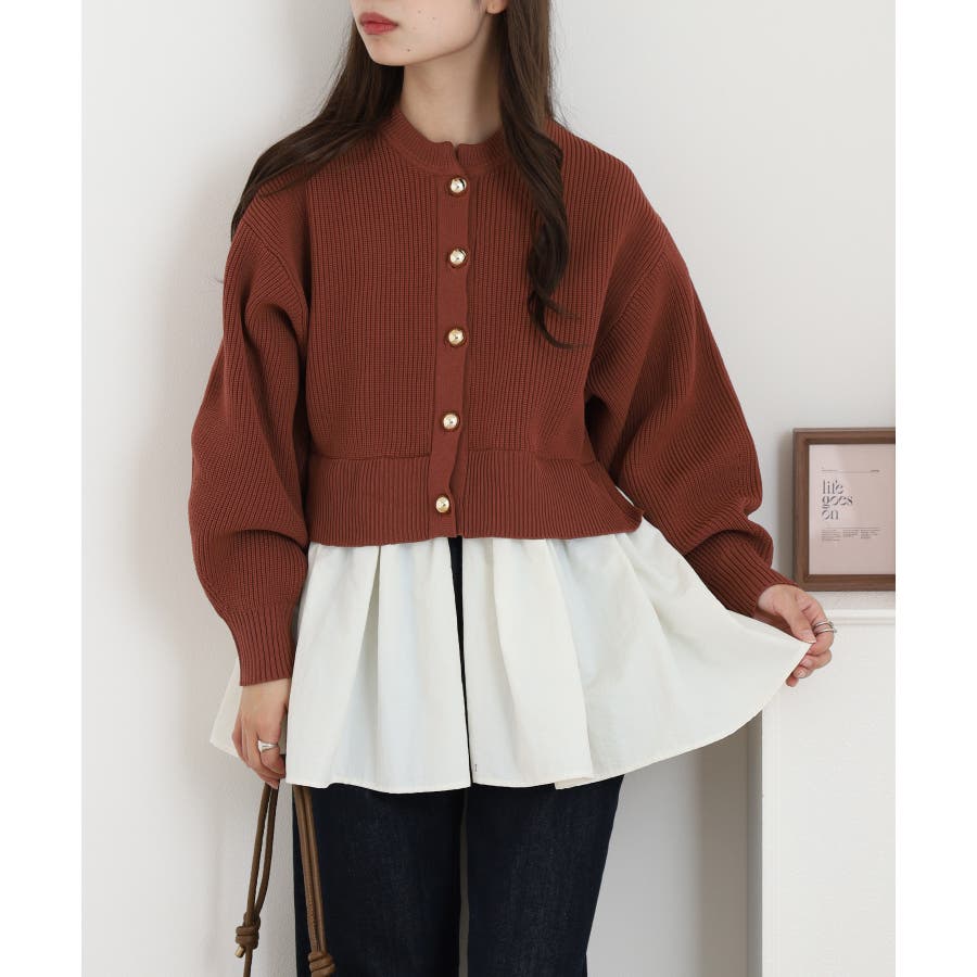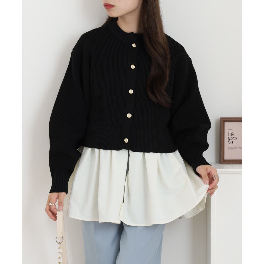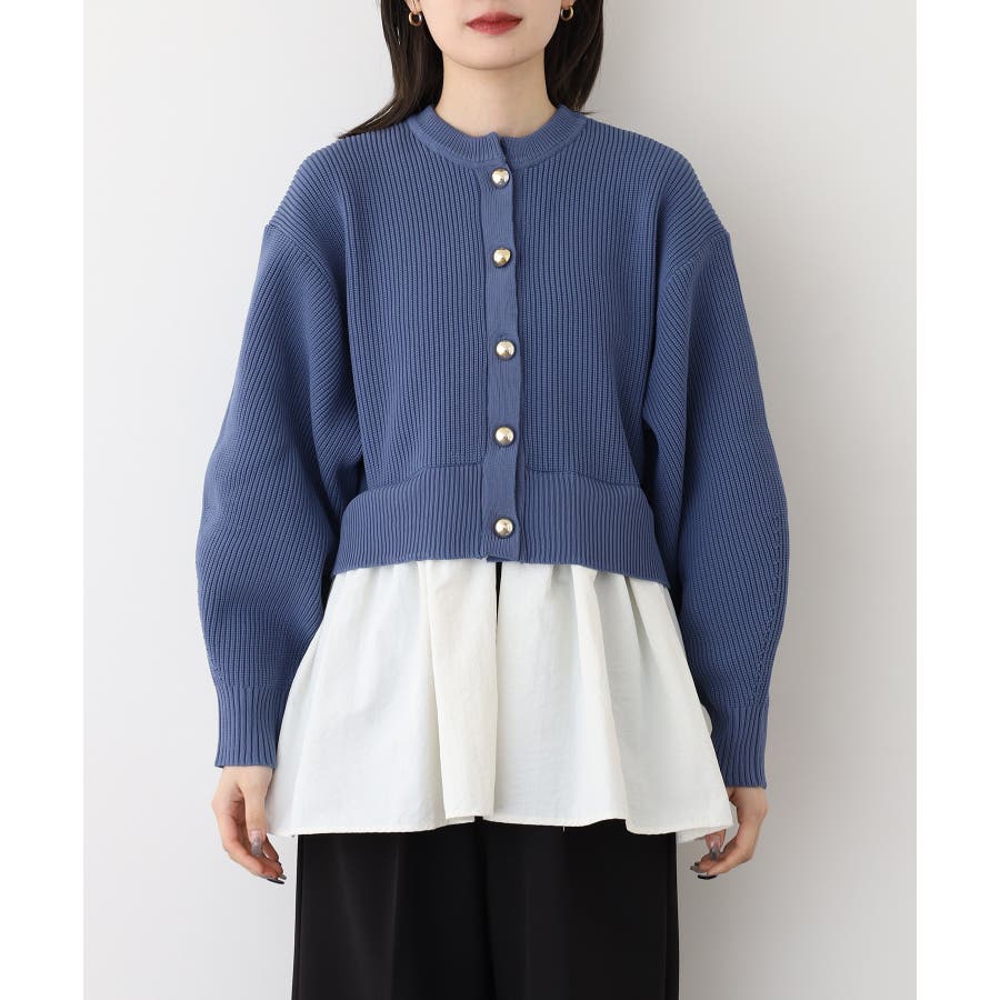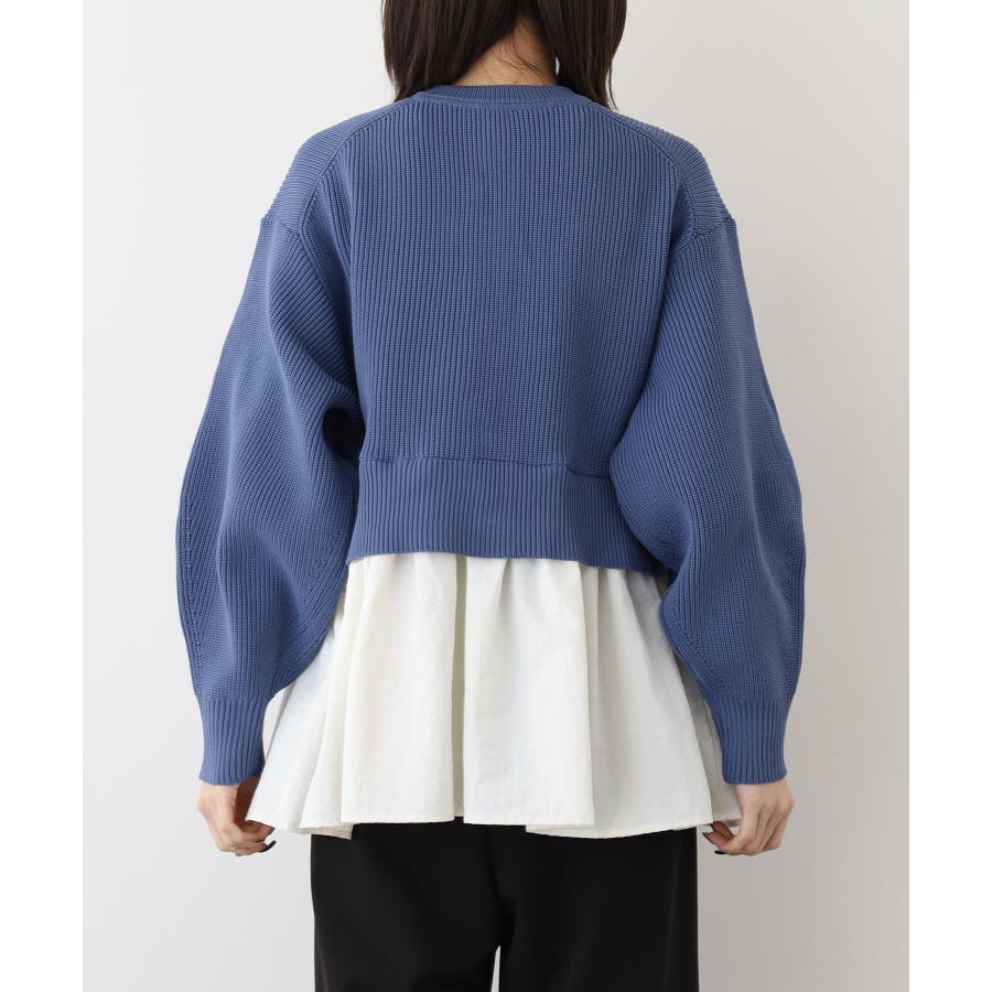 ・立体感のあるニットの風合いと、軽やかなシャツ素材のコントラストが新鮮な印象を演出します。