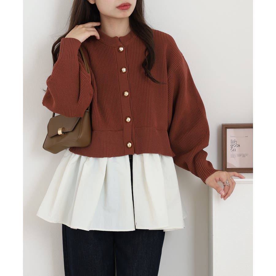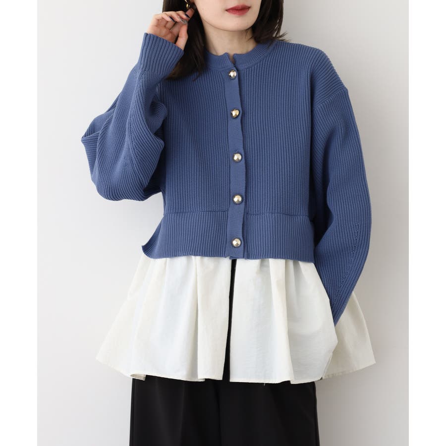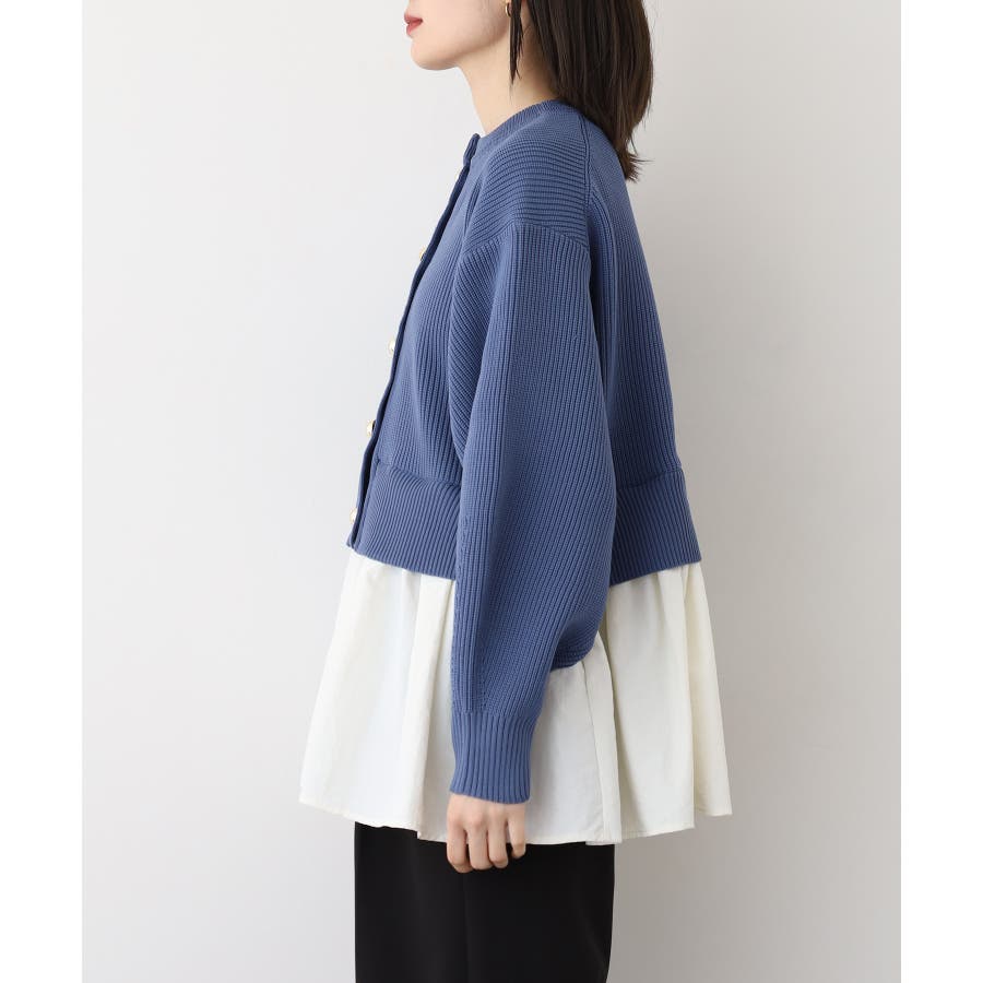 ・5GGの方畦スポンディッシュニットとナイロンシャツをドッキングした異素材MIXカーディガン。