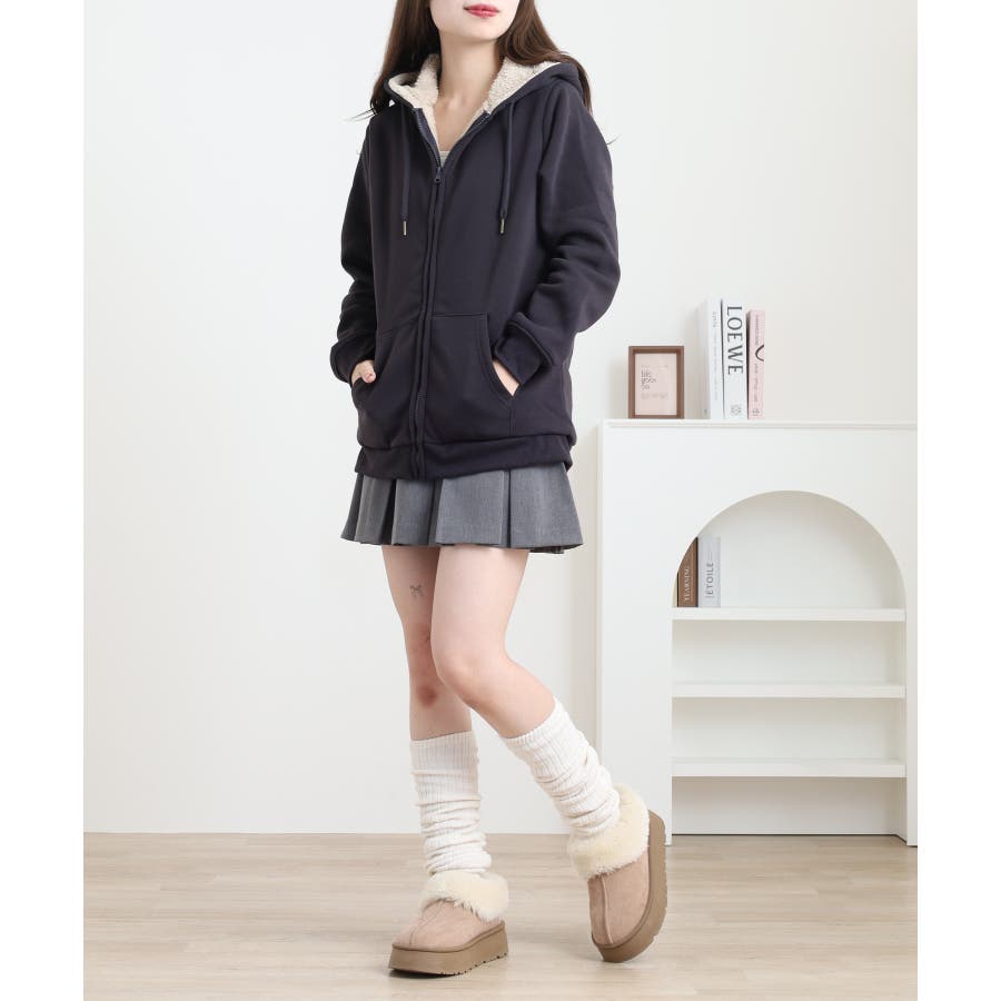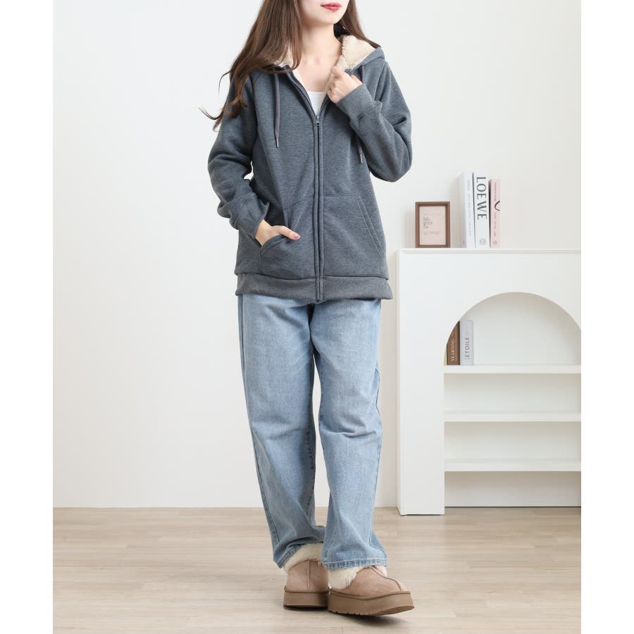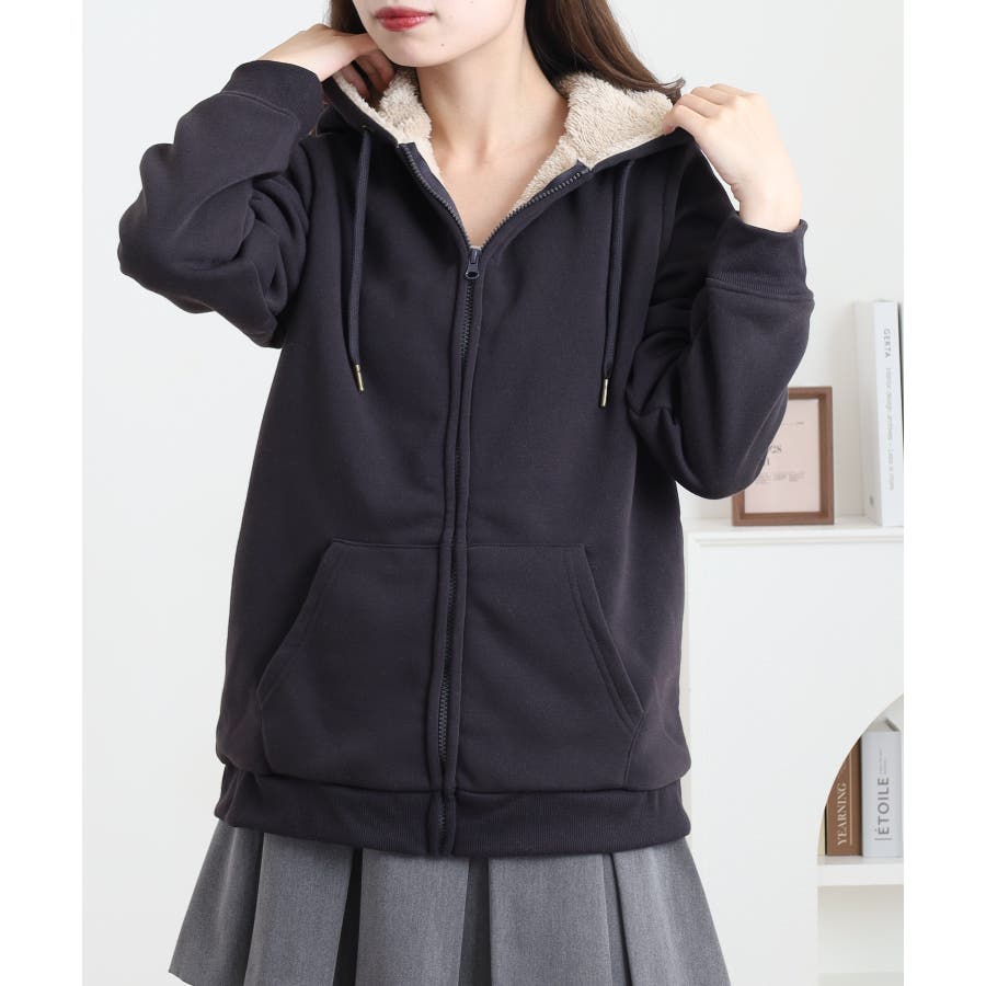 裏ボア仕様でふわもこな暖かさを実現し、長めの着丈で腰回りまでしっかり防寒。
