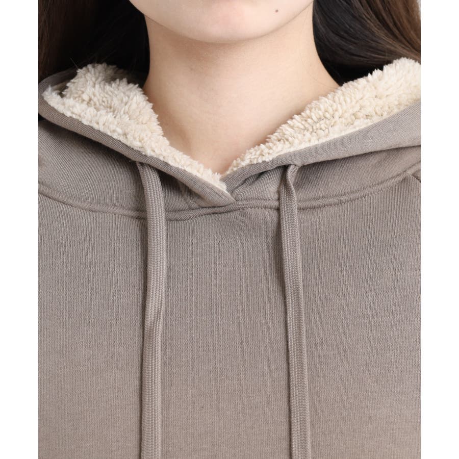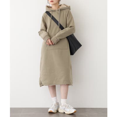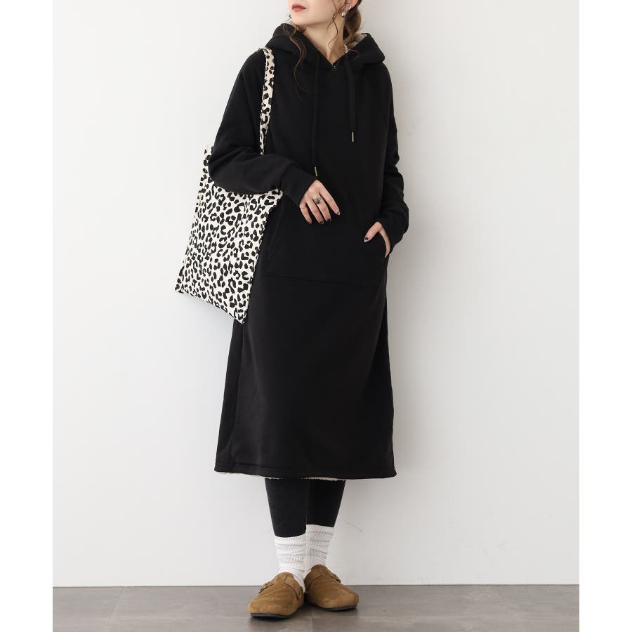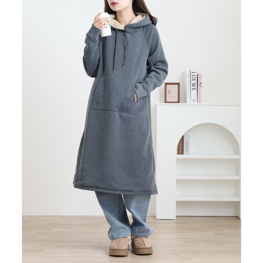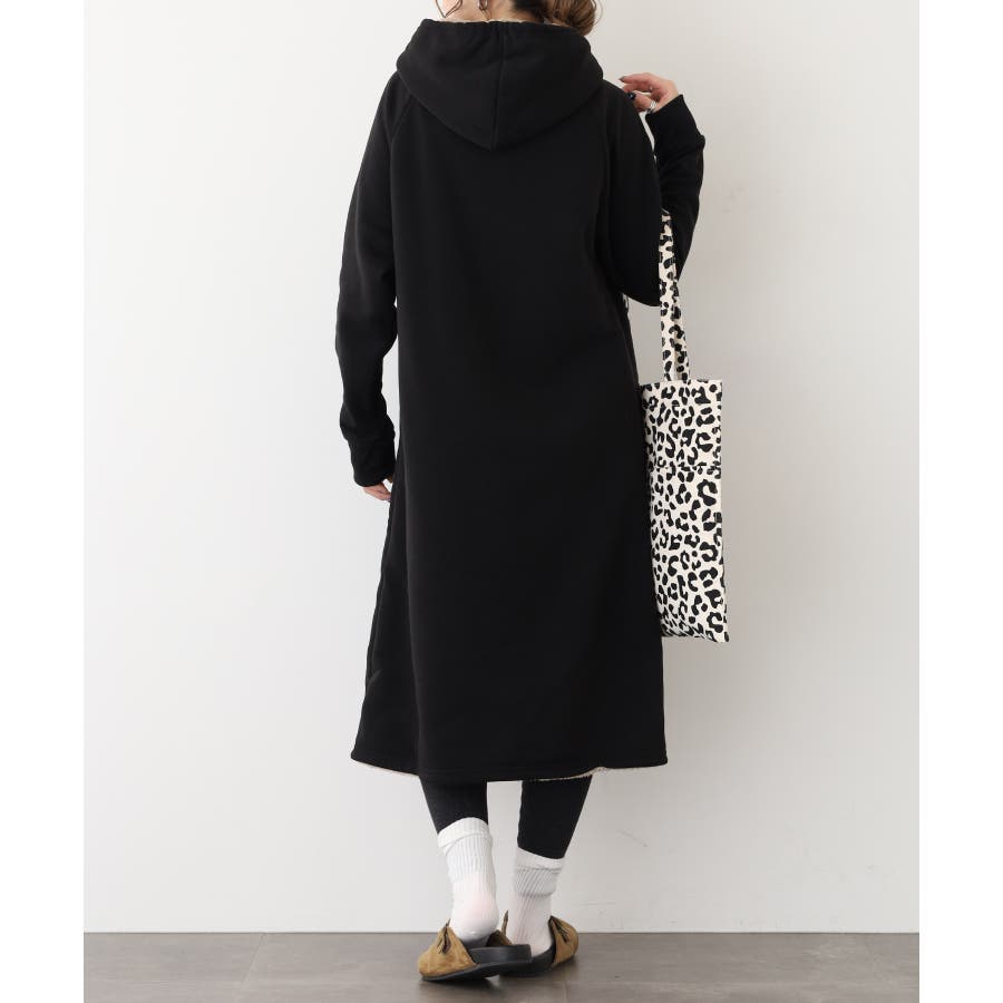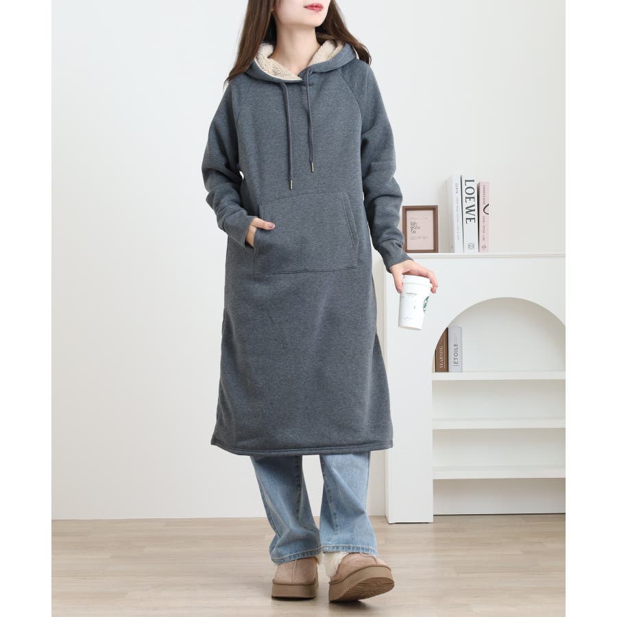 袖は裏起毛で着ぶくれしにくく、冬の一枚着としても重宝するパーカーワンピースです。