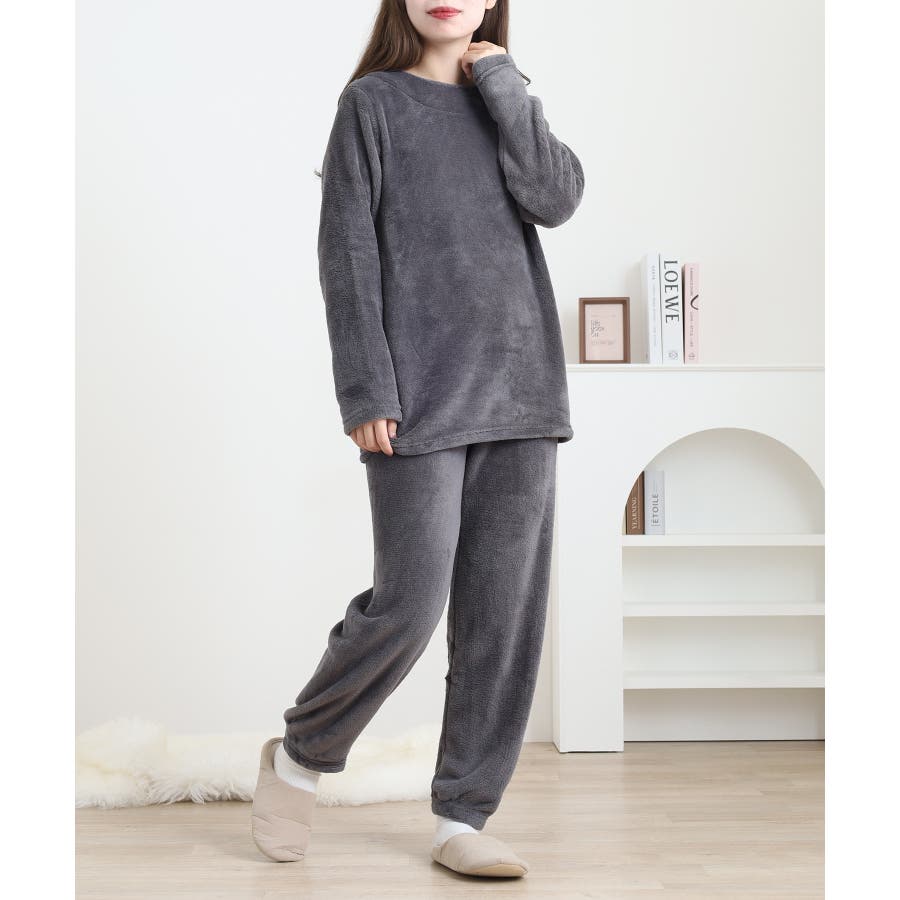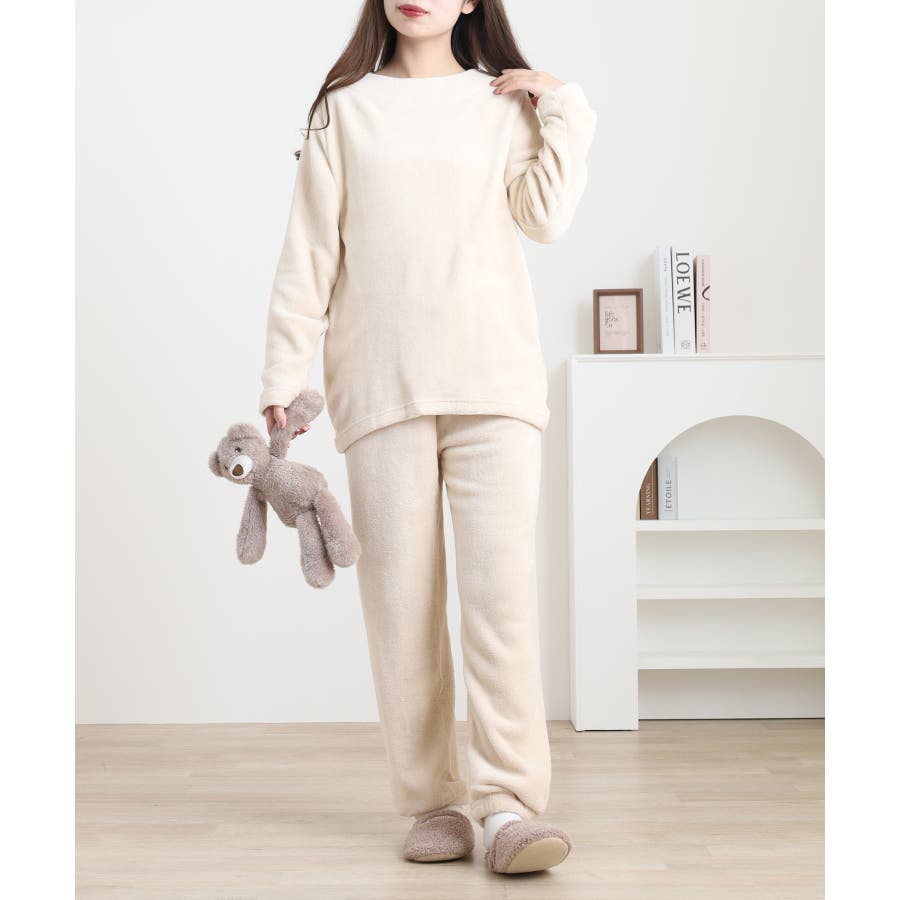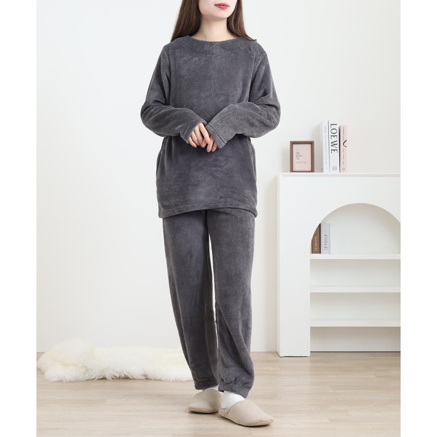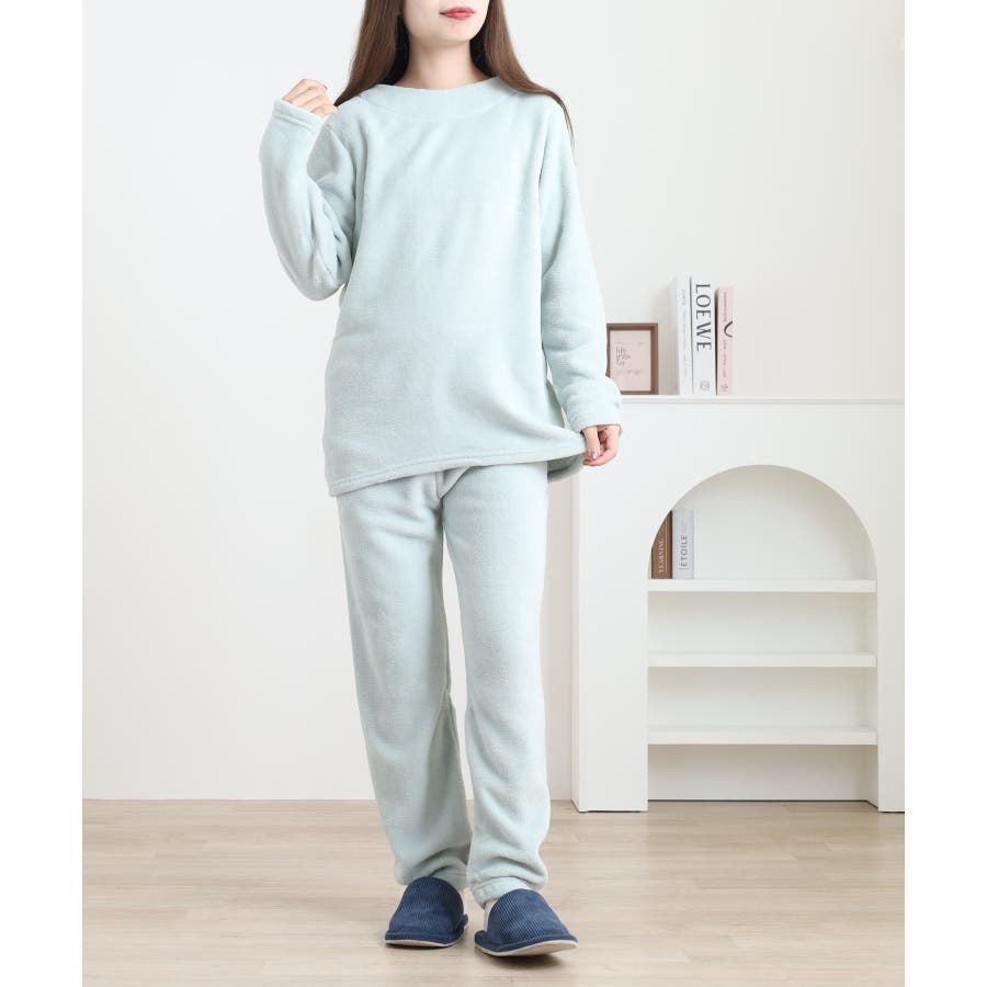 ふんわりとしたマイクロファイバー素材で、軽くて暖かくリラックス感のある上下セット。