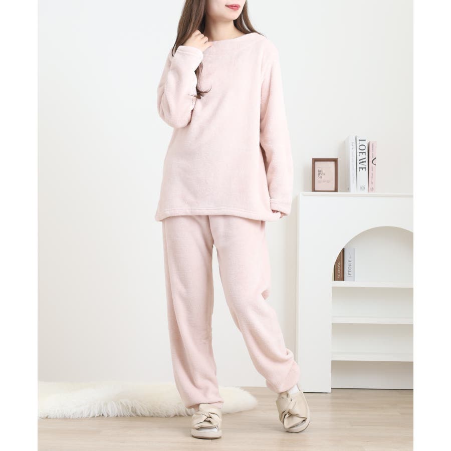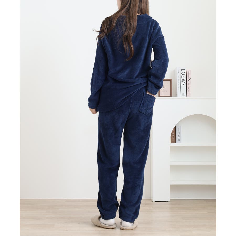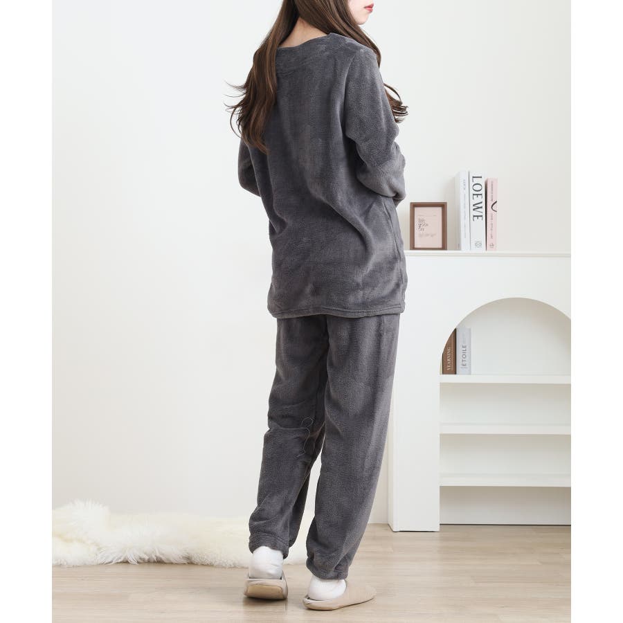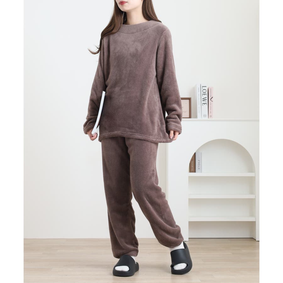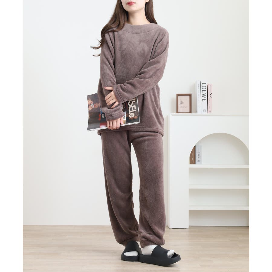 ふんわりとしたマイクロファイバー素材で、軽くて暖かくリラックス感のある上下セット。