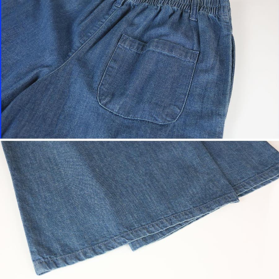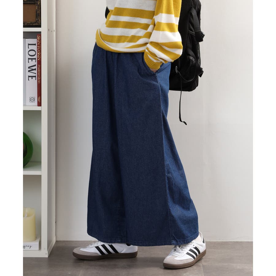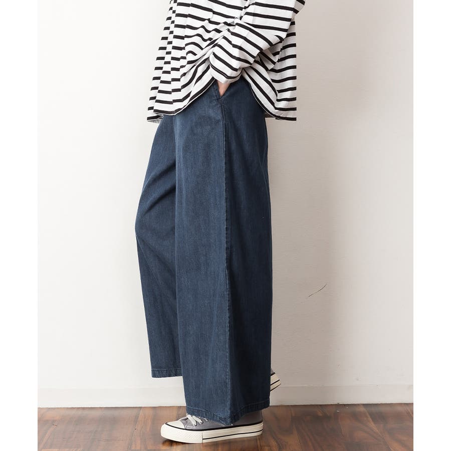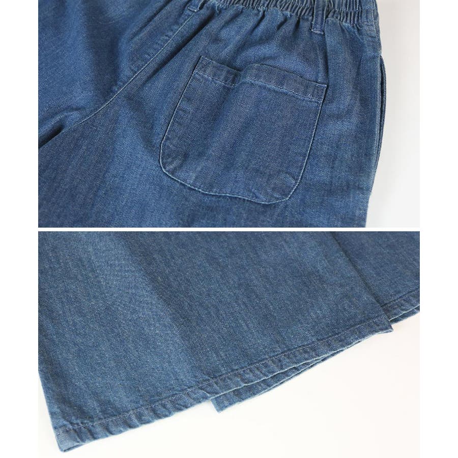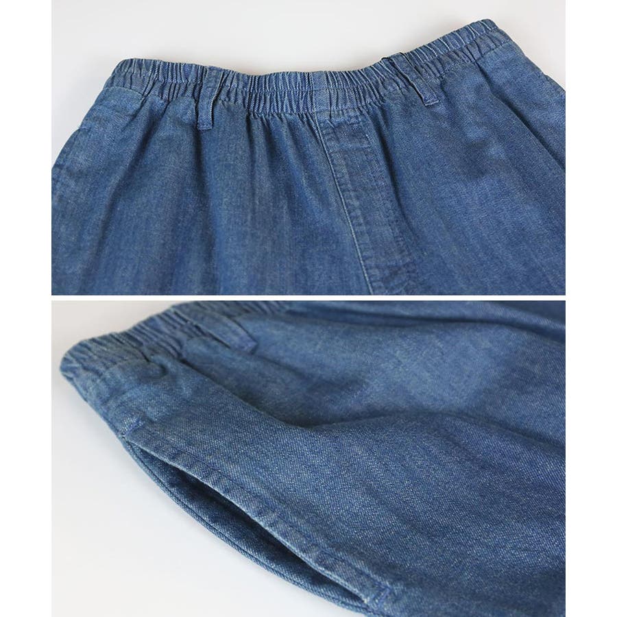 ウエストゴムで楽ちんなのにこなれたおしゃれ感のあるデニムワイドパンツ♪綿100%のライトデニムなので軽やかで夏でもはきやすい一枚です!ポケットは両サイドと後ろにも一つ付いていてオシャレなだけでなく使いやすい♪ウエストインしてベルトをつけても良し!トップスをインせずして着ても良し!あわせやすいのでヘビロテ間違いなしです!