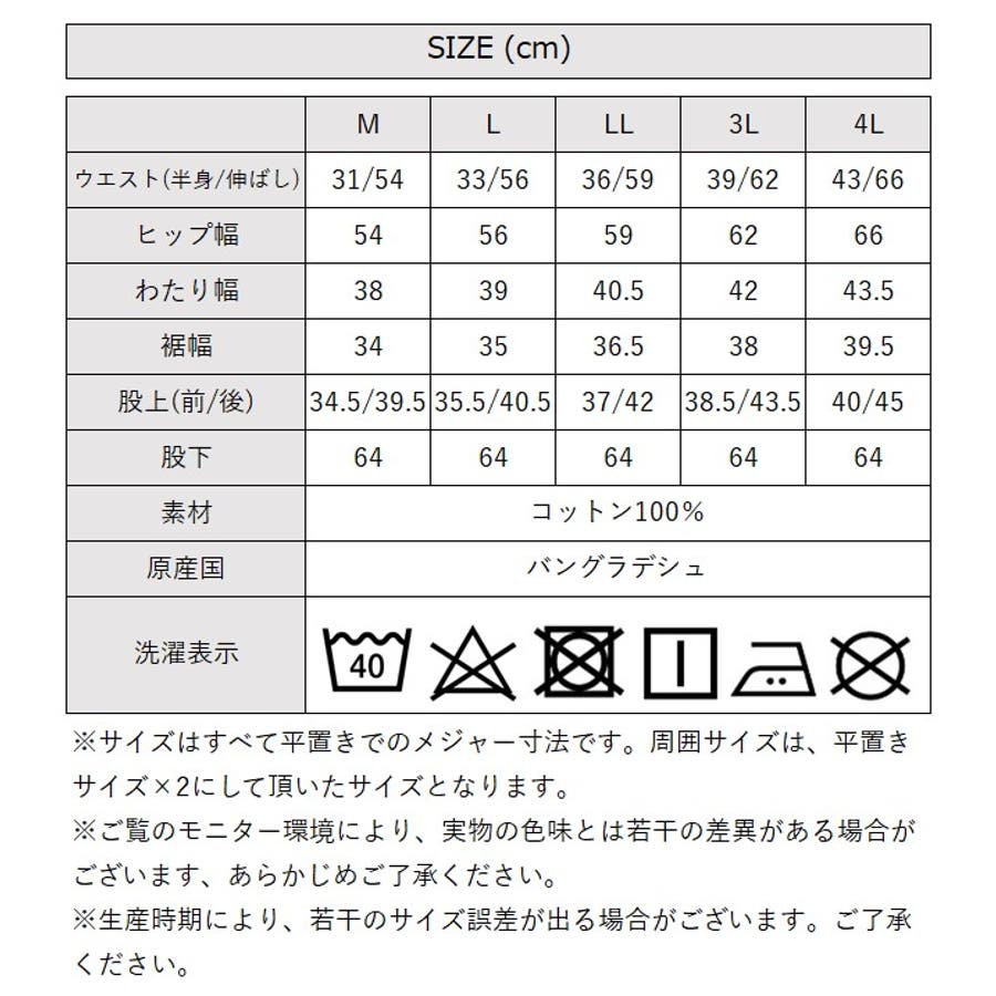 3L:ウエスト約80 ヒップ約120 総丈約99 股下約 64 わたり幅約40 裾幅約38