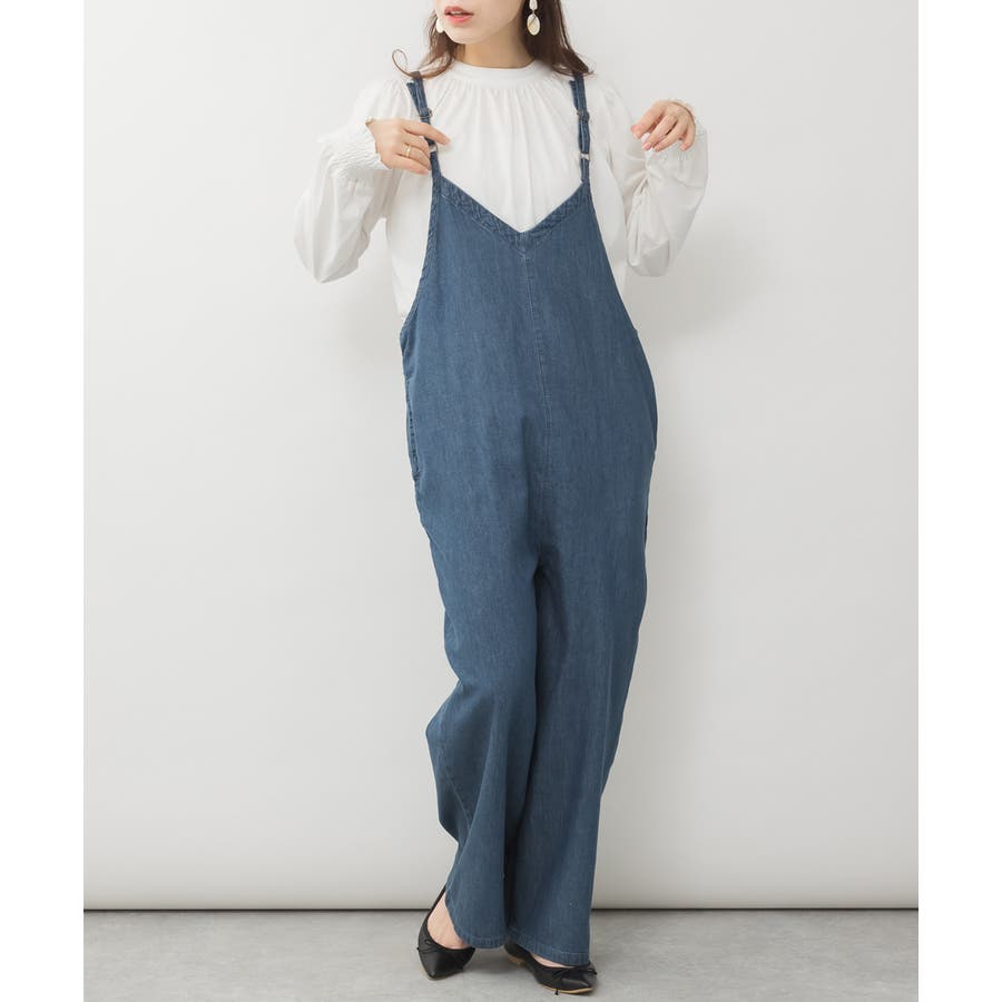 ゆったりワイドキャミオールインワンデニム レディース ボトムス