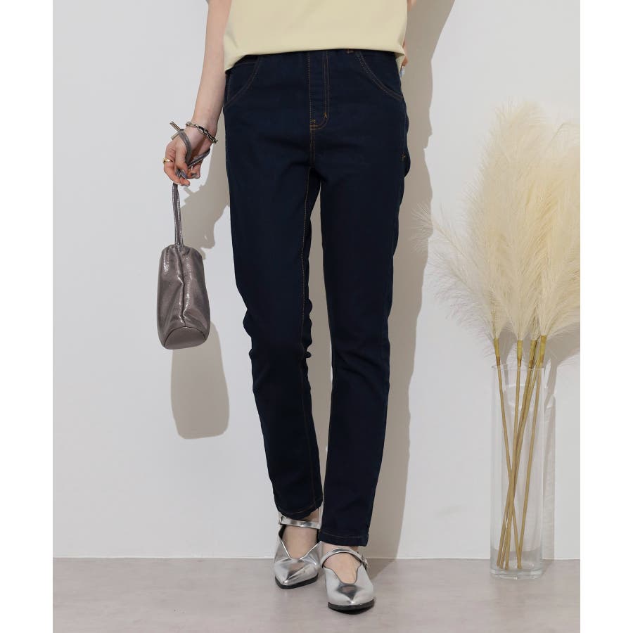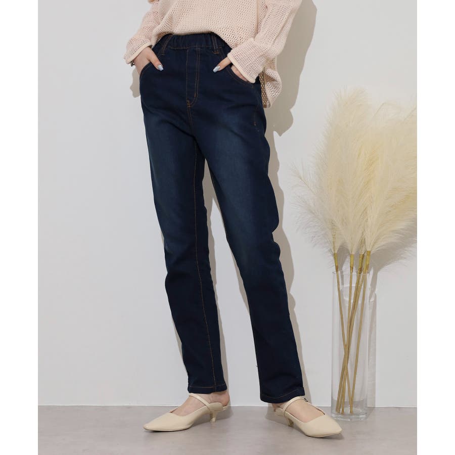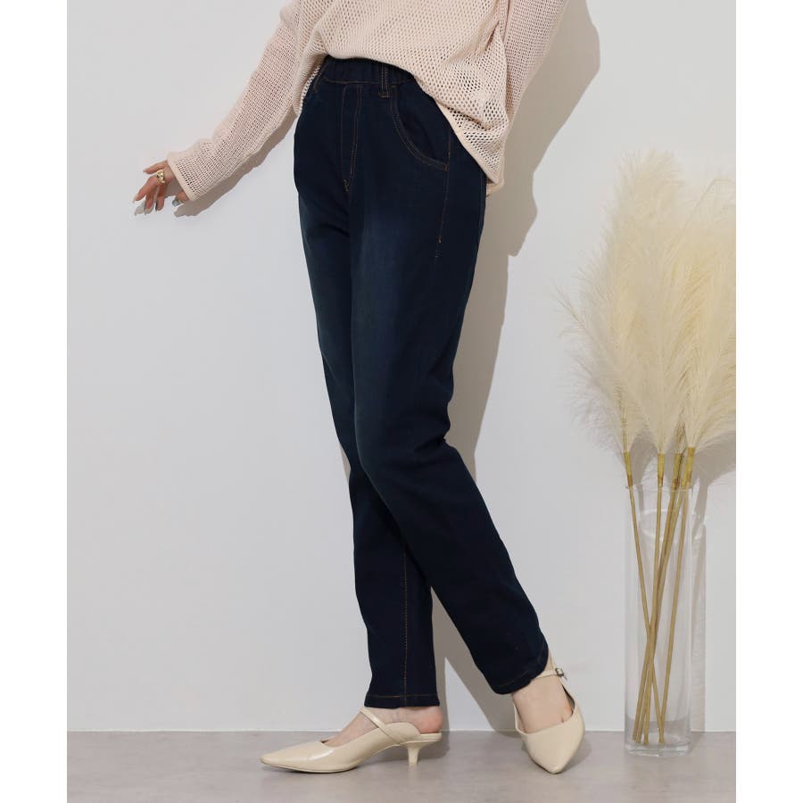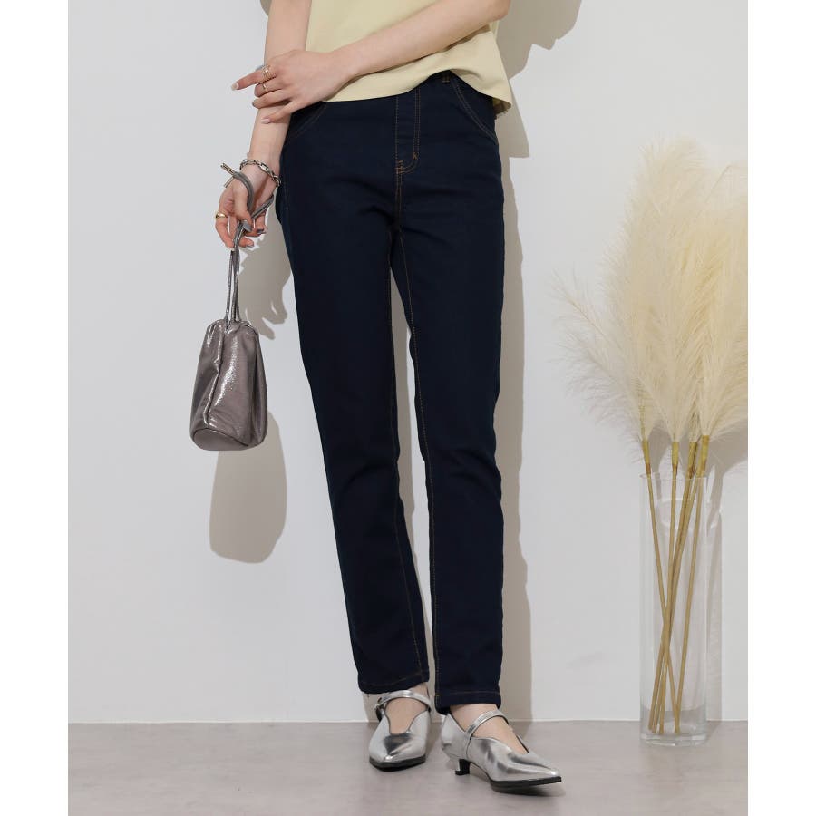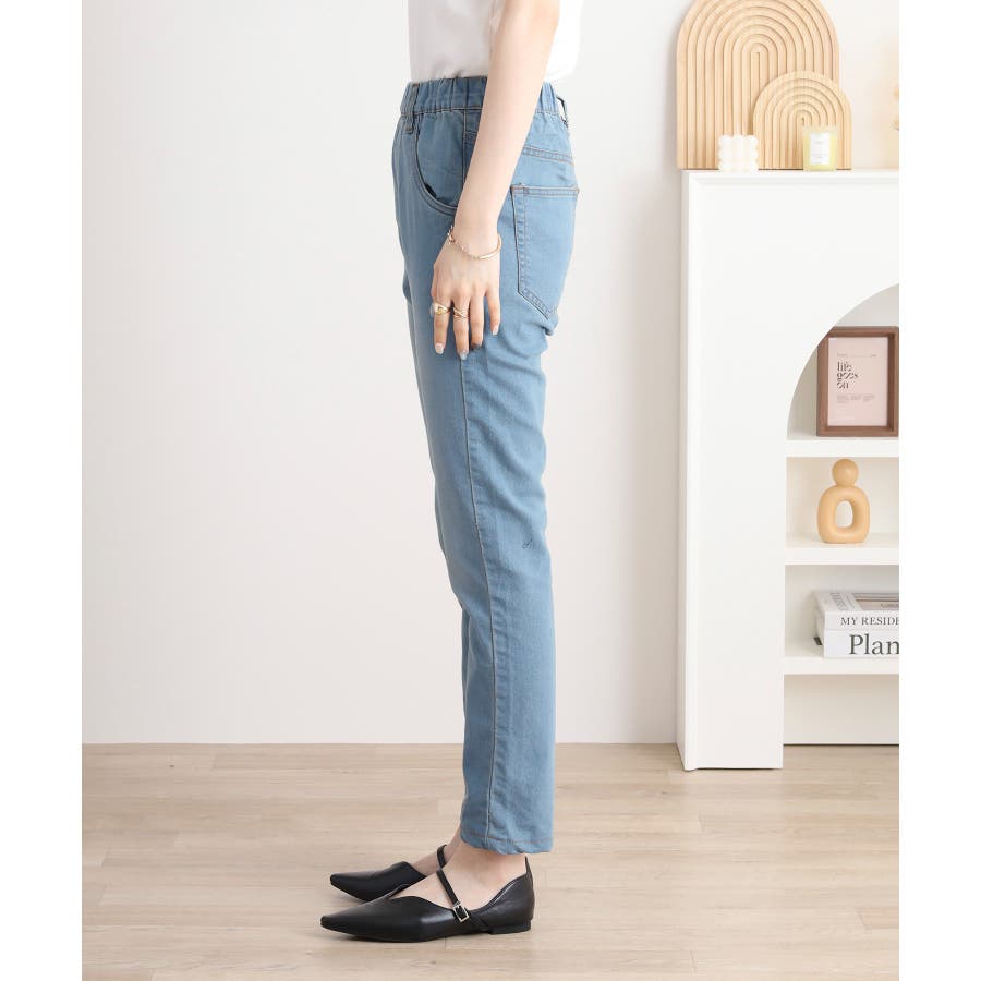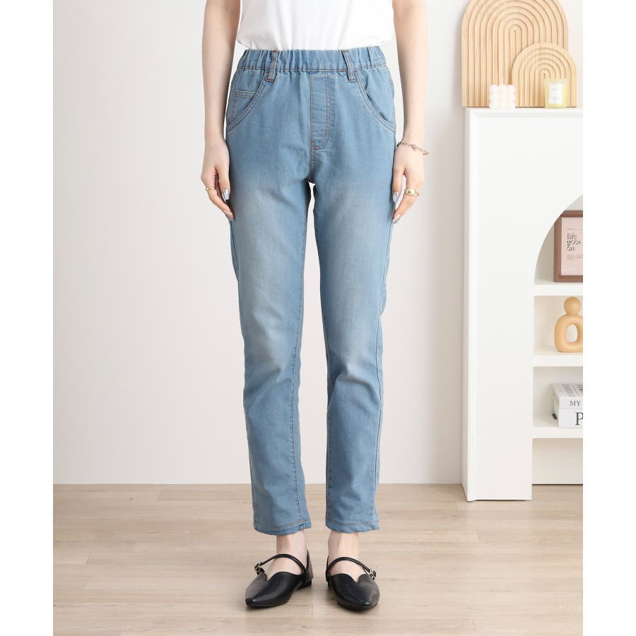 ストレッチデニムウエストゴムスリムパンツ