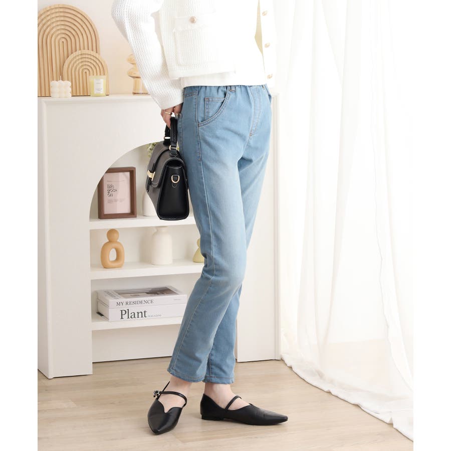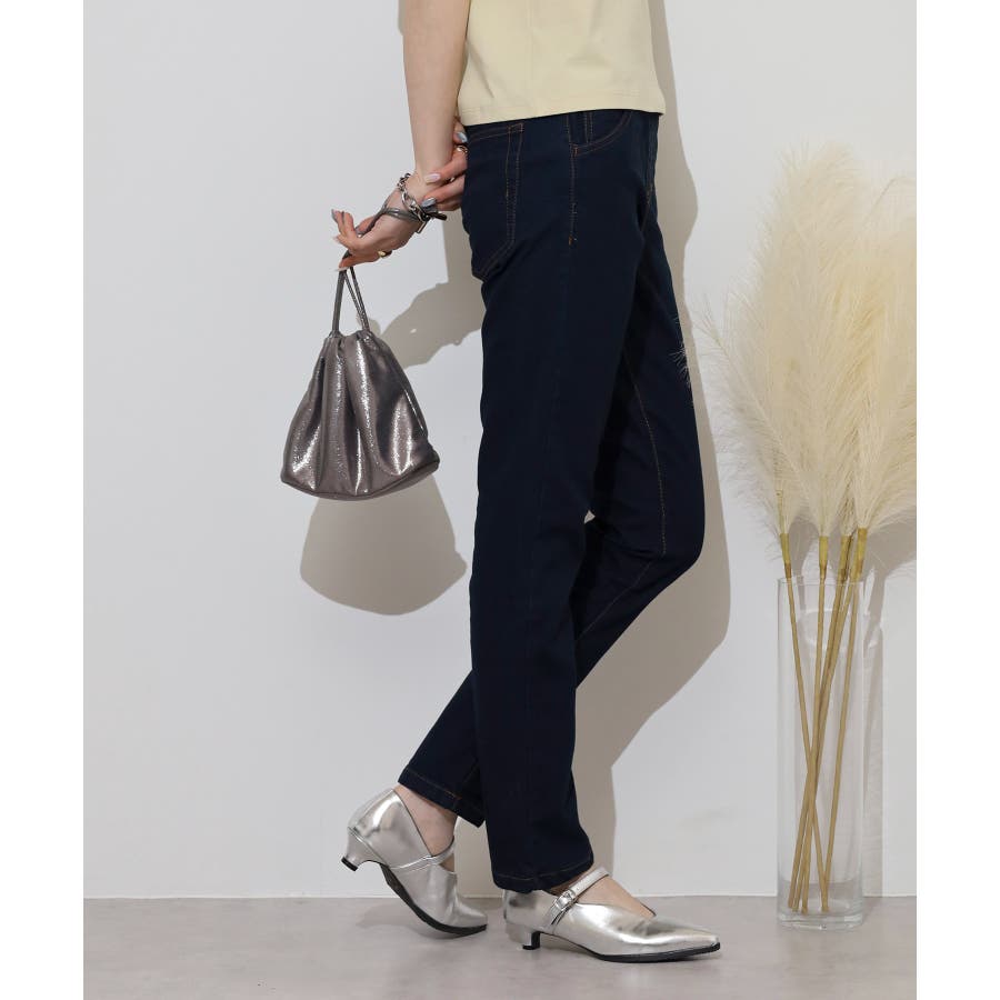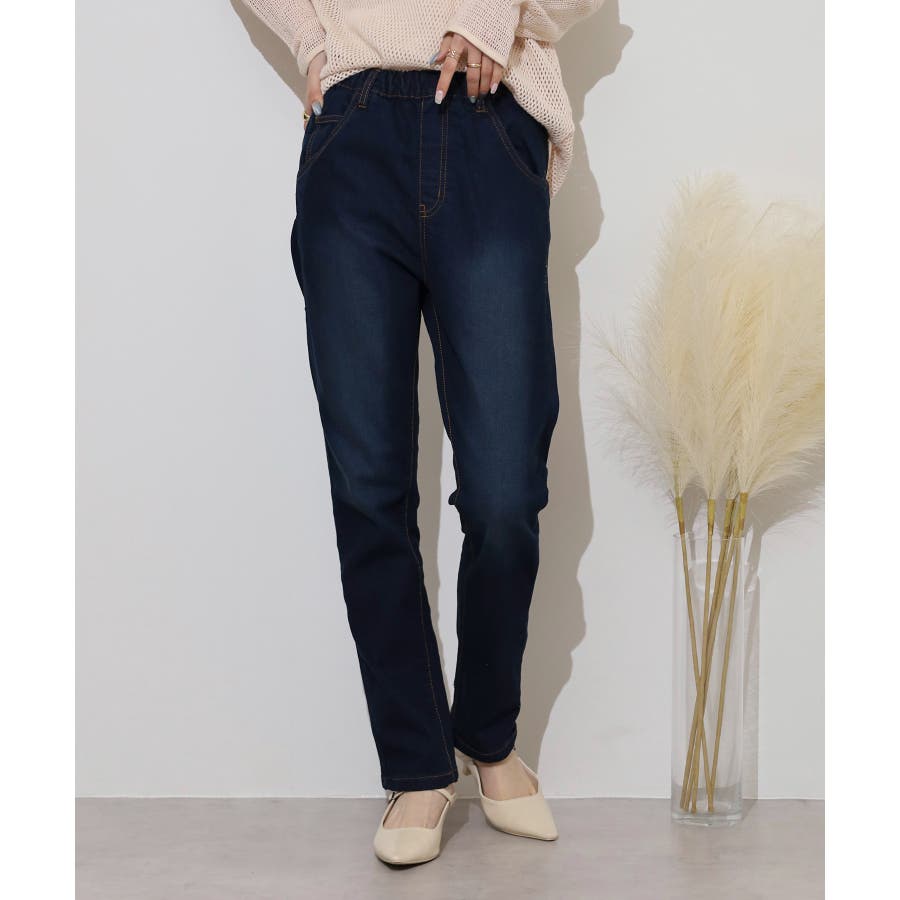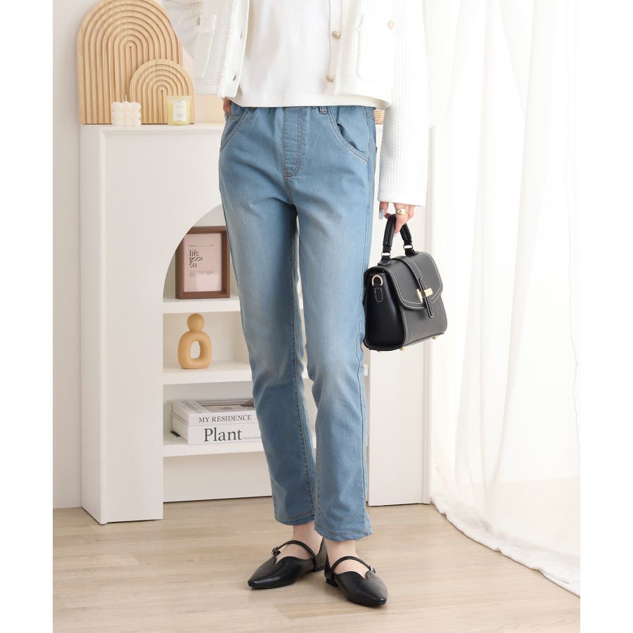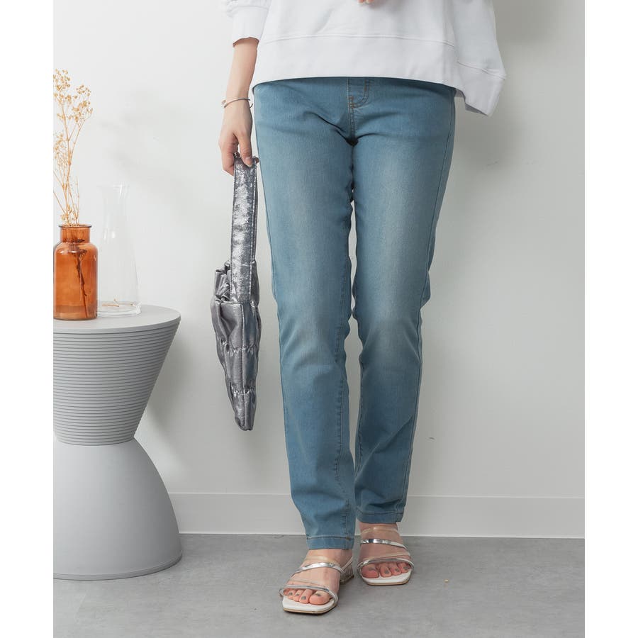 ストレッチデニムウエストゴムスリムパンツ