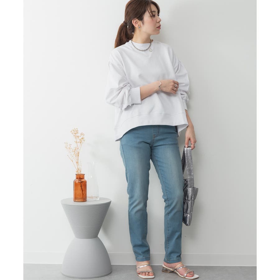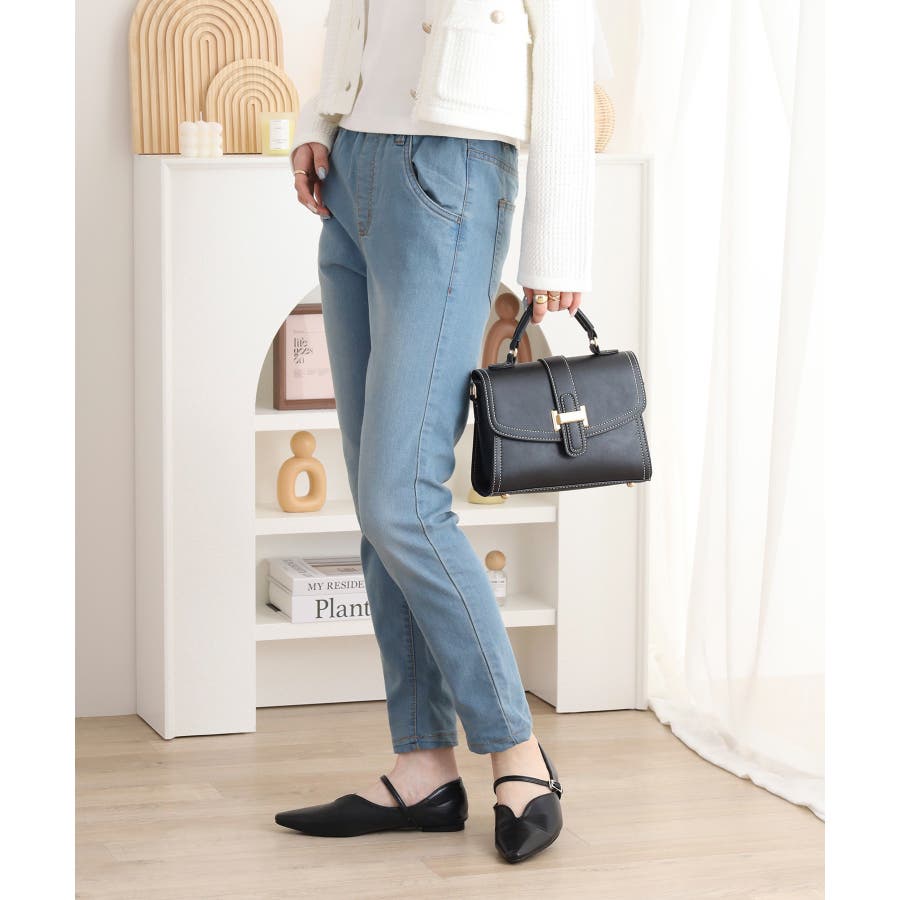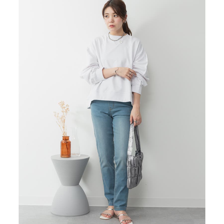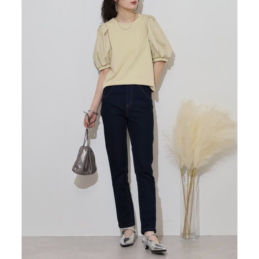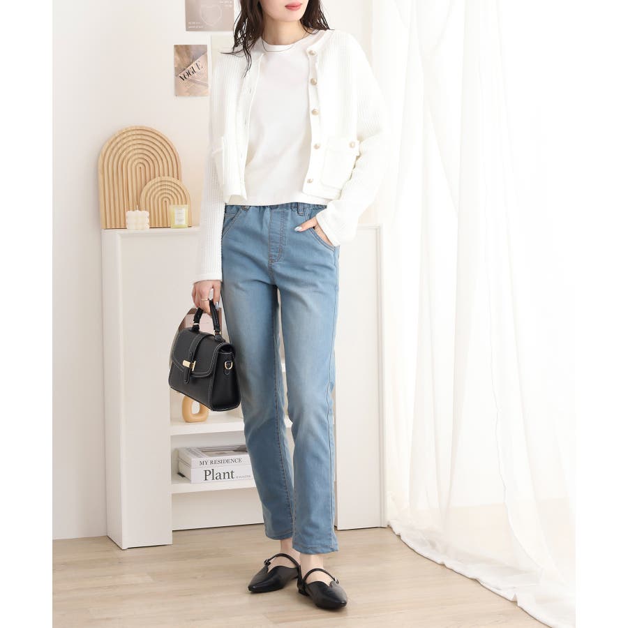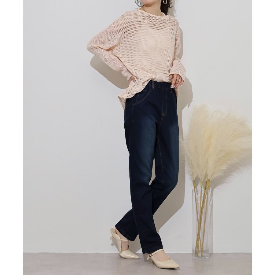 ストレッチデニムウエストゴムスリムパンツ