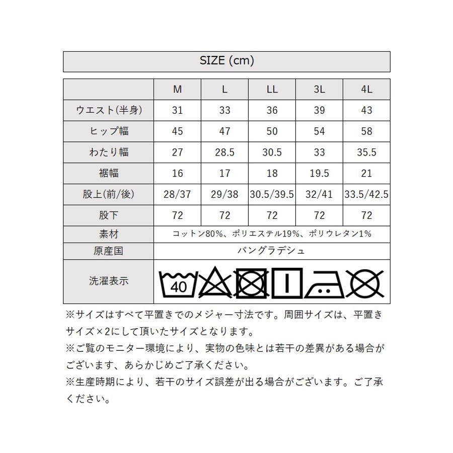 [3Lサイズ]ウエスト(半身):39cm、ヒップ幅:54cm、わたり幅:33cm、裾幅:19.5cm、前股上:32cm、後股上:41cm、股下:72cm