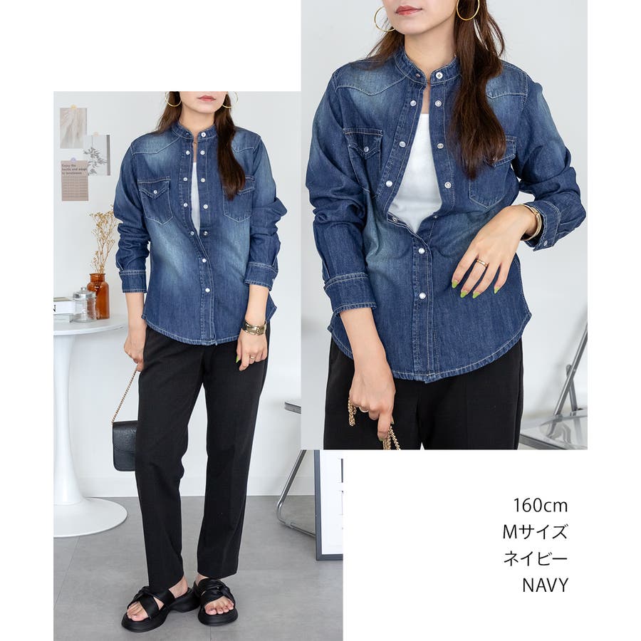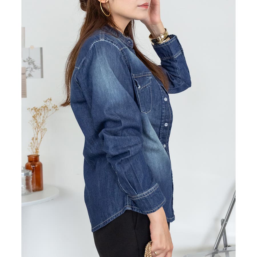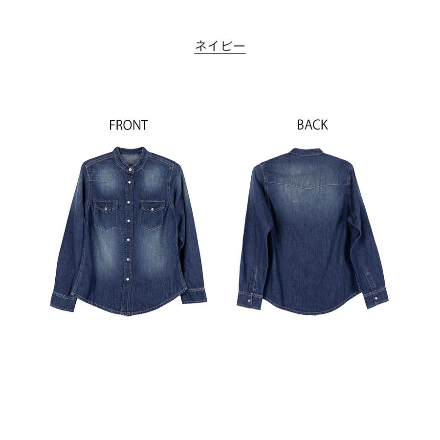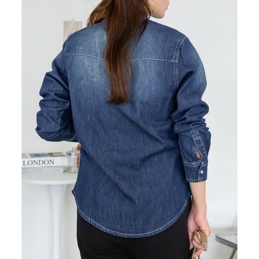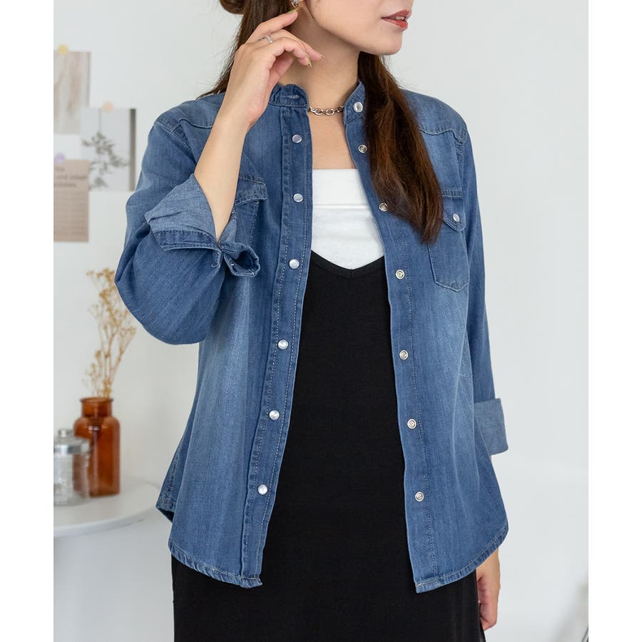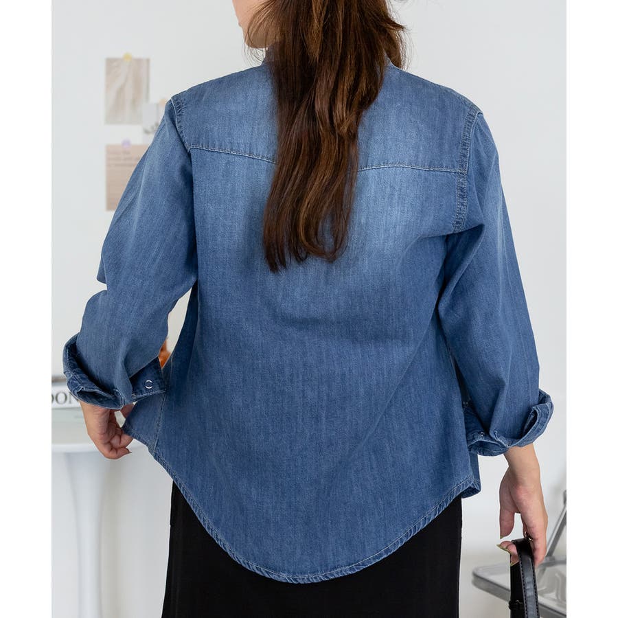 ノーカラーウエスタンデニムシャツ レディース 大きいサイズ レビュー特典あり