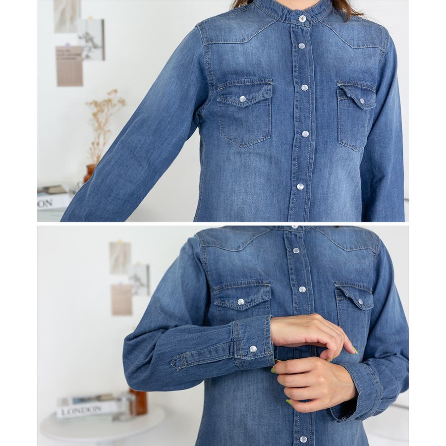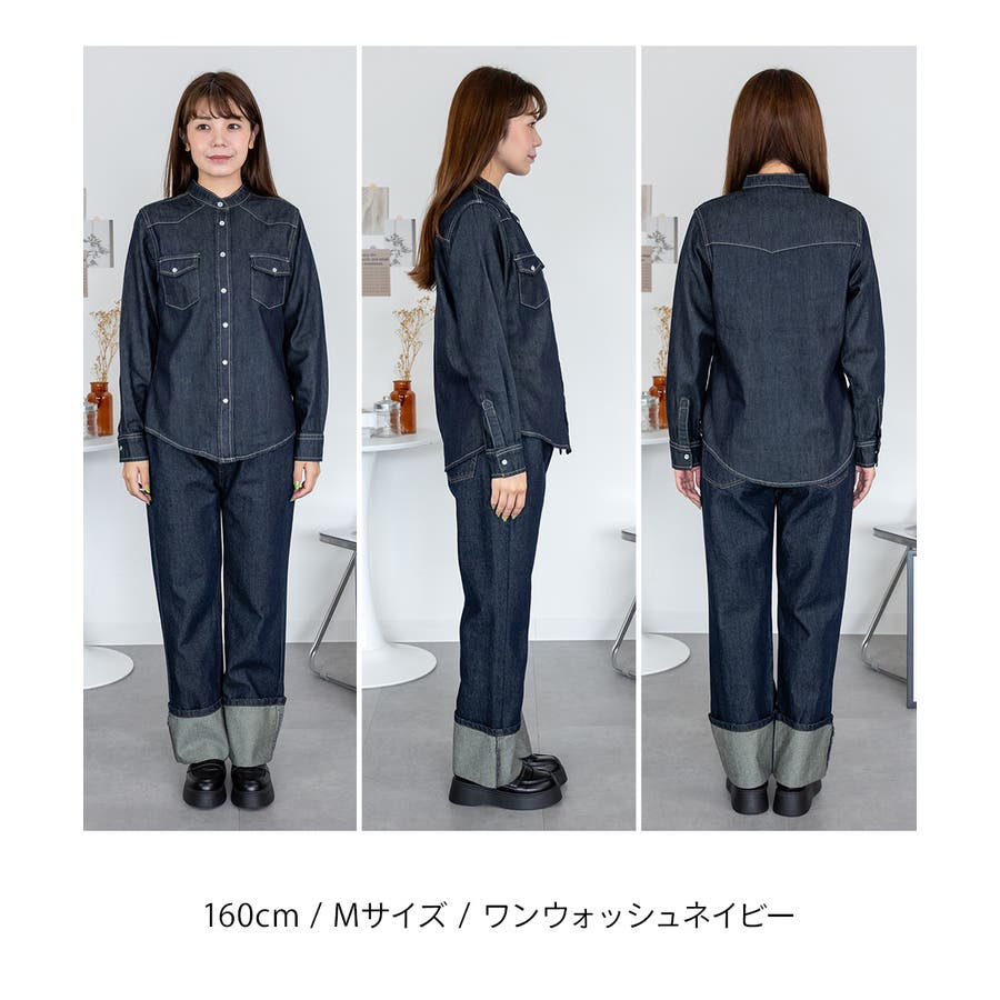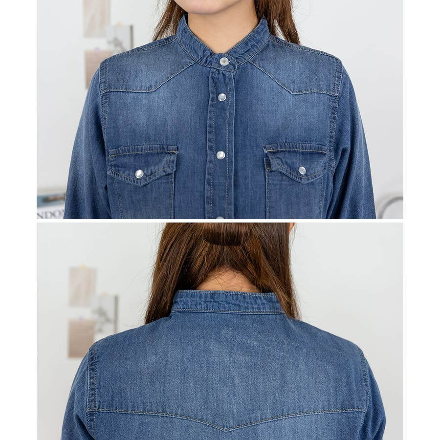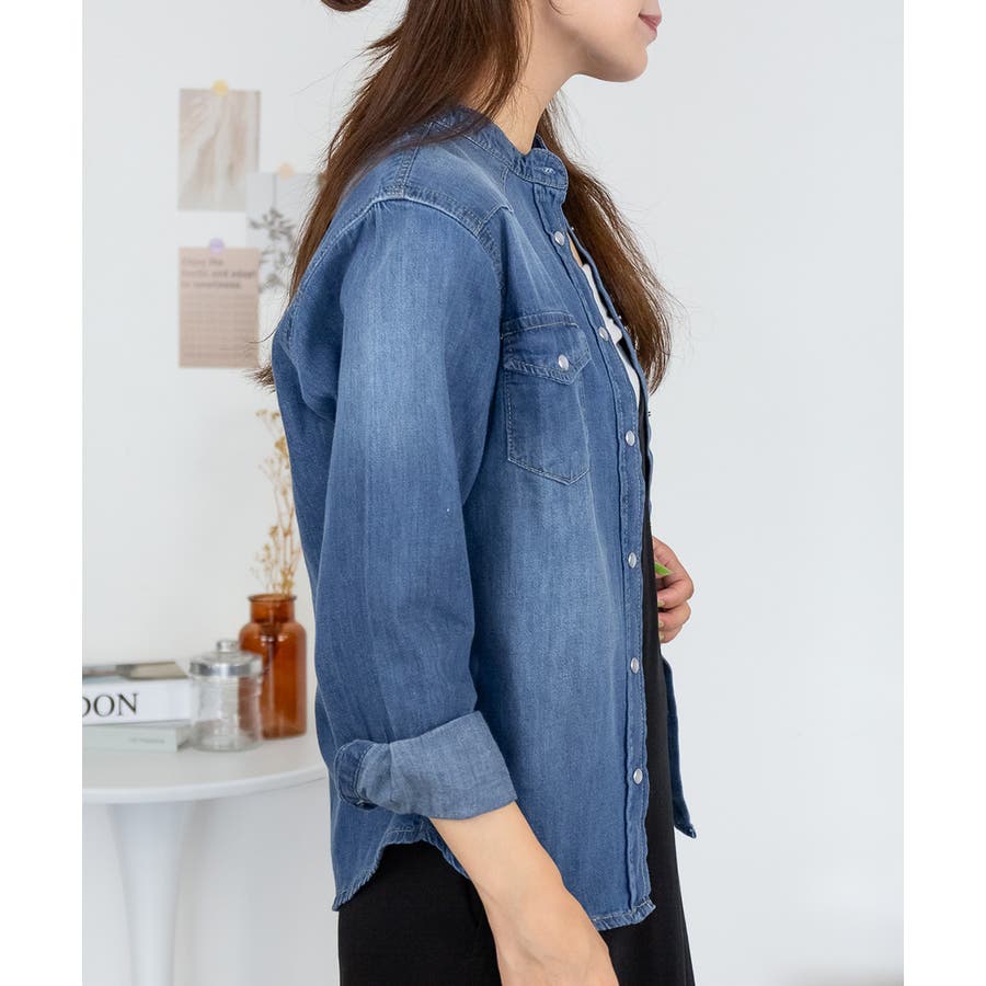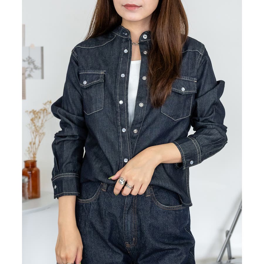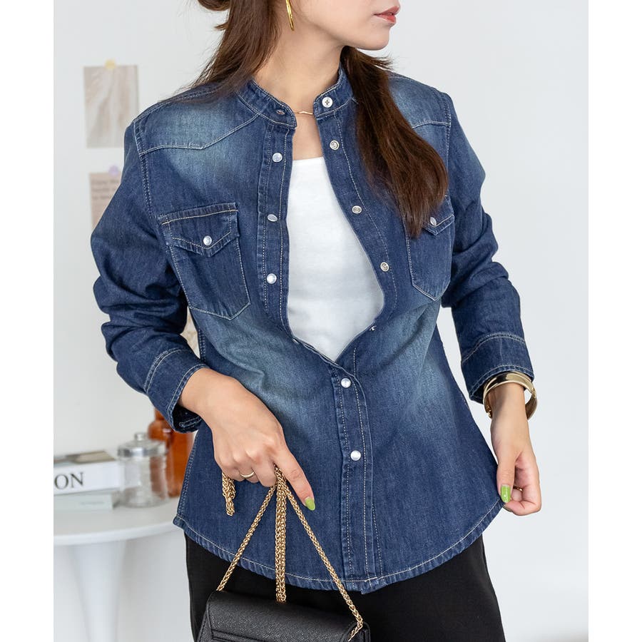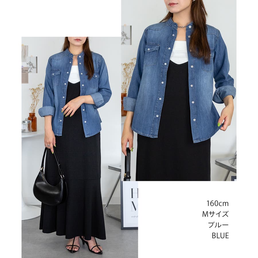 ノーカラーウエスタンデニムシャツ レディース 大きいサイズ レビュー特典あり