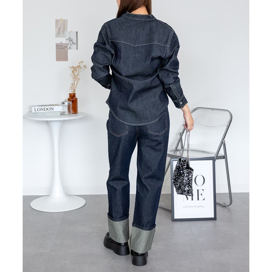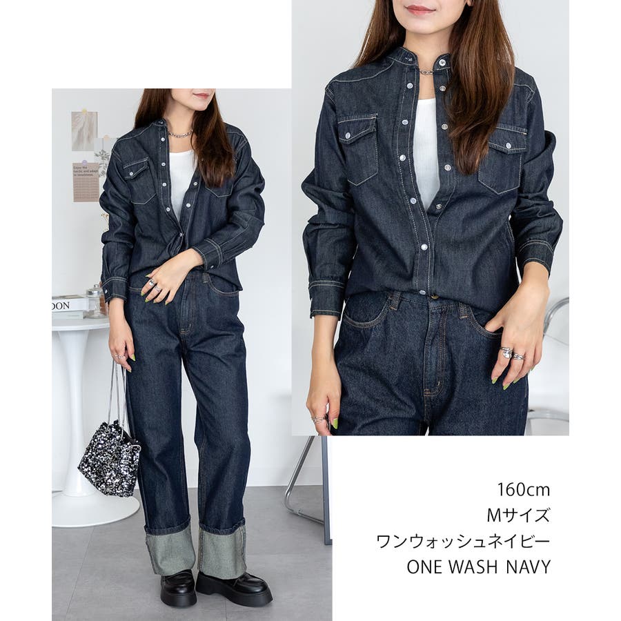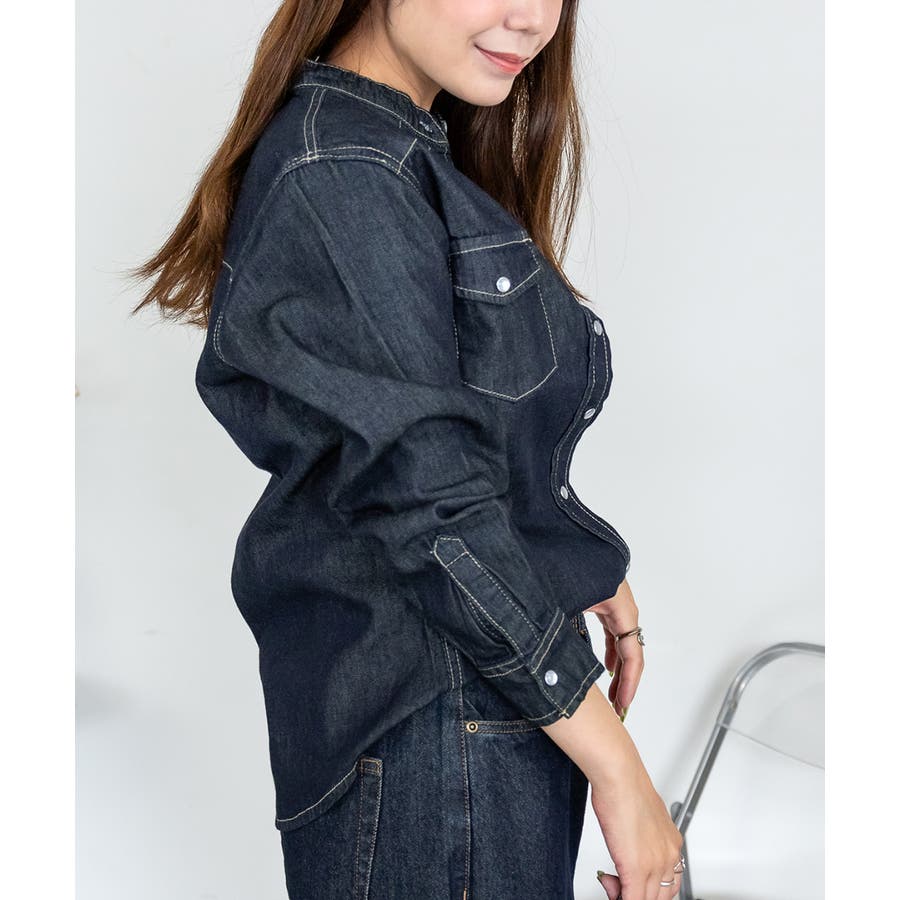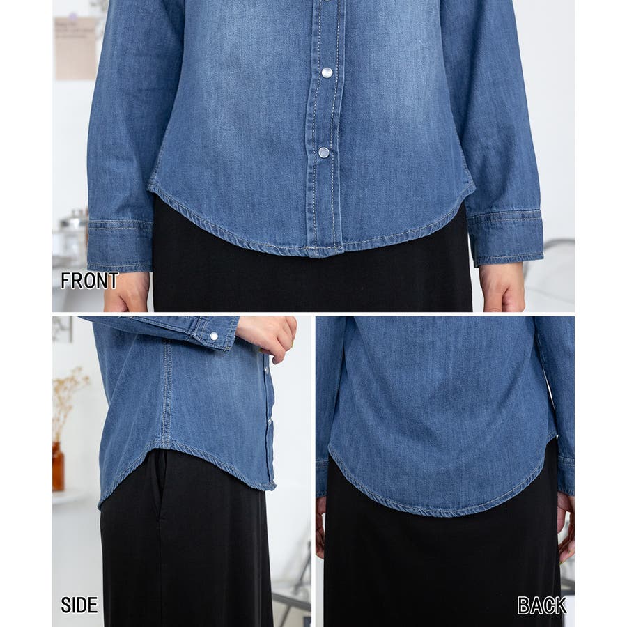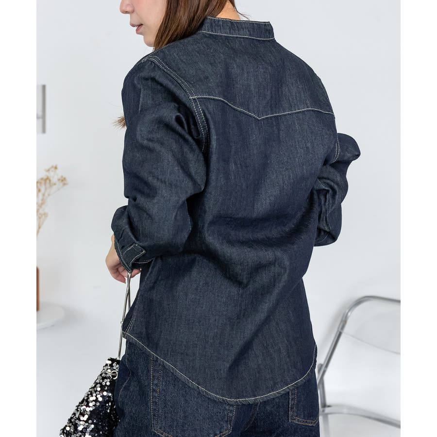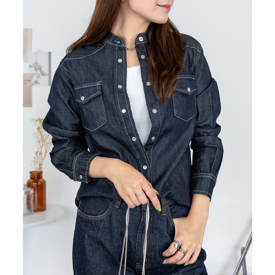 ノーカラーウエスタンデニムシャツ レディース 大きいサイズ レビュー特典あり