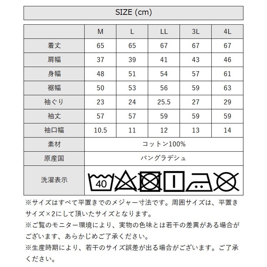 [3Lサイズ]着丈67cm、身幅57cm、肩幅43cm、裾幅59cm、そで丈59cm