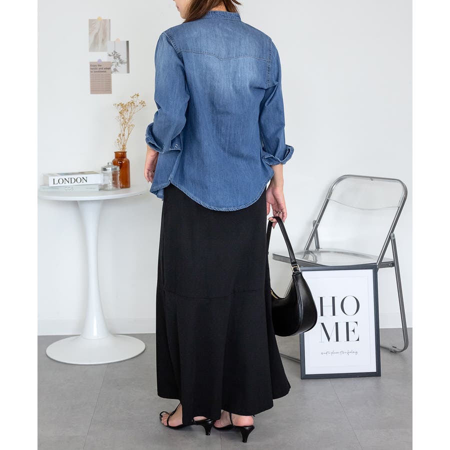 カジュアルすぎず、こなれ感のあるデニムシャツは、季節の変わり目にも重宝する万能アイテムです。