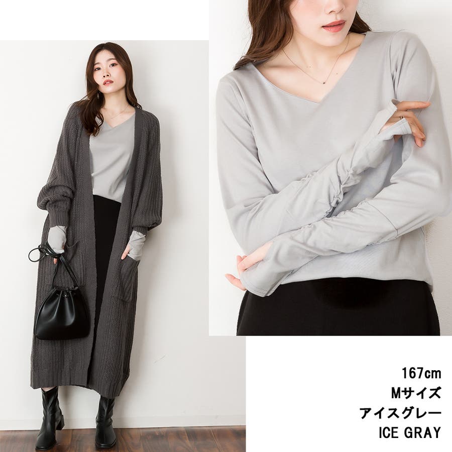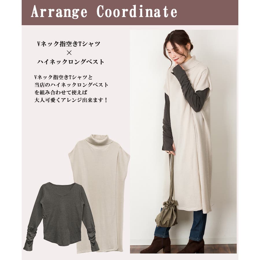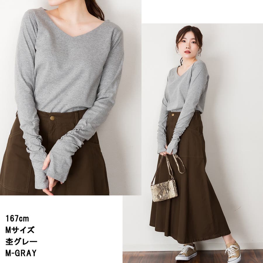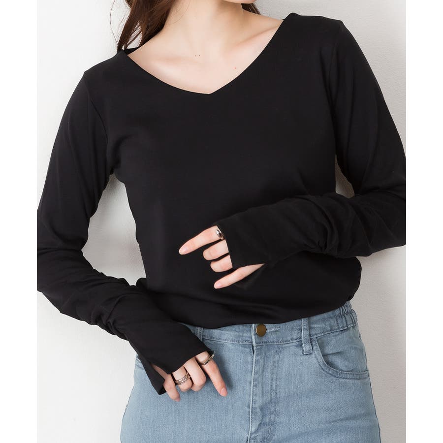 【M・L・LL・3L・4L】Vネック指空きTシャツ