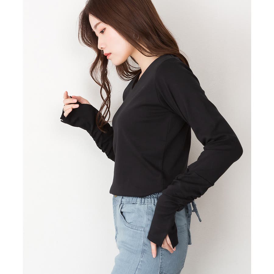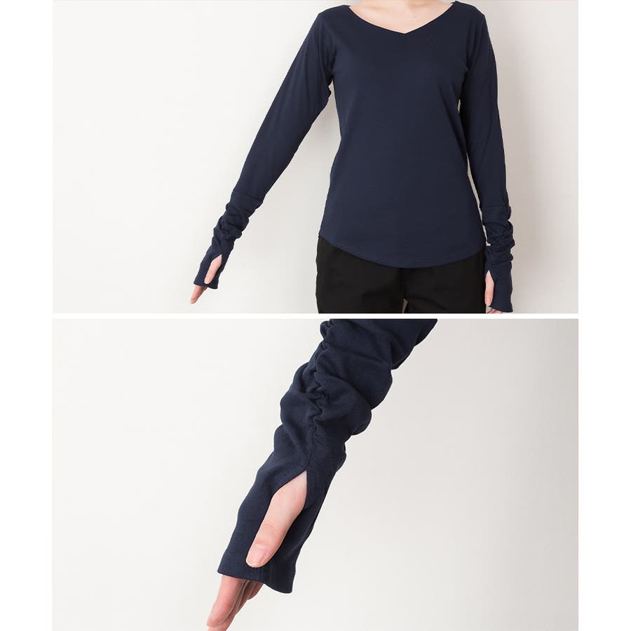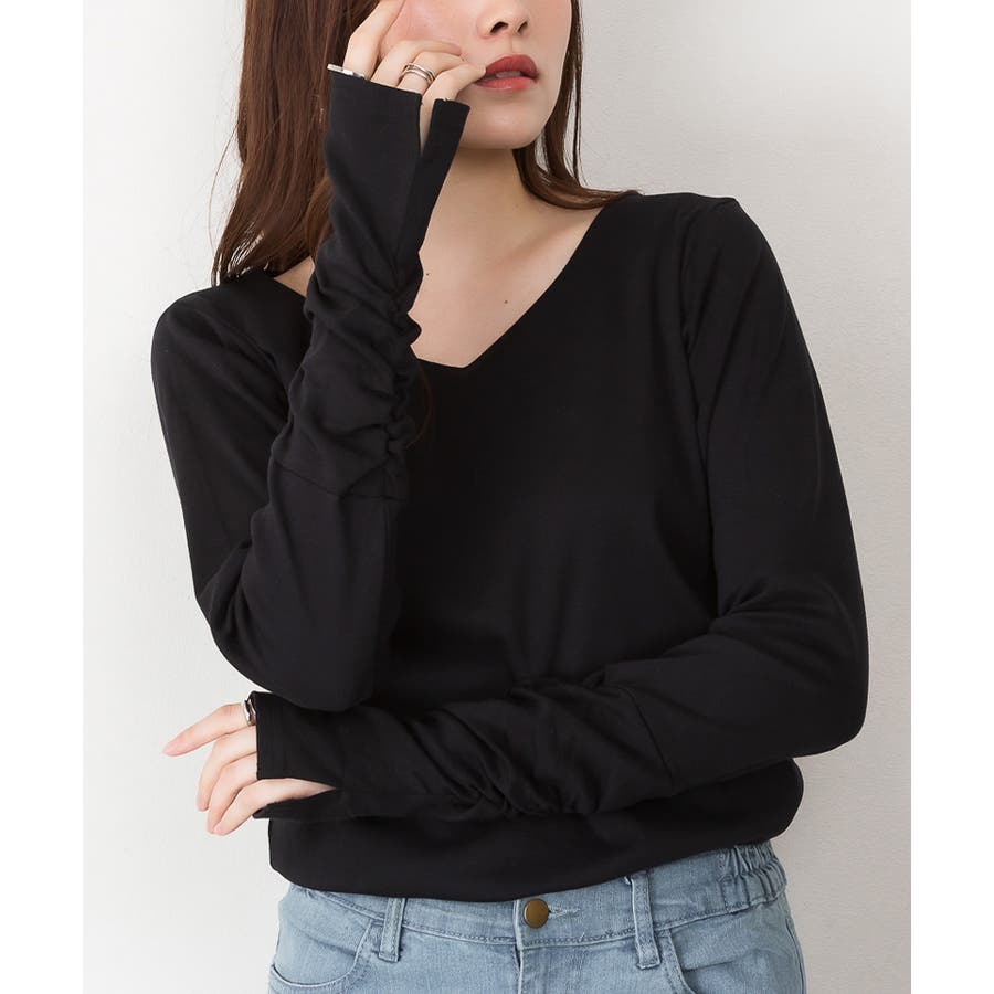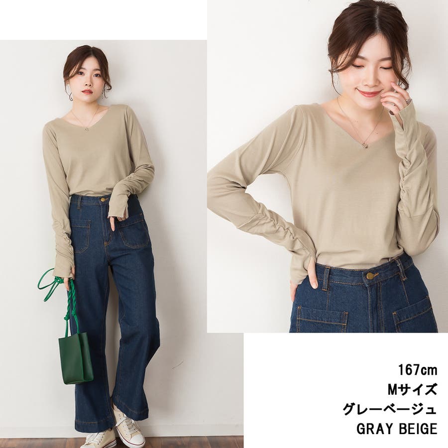 【M・L・LL・3L・4L】Vネック指空きTシャツ