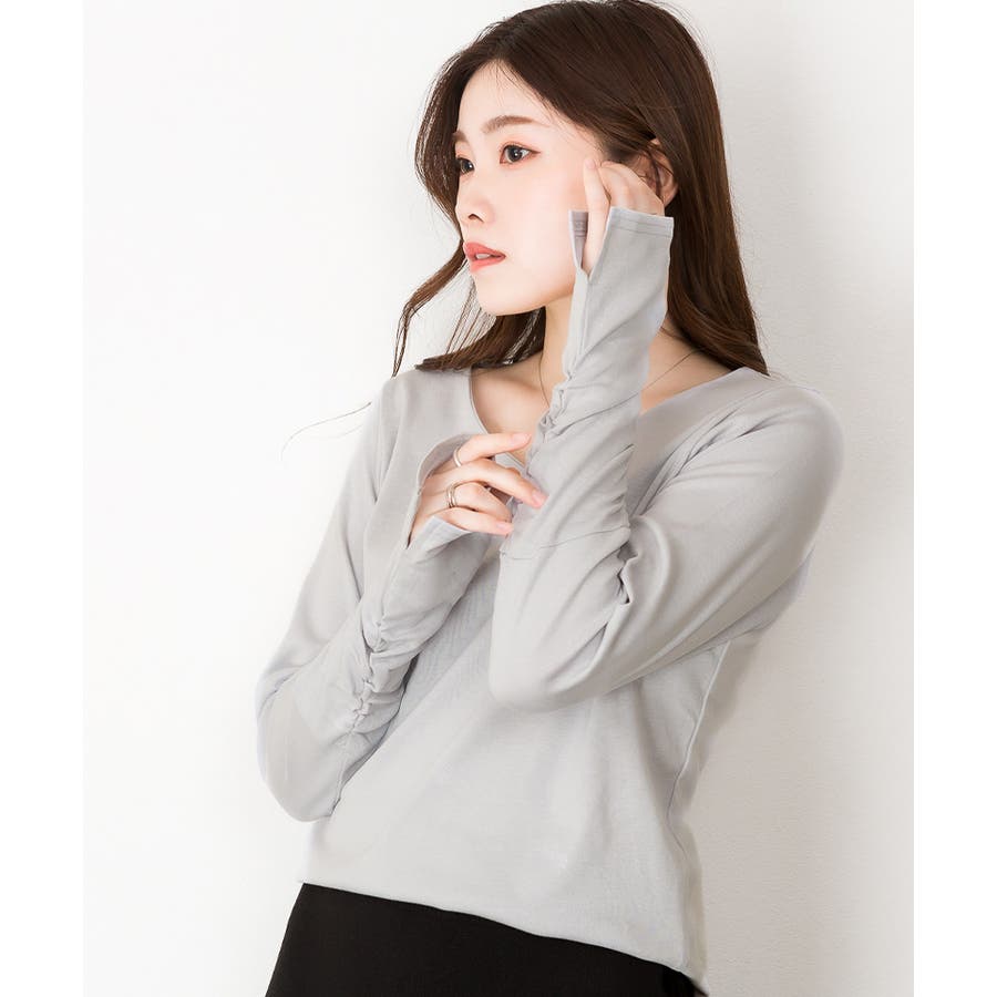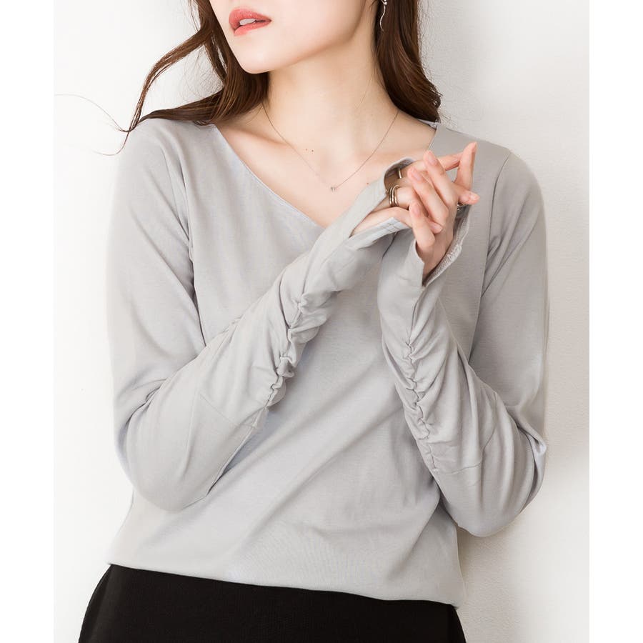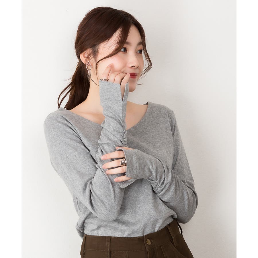 袖はくしゅっとギャザー仕様でスリットが入っています。