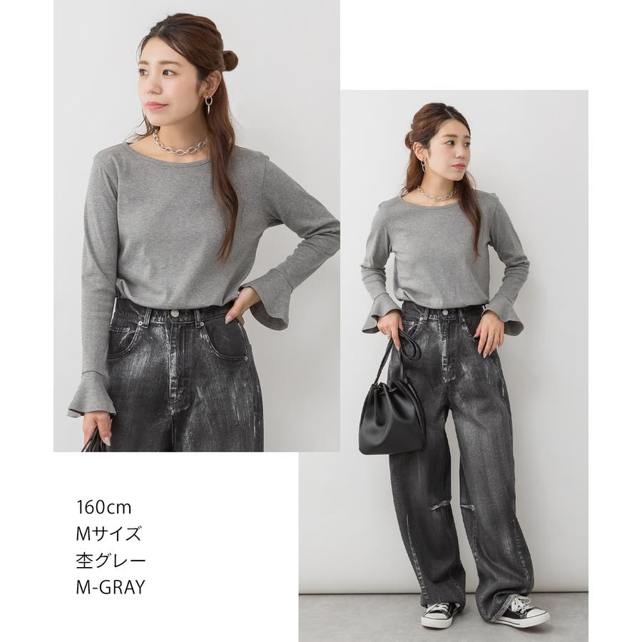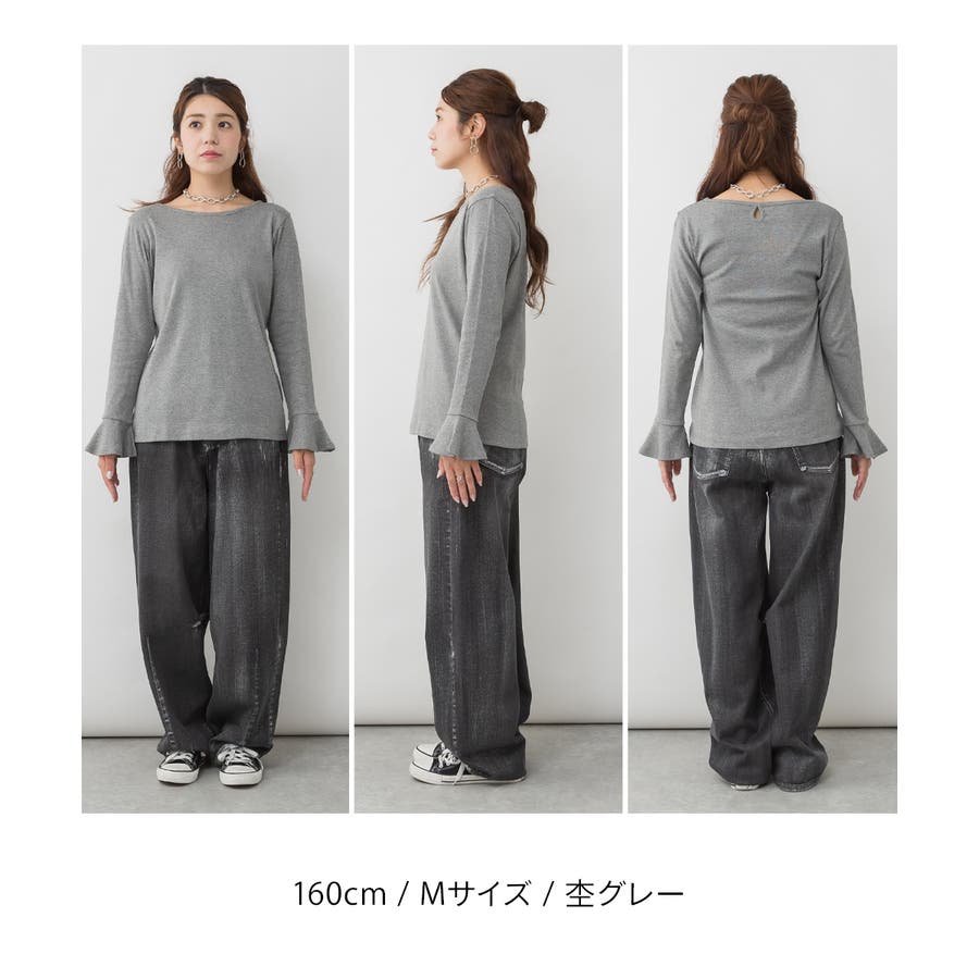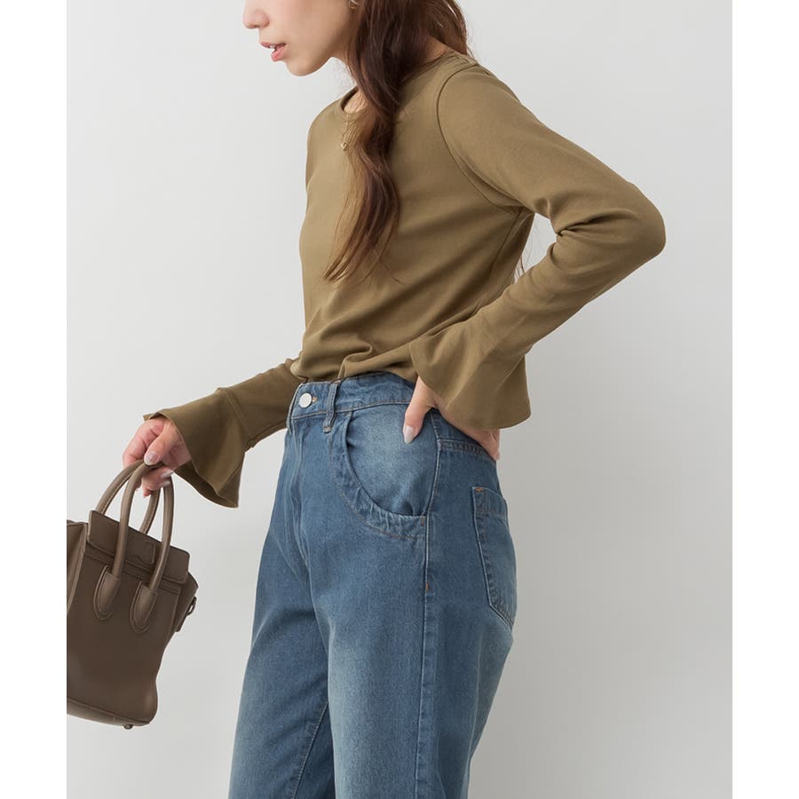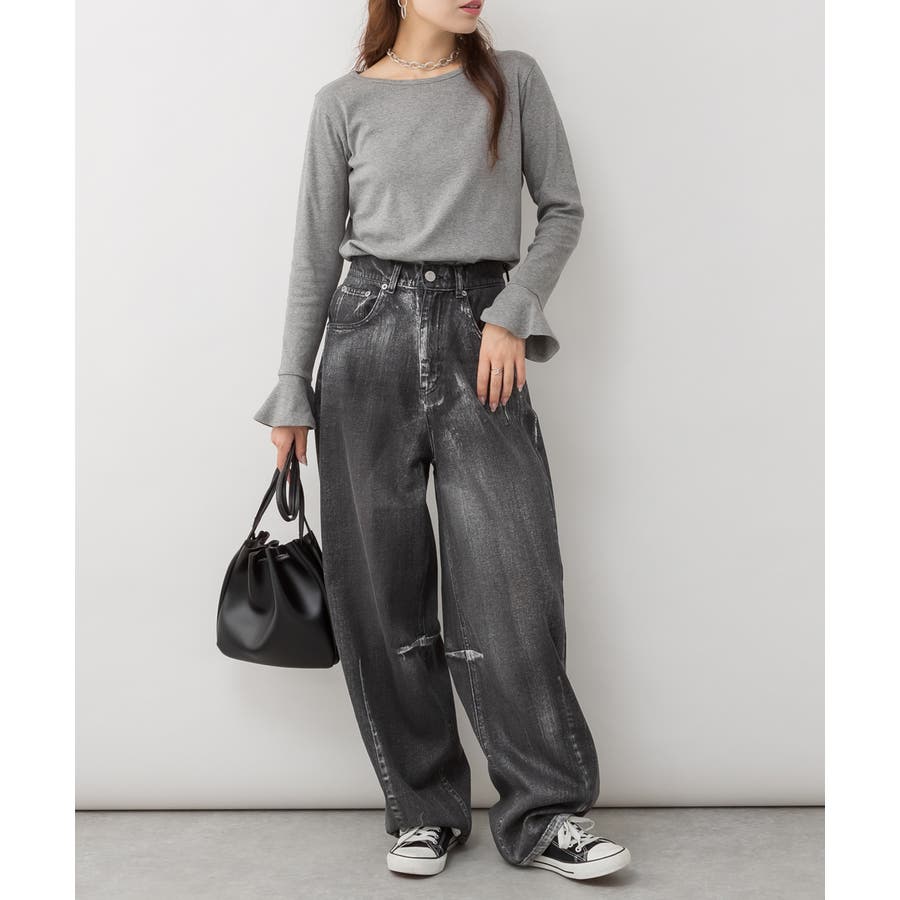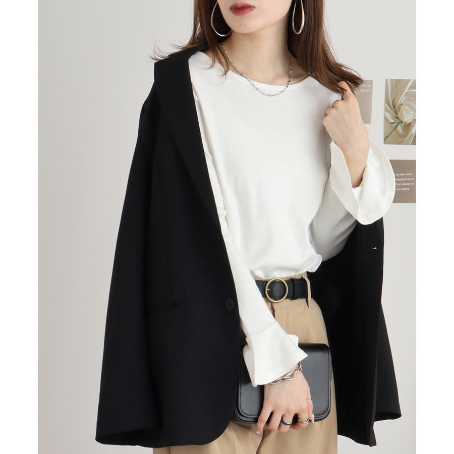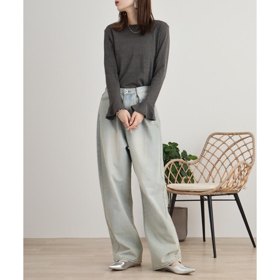 コーデに合わせてインしてもアウトでも着こなし可能で、シンプルにデニムパンツ(ジーンズ)やイージーパンツ、ワイドパンツに合わせるカジュアルスタイルも◎