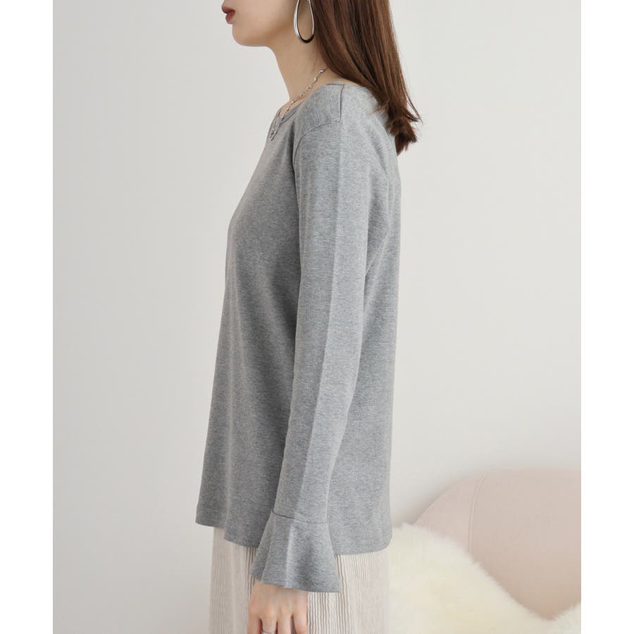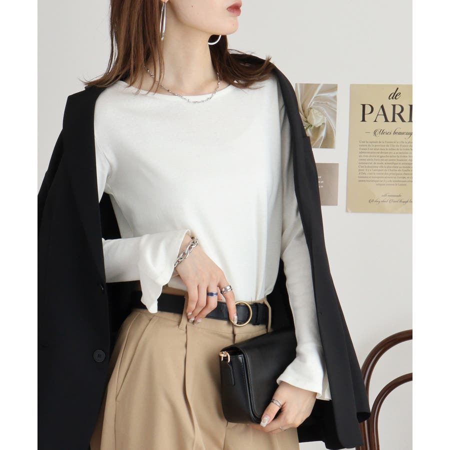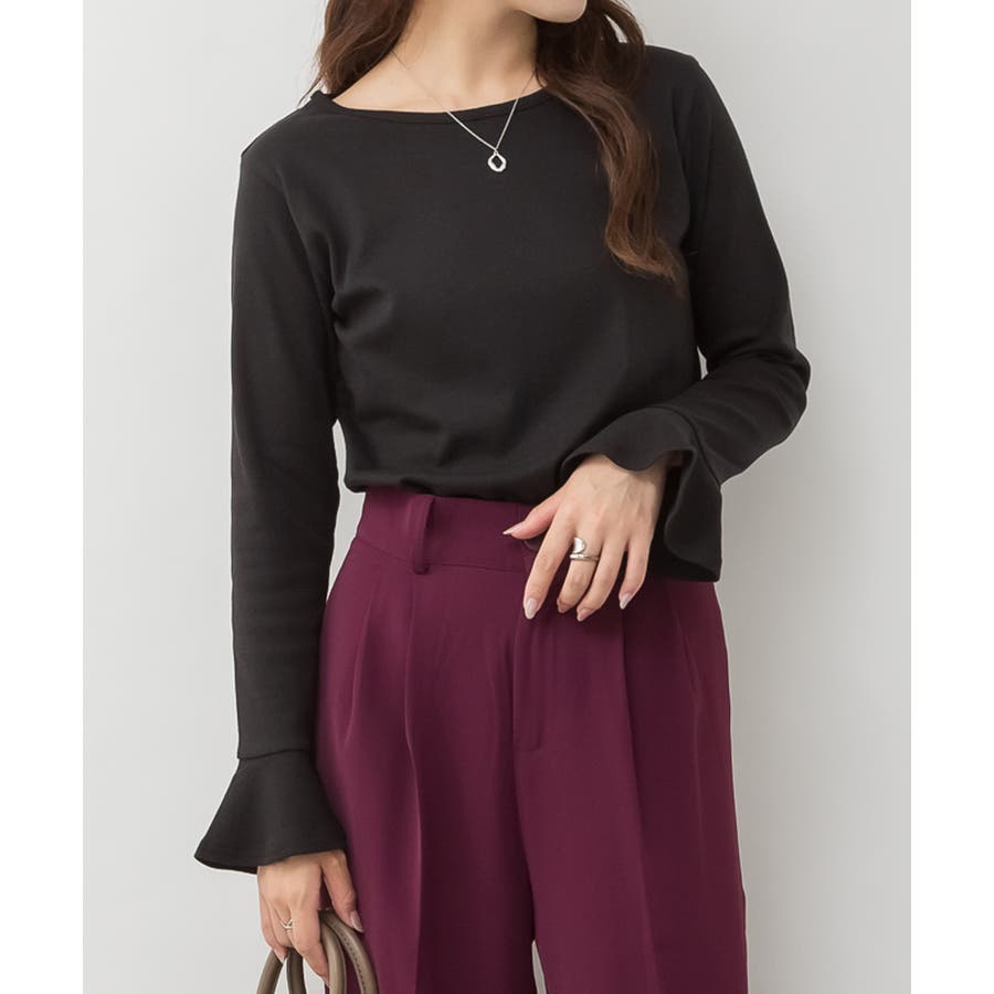 袖口のフレアがエレガンスを引き立て、洗練された装いを実現。