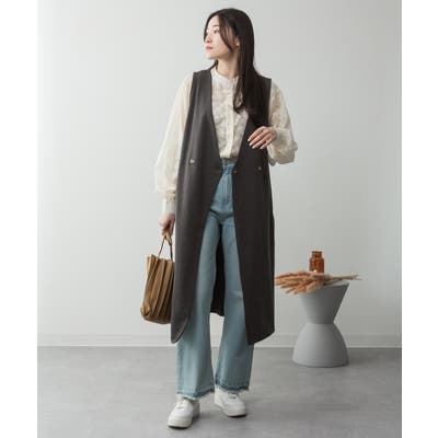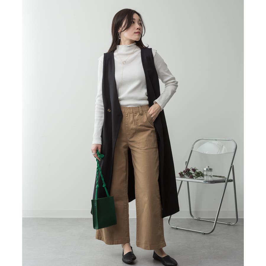 モックネックニットやラッフルブラウス、リブニット、と合わせたフェミニンスタイルにも◎