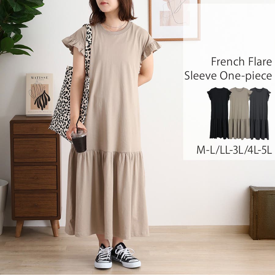 袖フレアノースリーブワンピース レディース 大きいサイズ