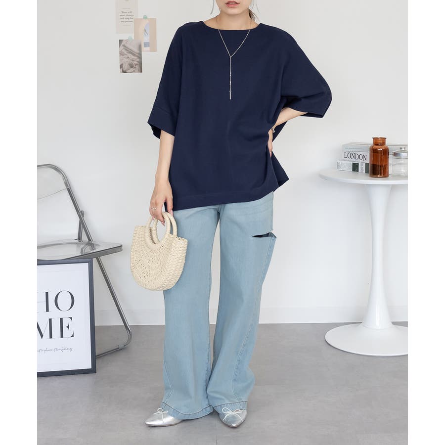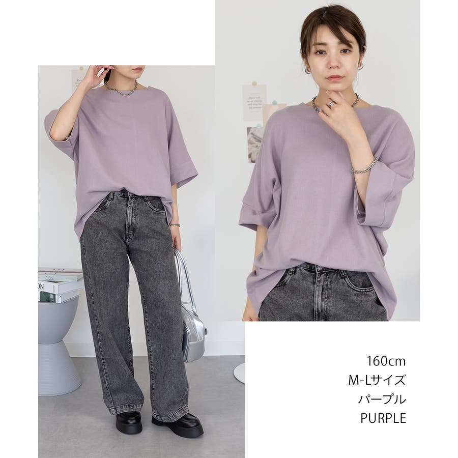 ゆるっとラフなシルエットのコットンワッフル7分袖ドルマンTシャツ。