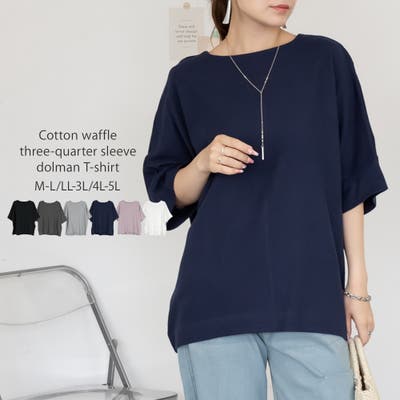 コットンワッフル7分袖ドルマンTシャツ レディース 大きいサイズ