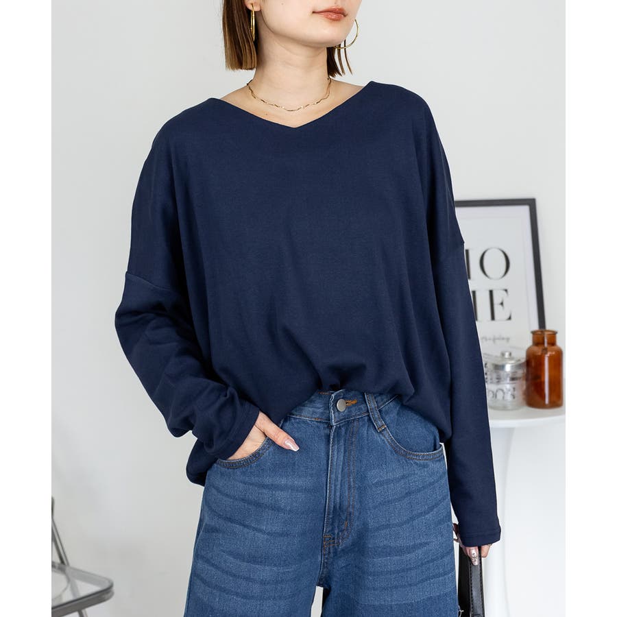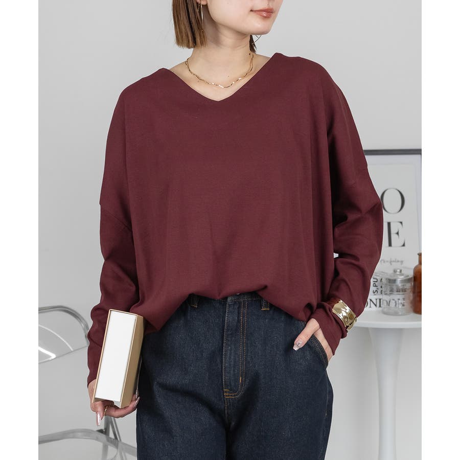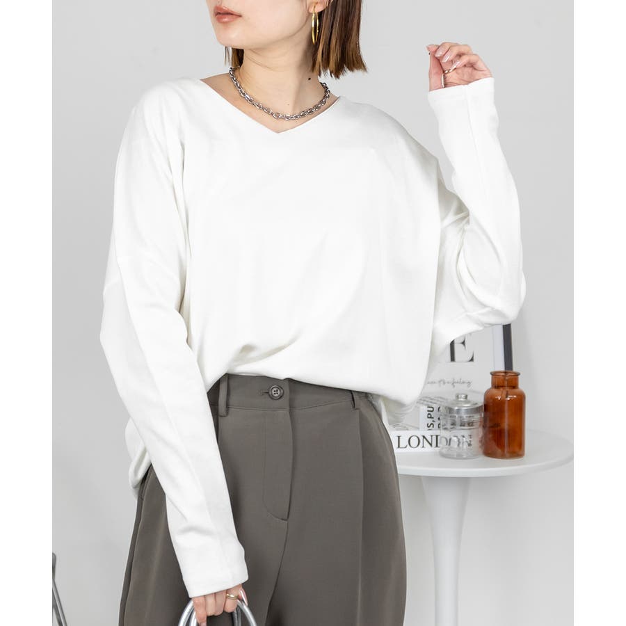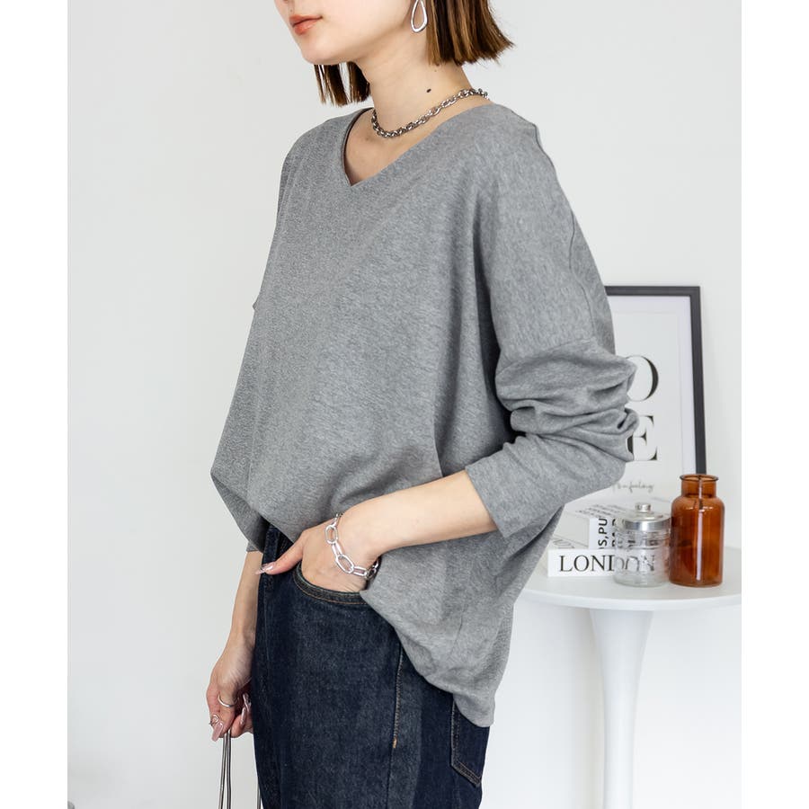 抜け感のあるVネックとゆるっとしたシルエットが魅力の、大人のためのリラックスカットソー。