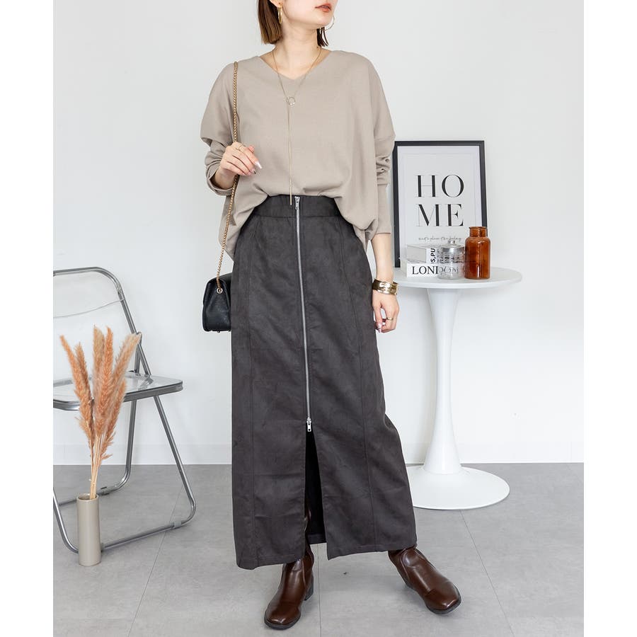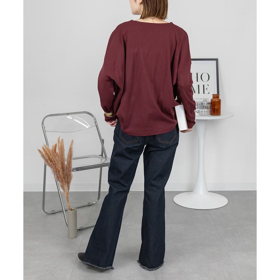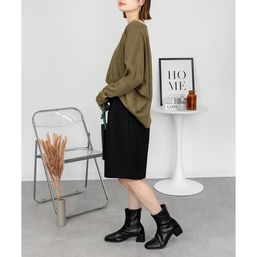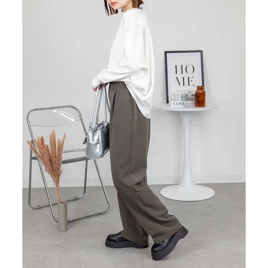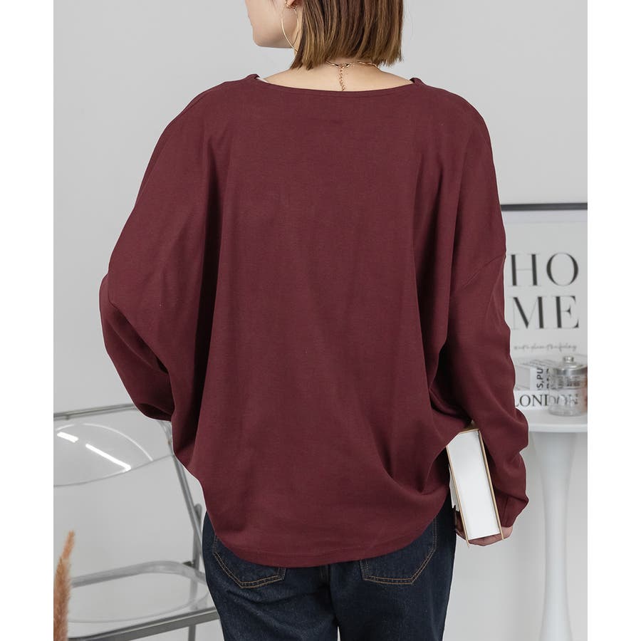 体のラインを拾いにくいドルマンスリーブが自然に体形をカバーし、シンプルながらもこなれた印象に。