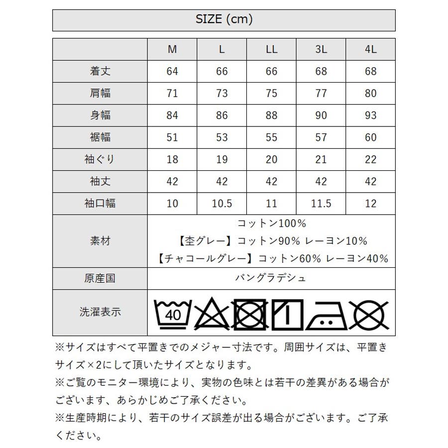 [3Lサイズ]着丈68cm、身幅90cm、肩幅90cm、裾幅57cm、そで丈42cm