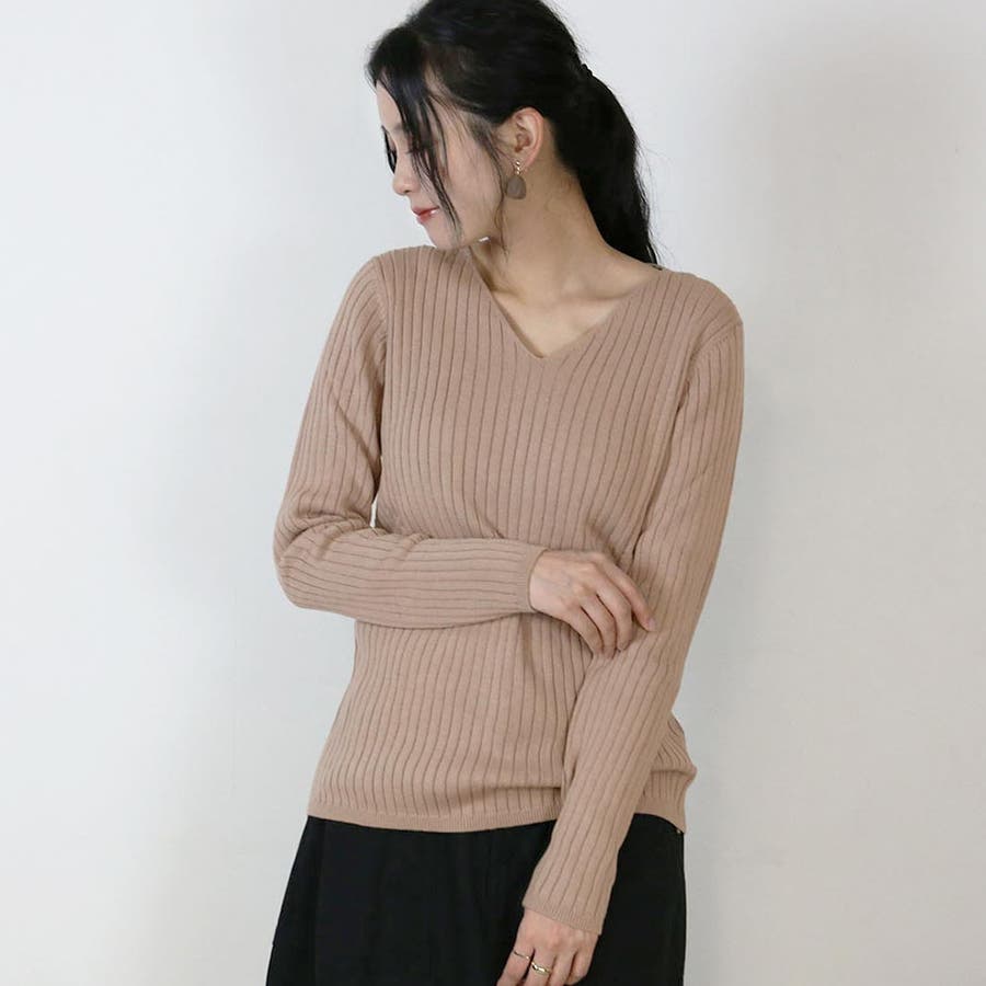 シンプルで合わせやすいリブニット、シンプルでシルエットの良さが人気の秘密