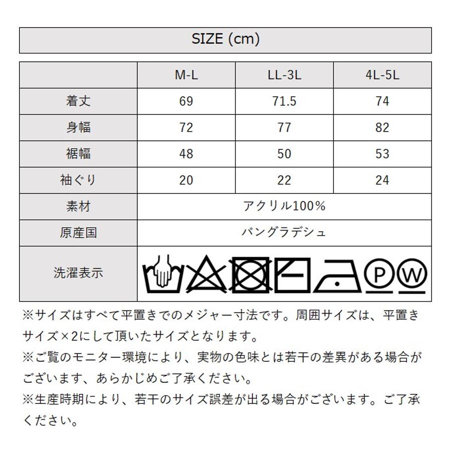 [LL-3Lサイズ]着丈:71.5cm、身幅:77cm、肩幅:68cm、裾幅:50cm