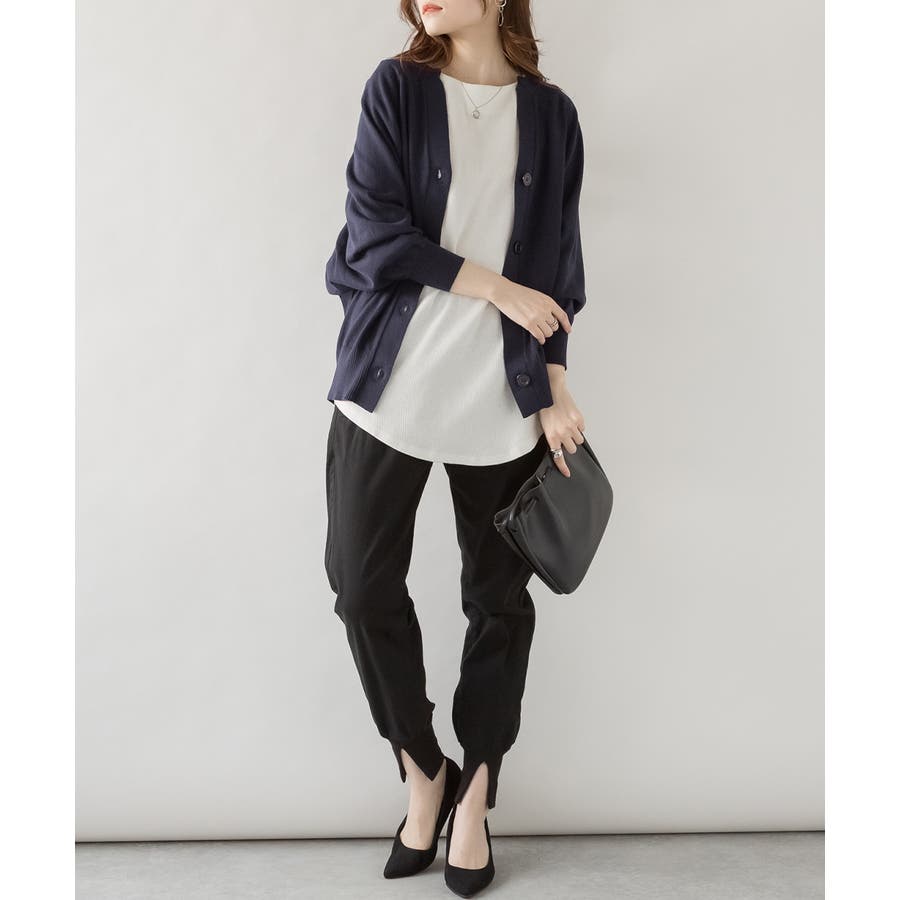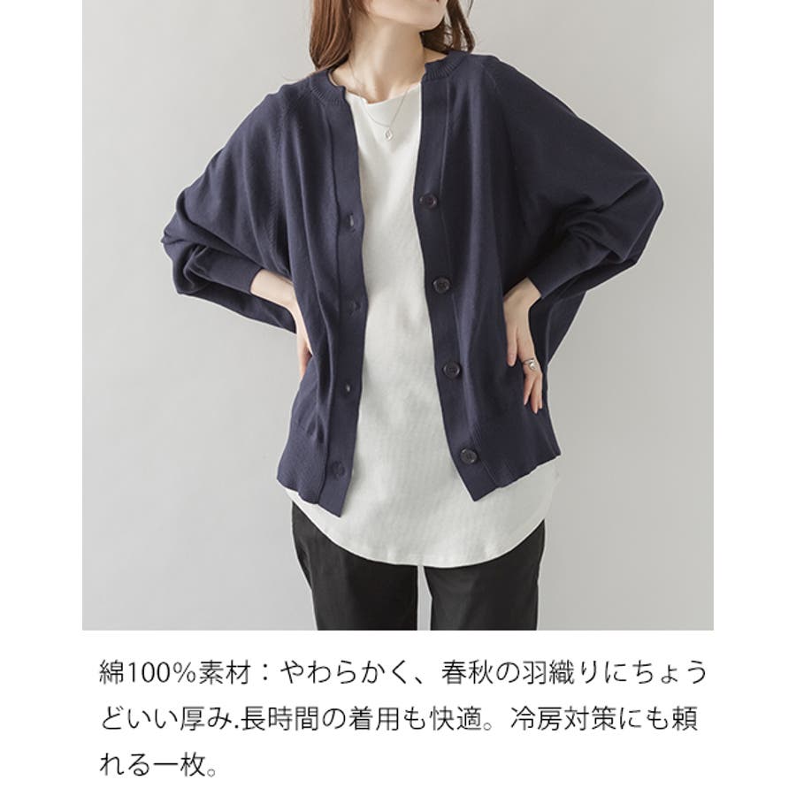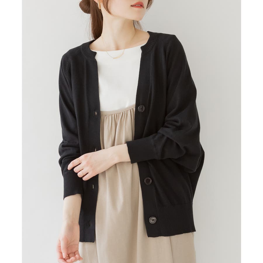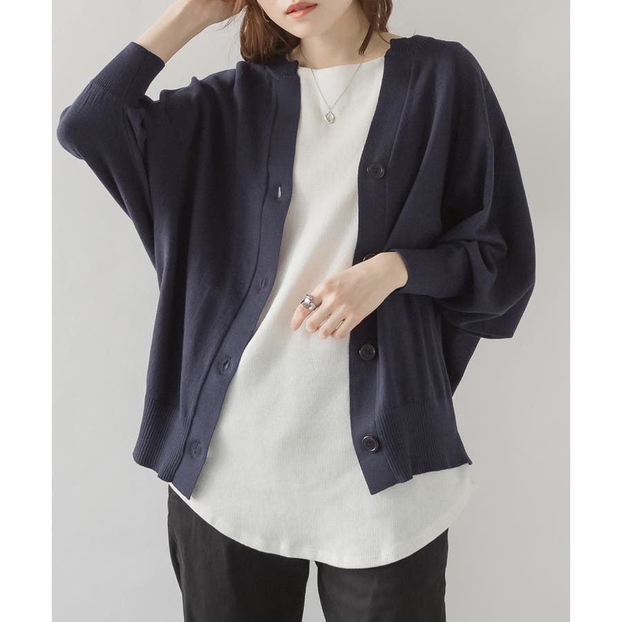ゆったりとしたドルマンスリーブが抜け感を演出するカーディガン。