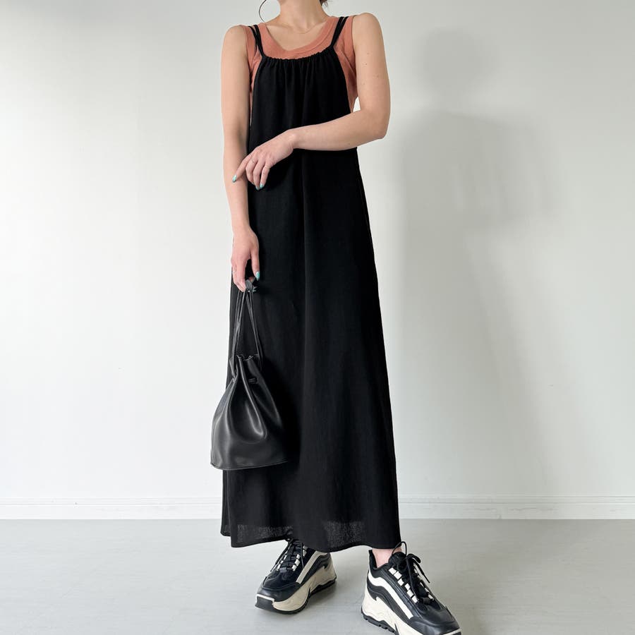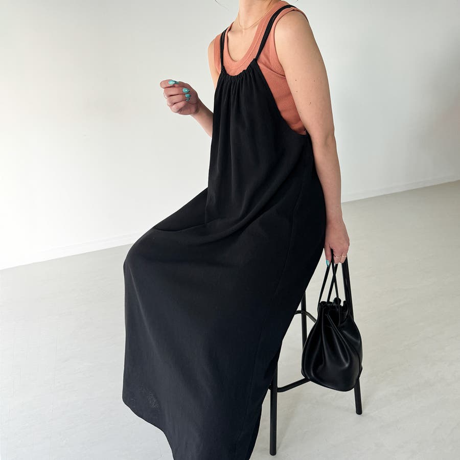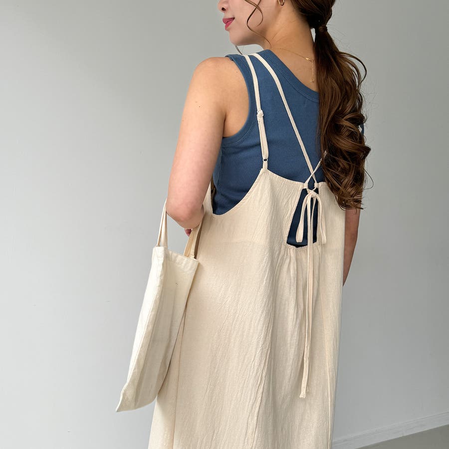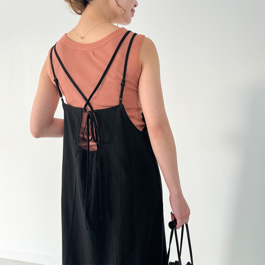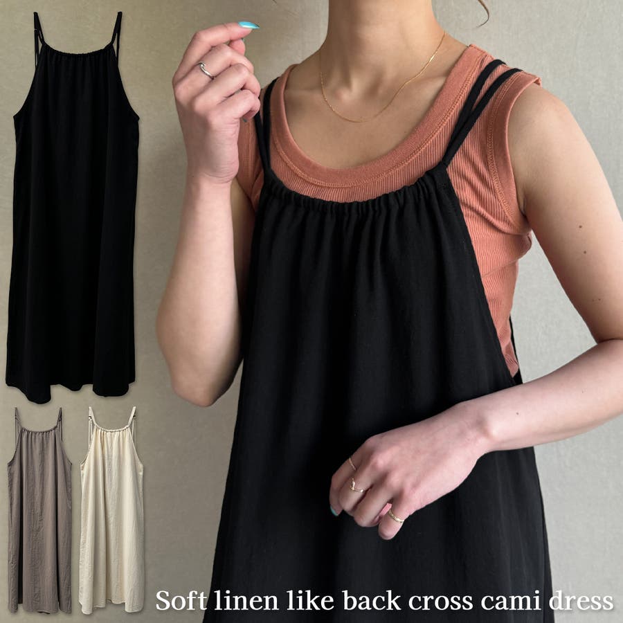 【ダークグレー】ソフトリネンライクバッククロスキャミワンピース