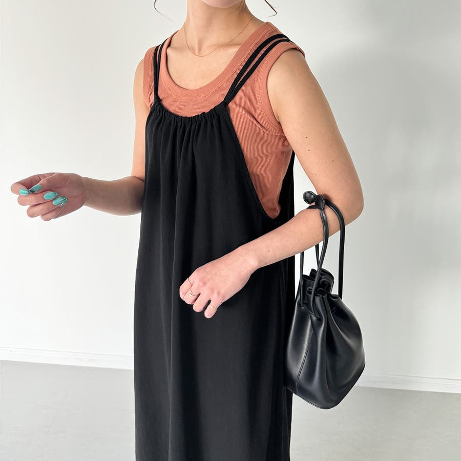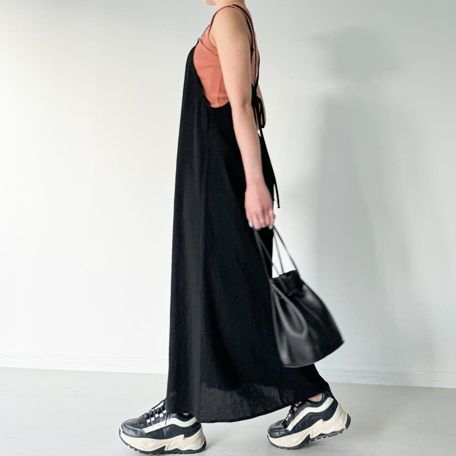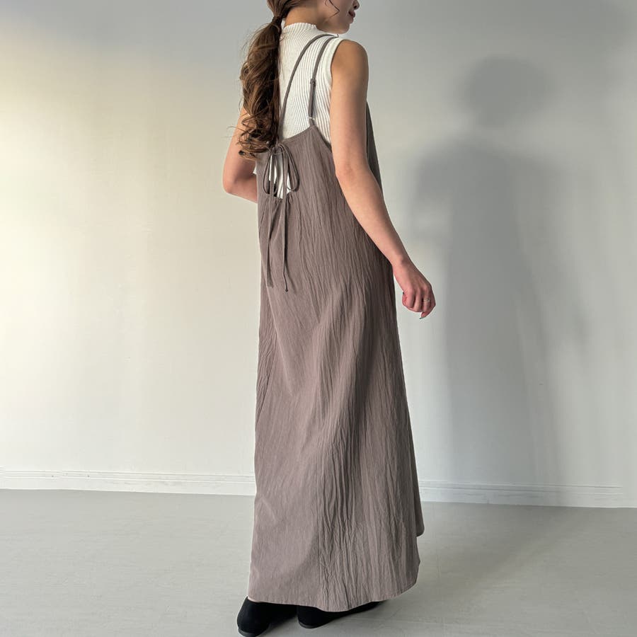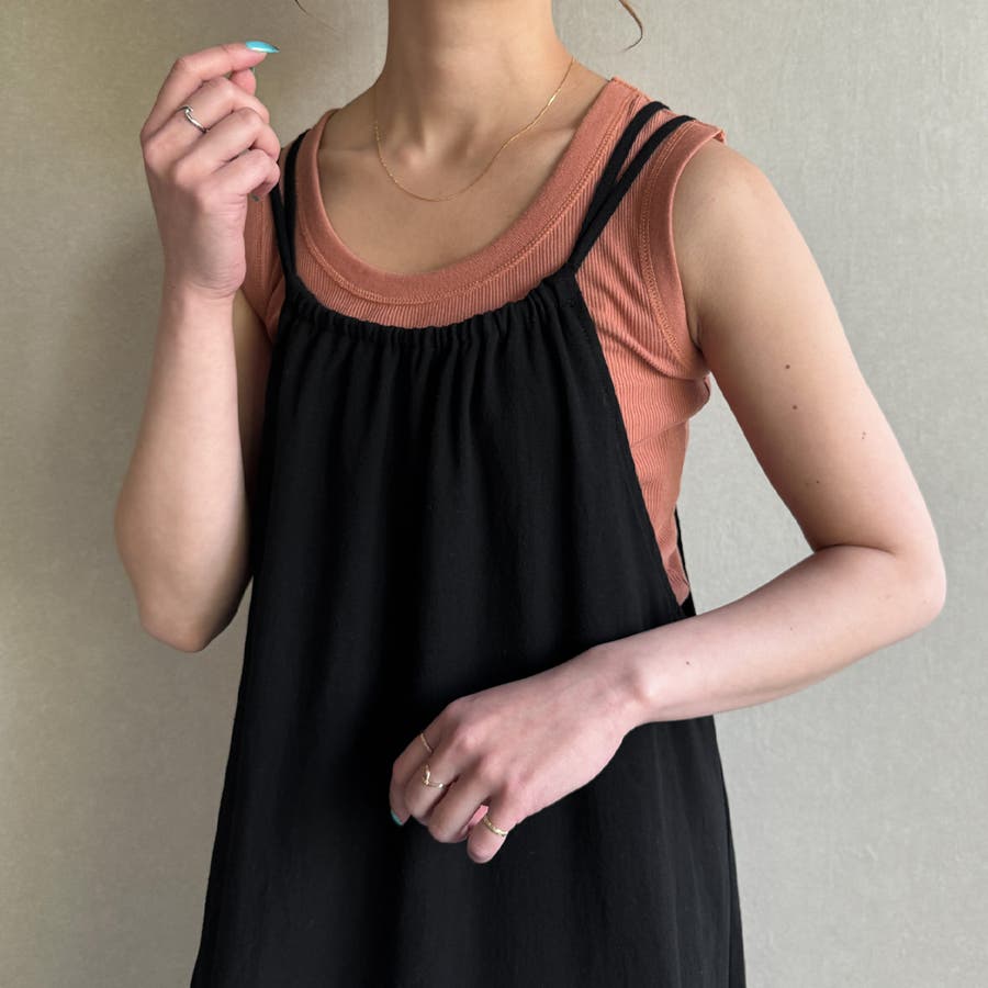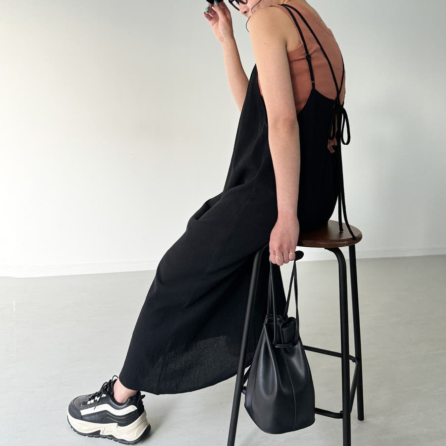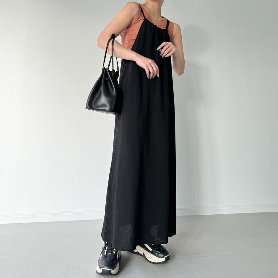 【ダークグレー】ソフトリネンライクバッククロスキャミワンピース