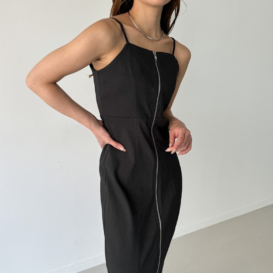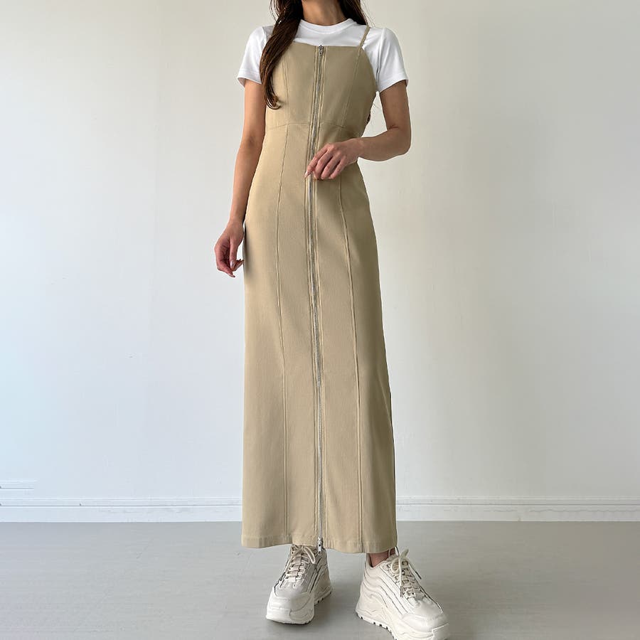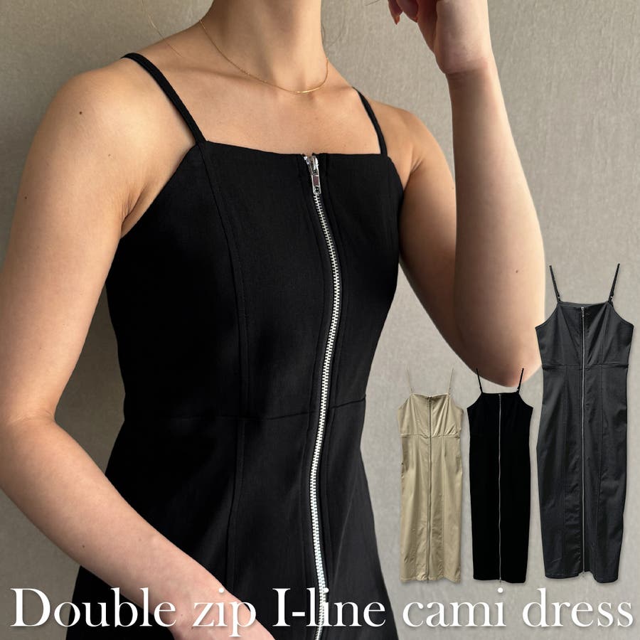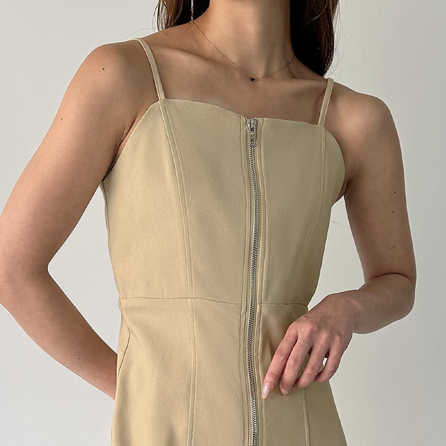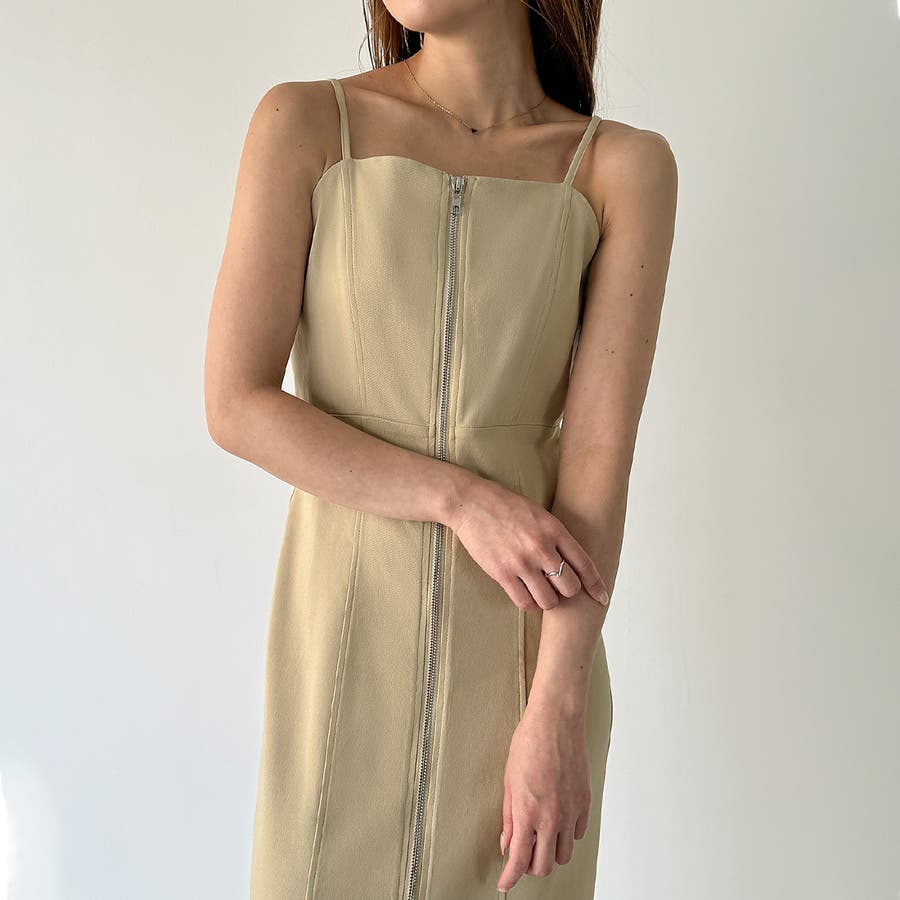 【ライトベージュ】ダブルジップIラインキャミワンピース