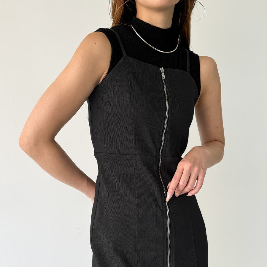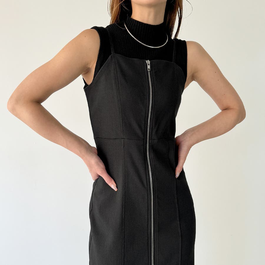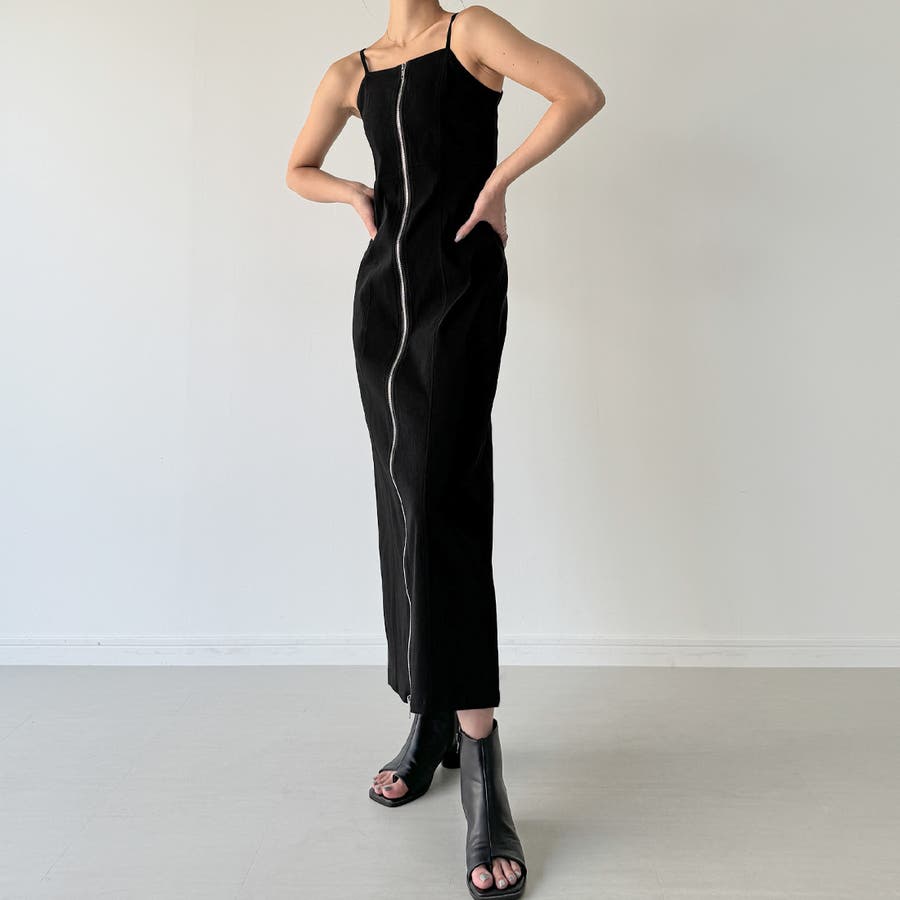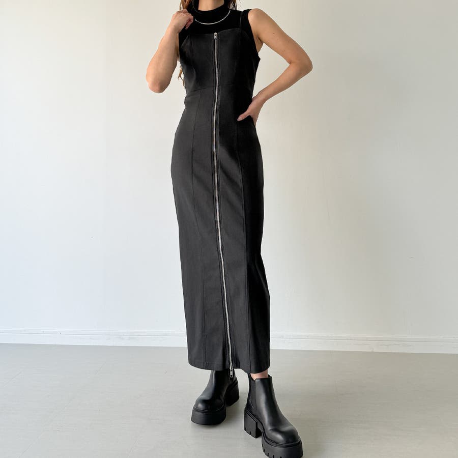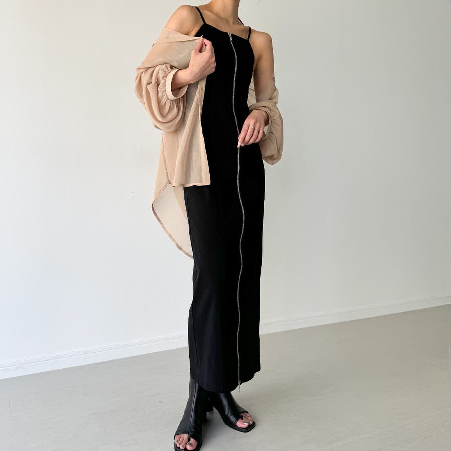 【ライトベージュ】ダブルジップIラインキャミワンピース
