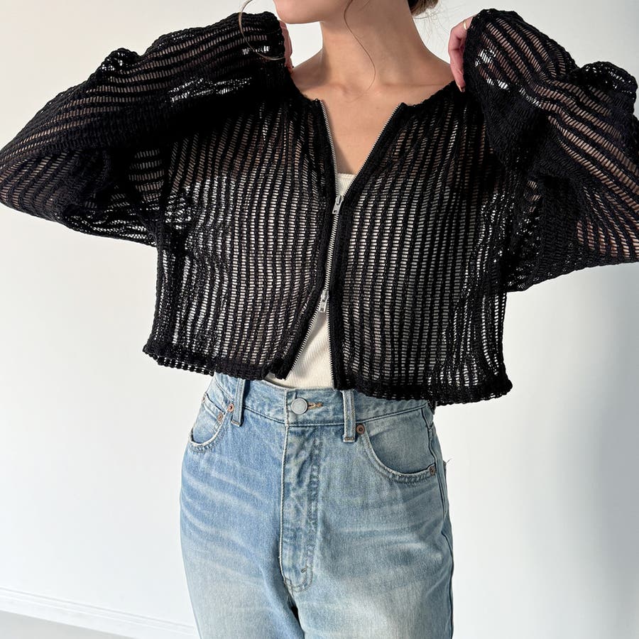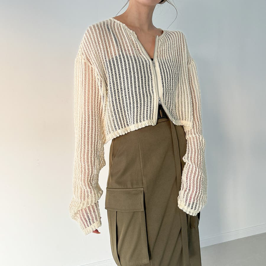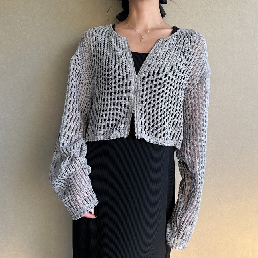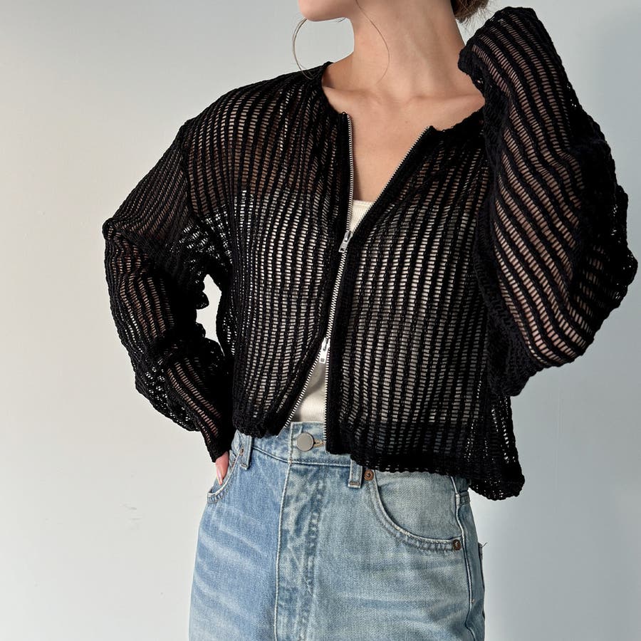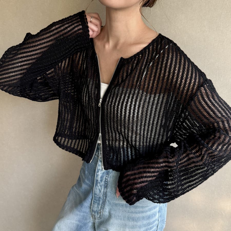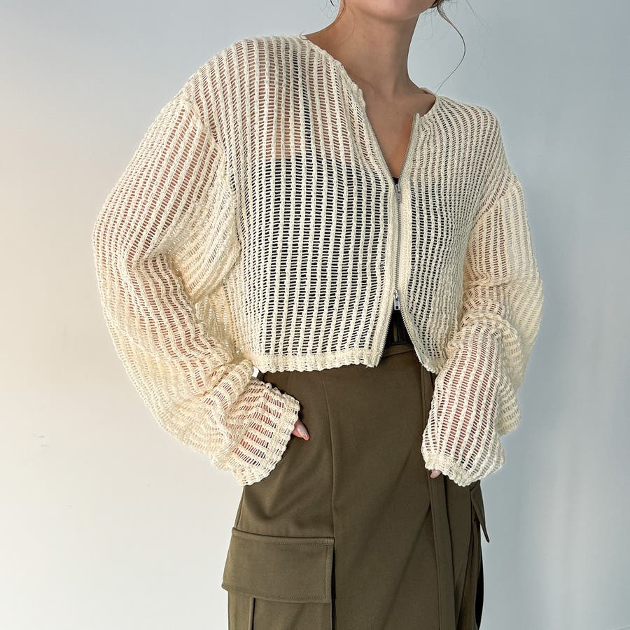 Wジップメッシュカットソーカーディガン