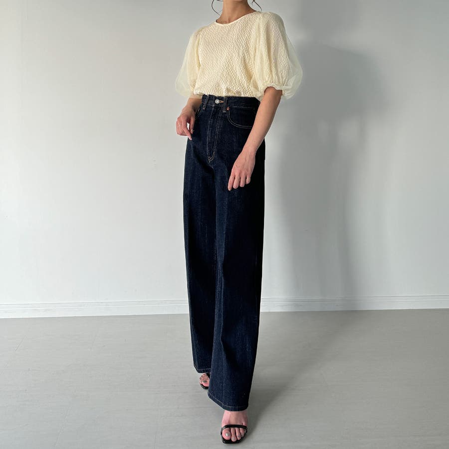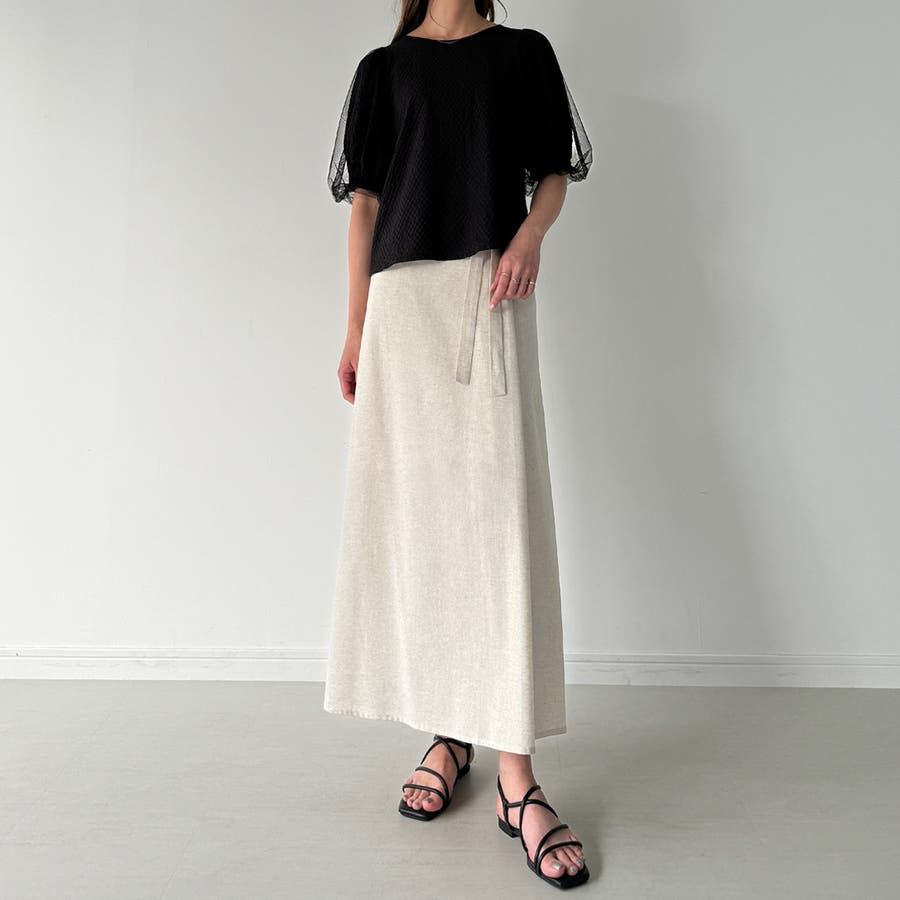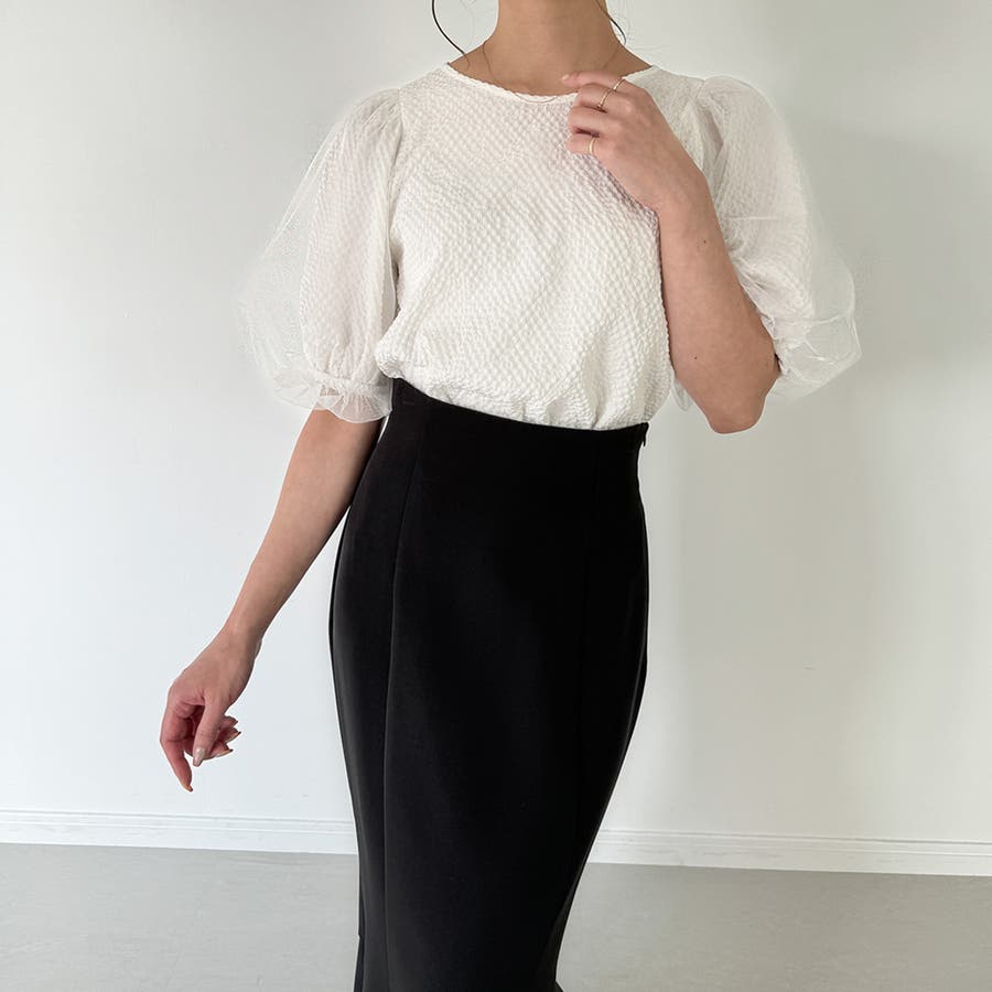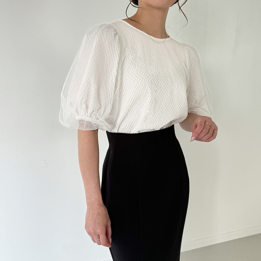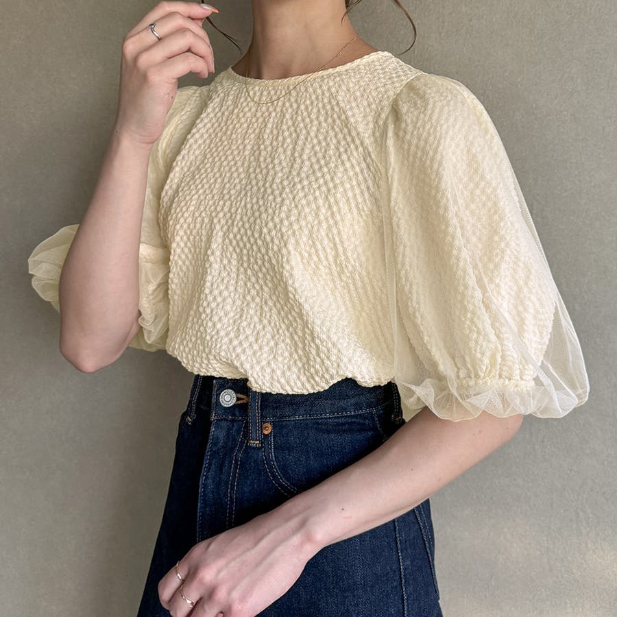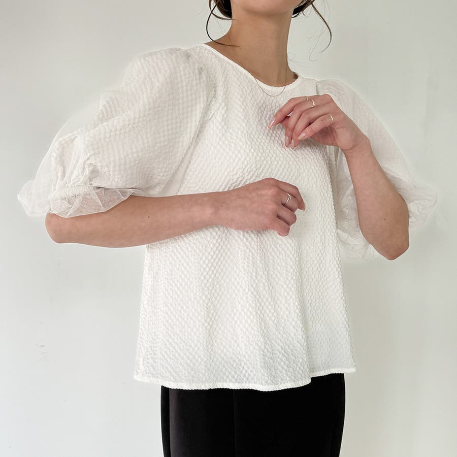 【ブラック】チュールパフスリーブシアーブラウス