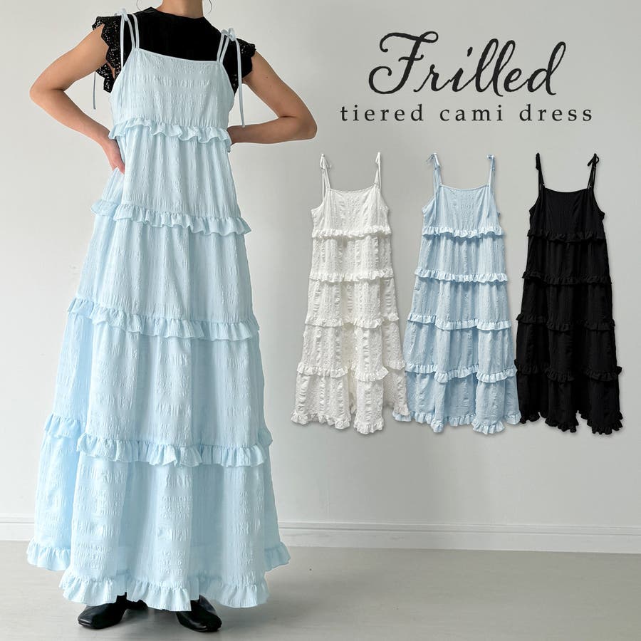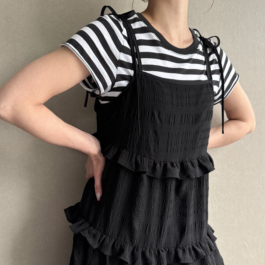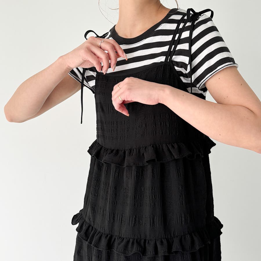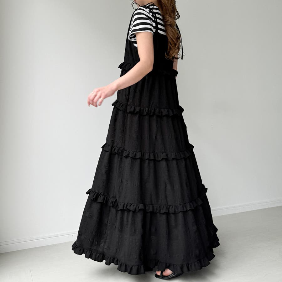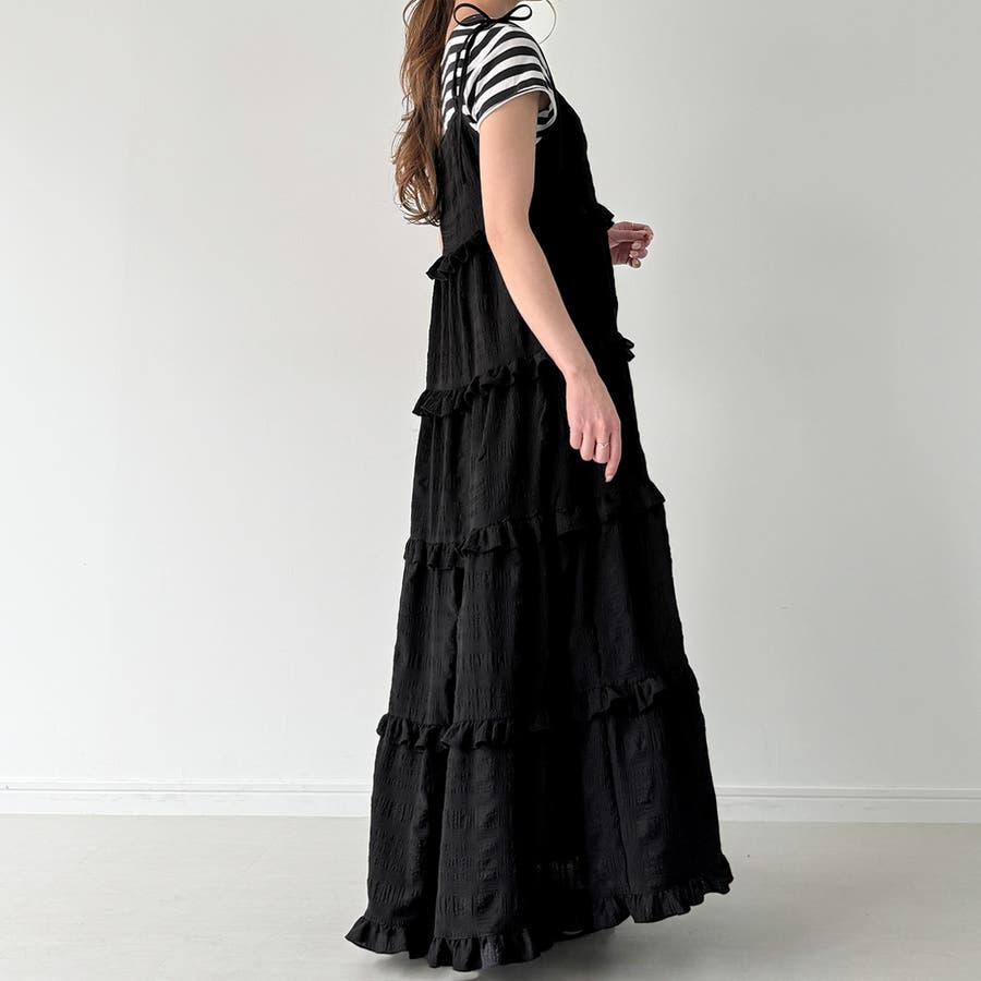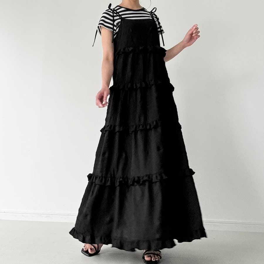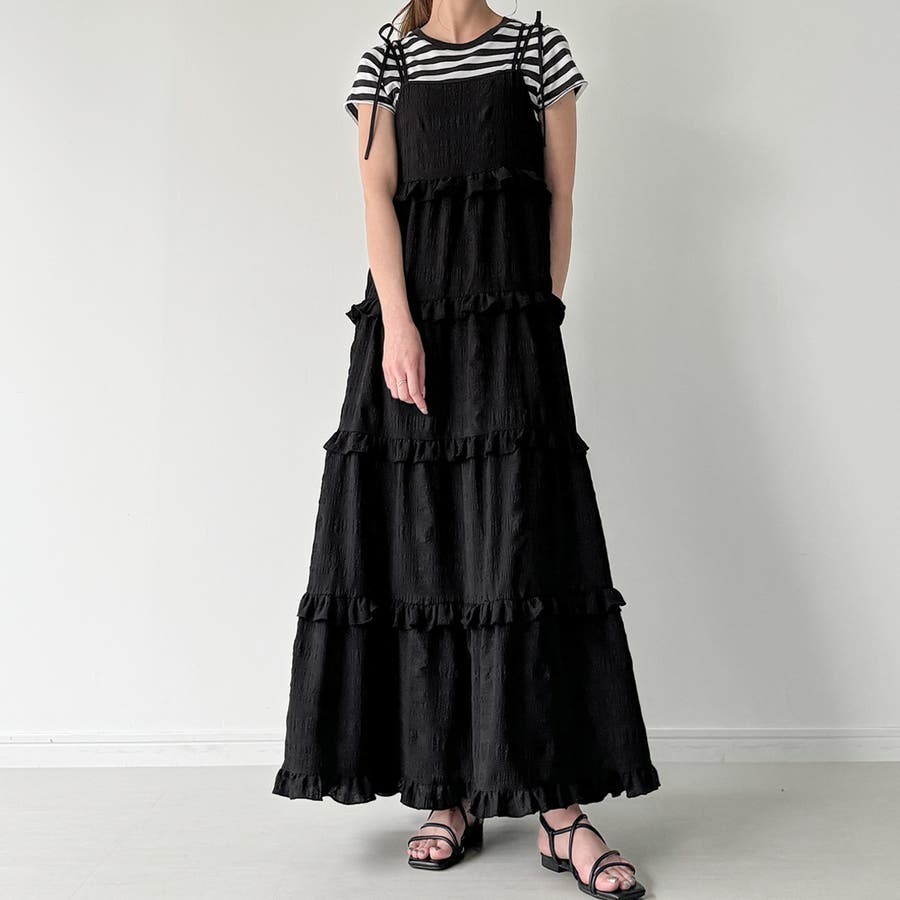 【ブラック】ポコポコフリルティアードキャミワンピース