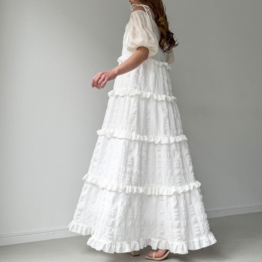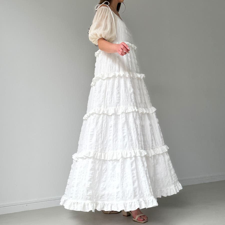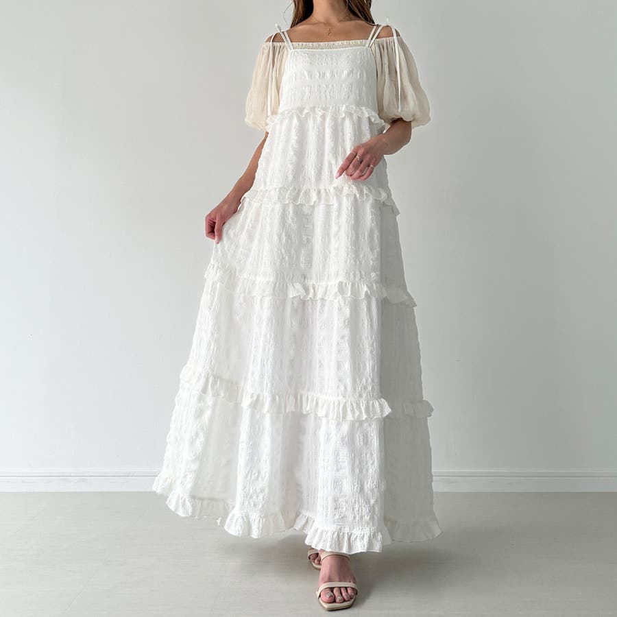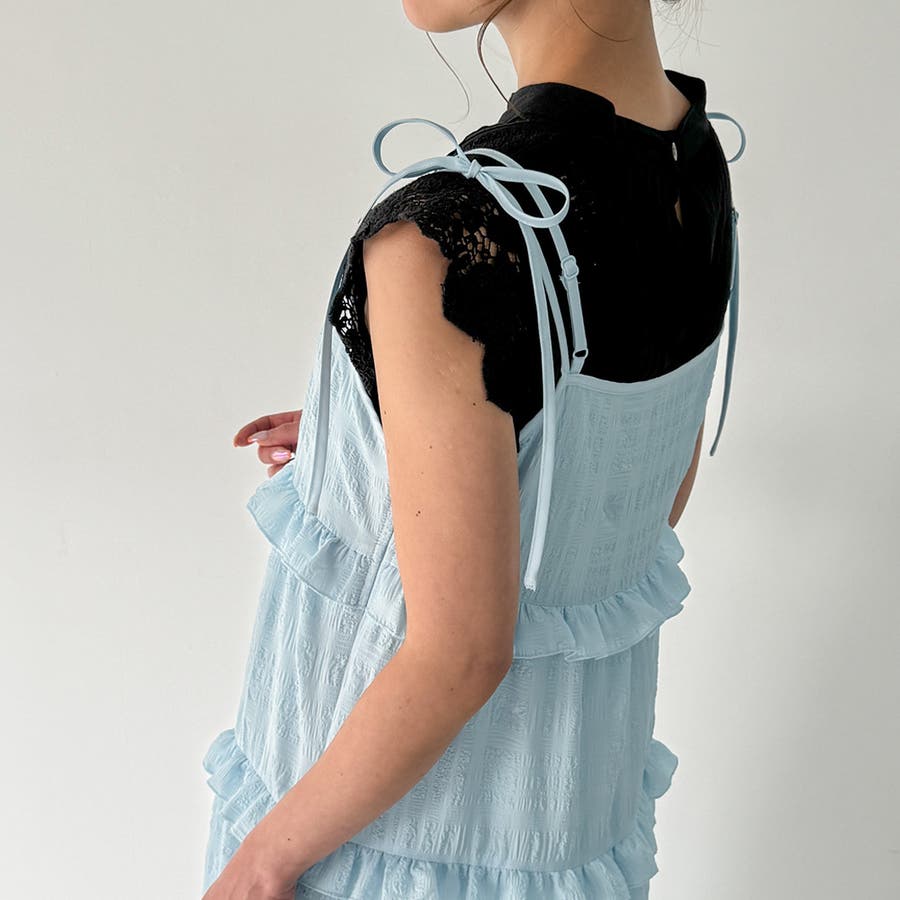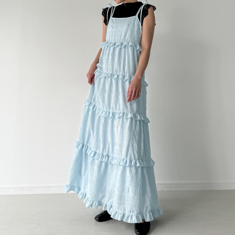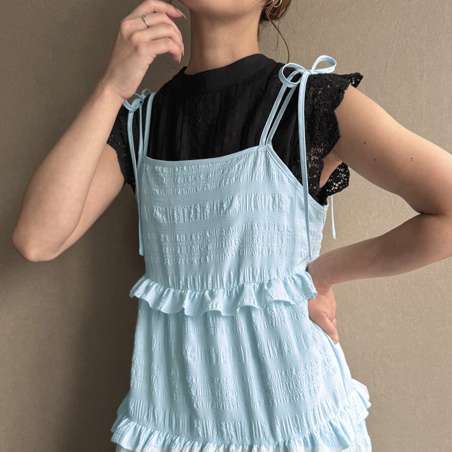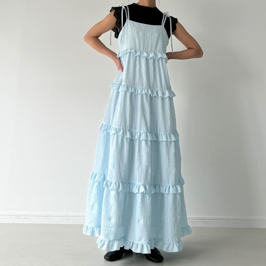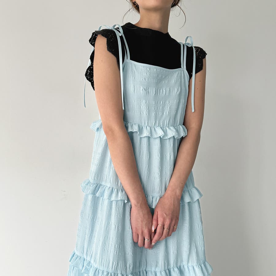【ブラック】ポコポコフリルティアードキャミワンピース