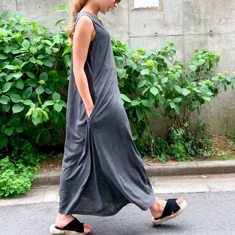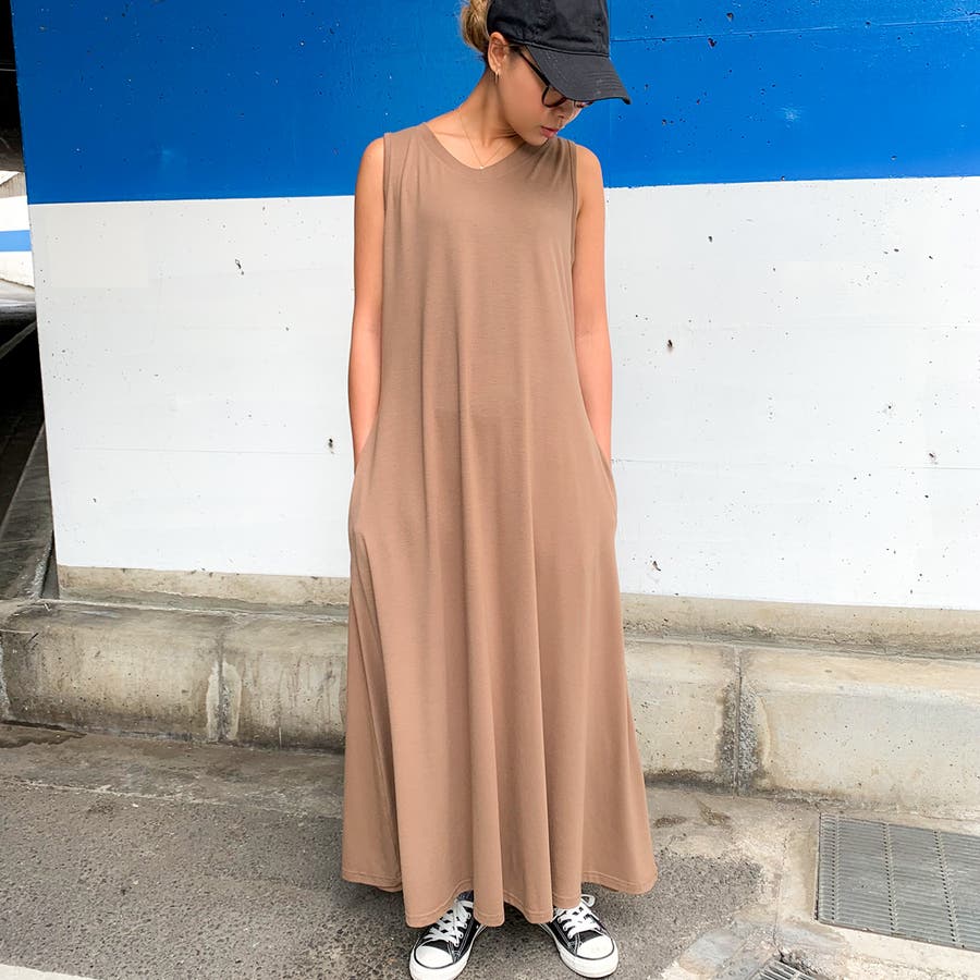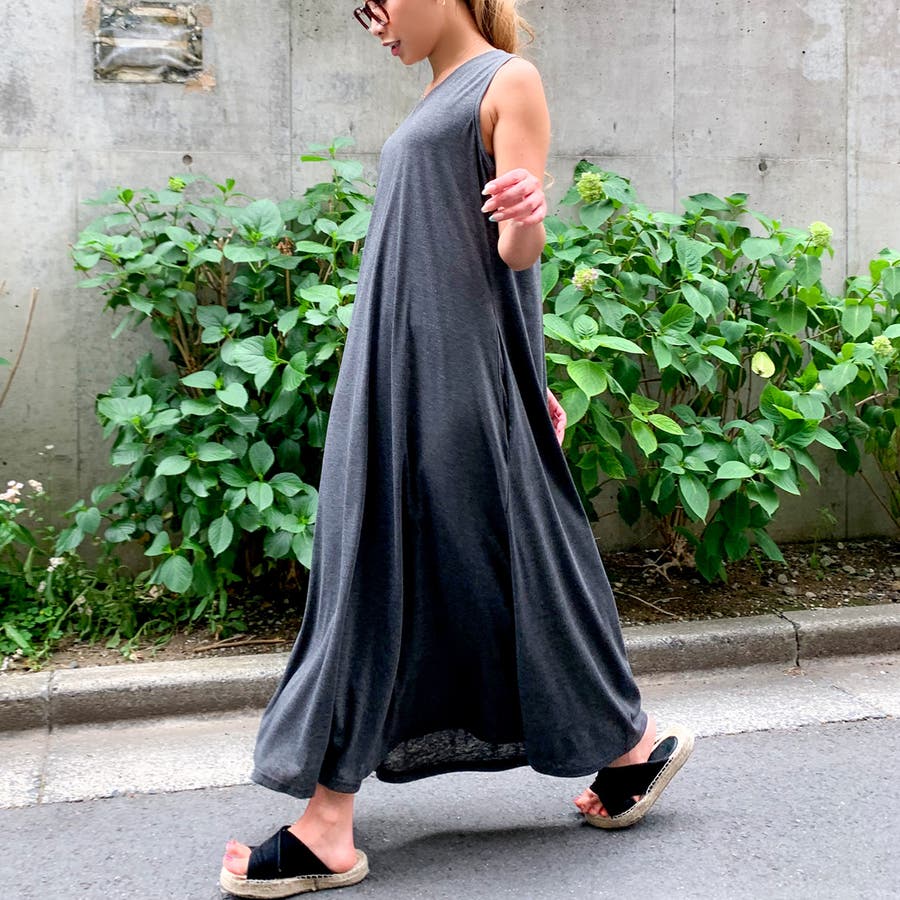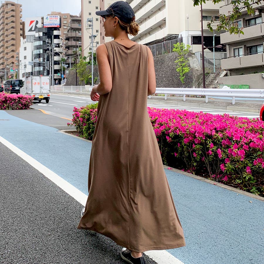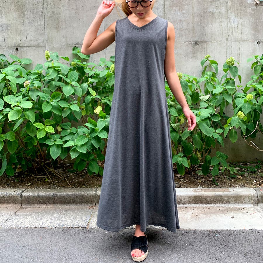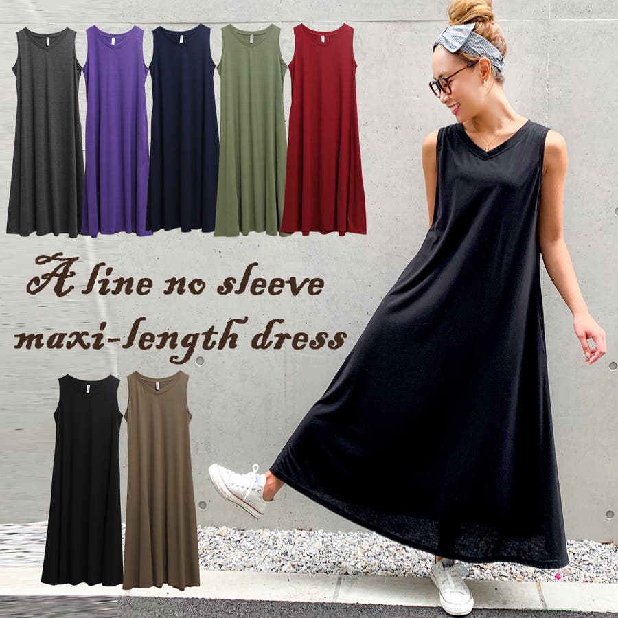Aラインノースリーブマキシ丈ワンピース
