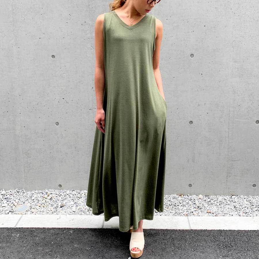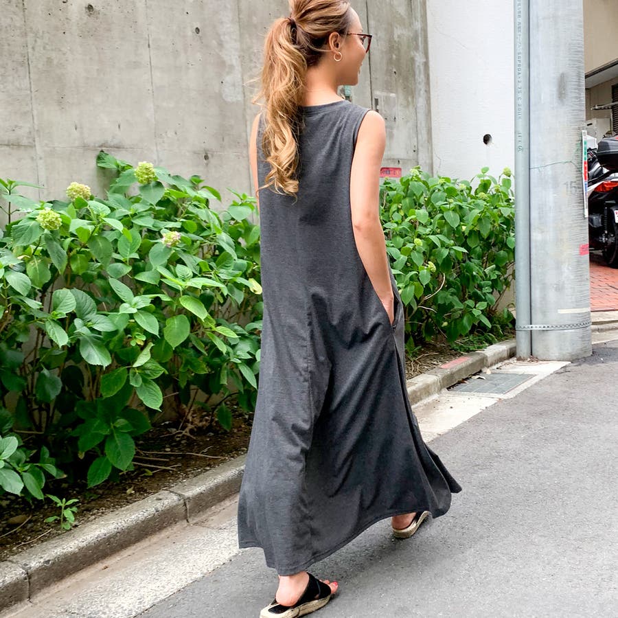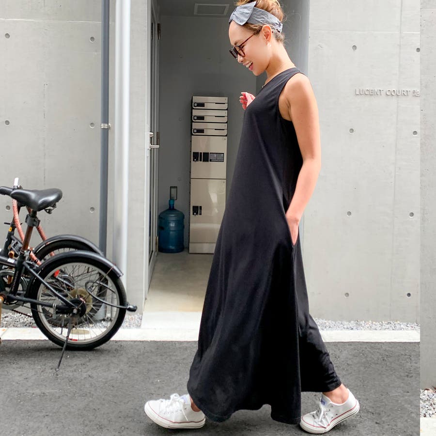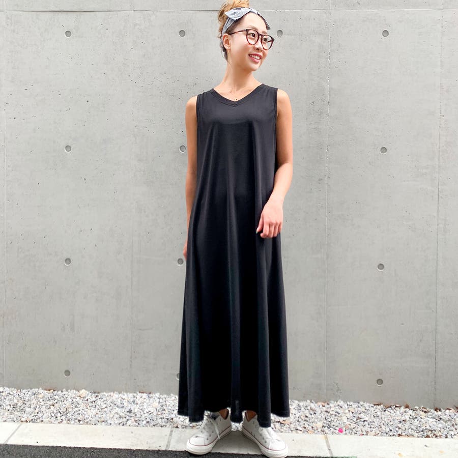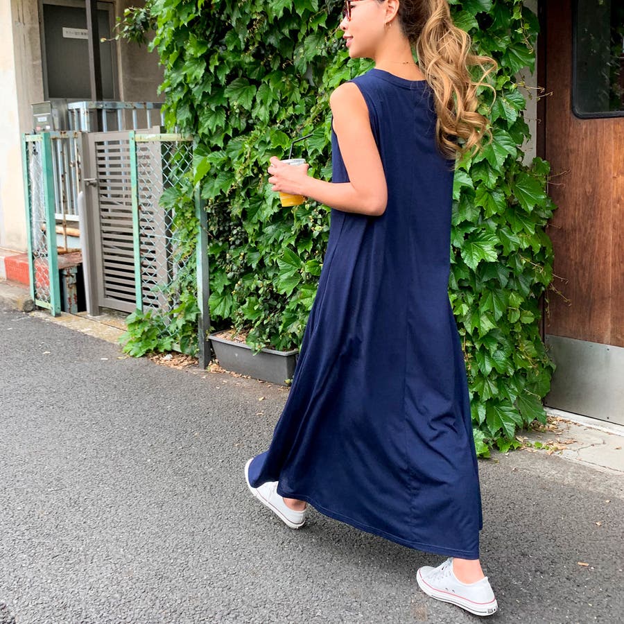 Aラインノースリーブマキシ丈ワンピース