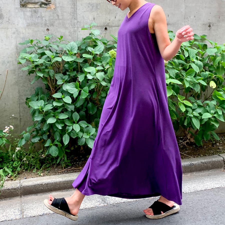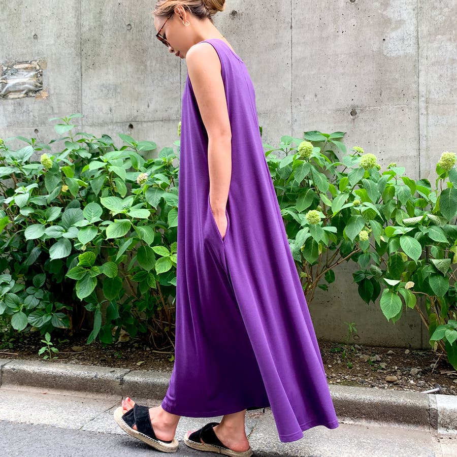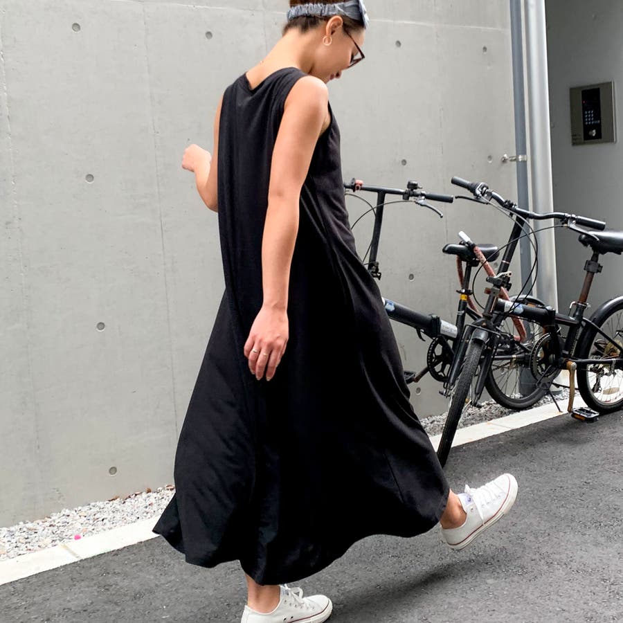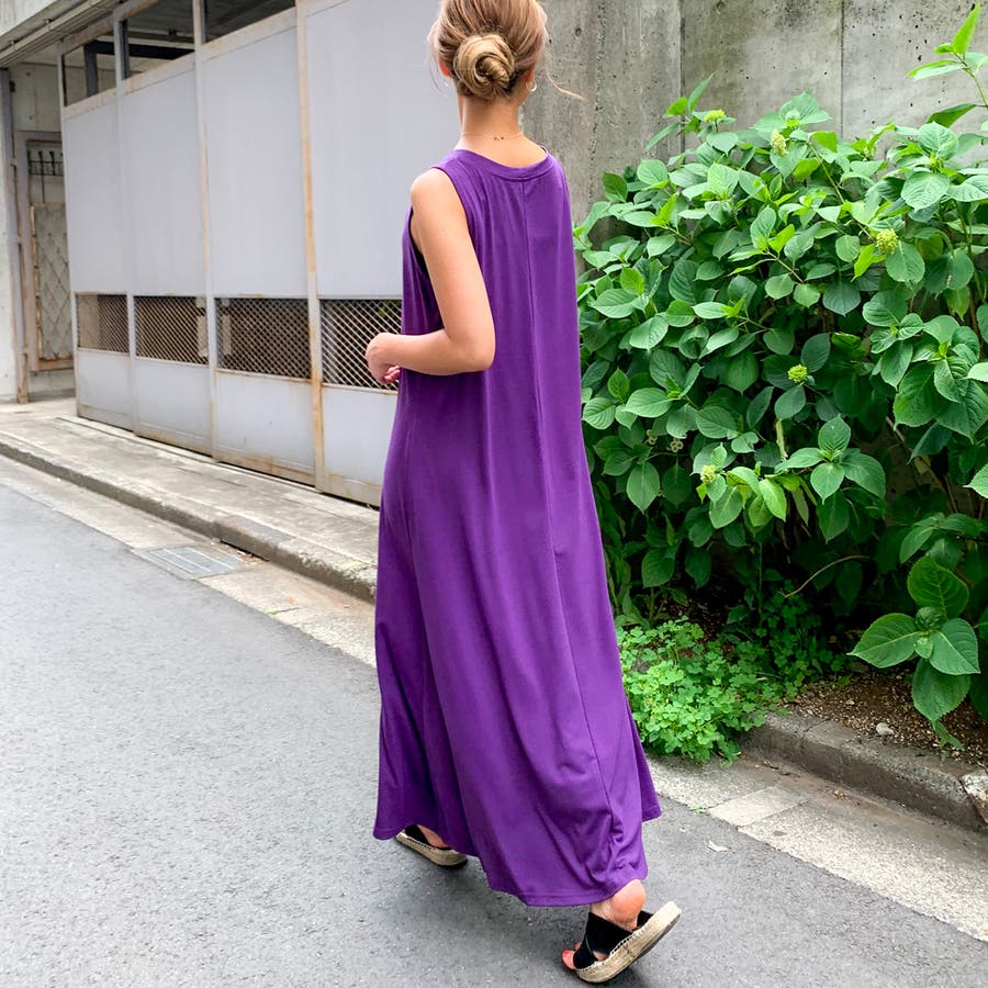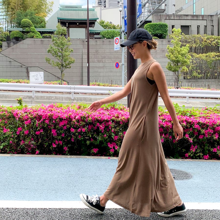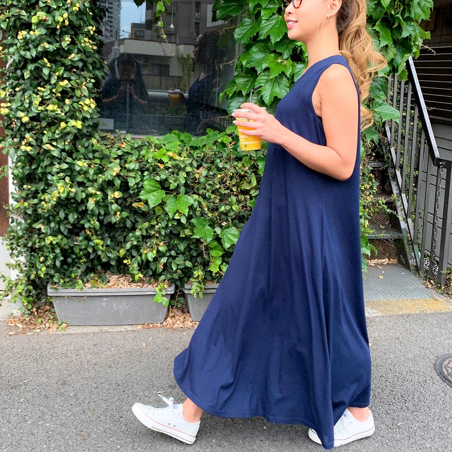 Aラインノースリーブマキシ丈ワンピース