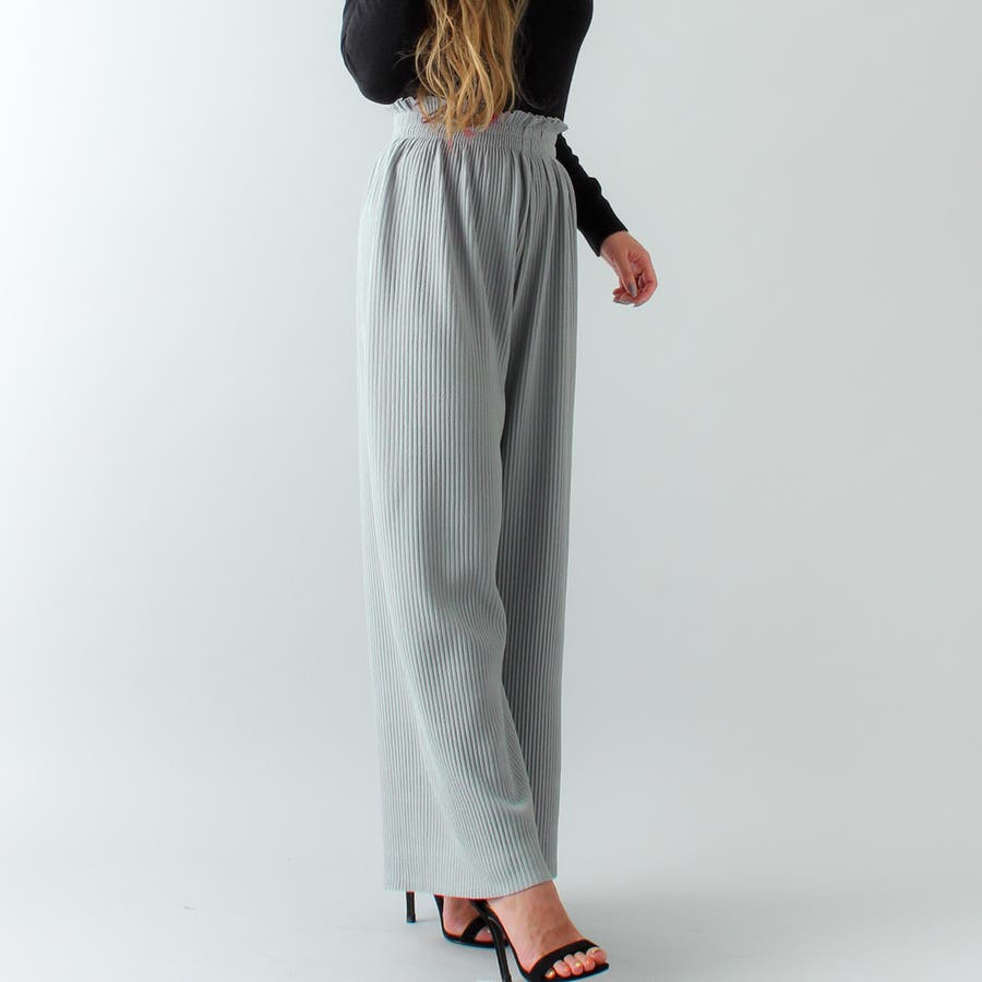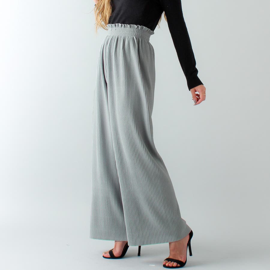 【ライトグレー】プリーツリラックスワイドパンツ ゆったり リラックス