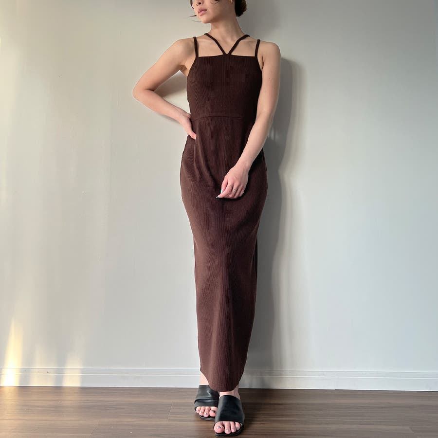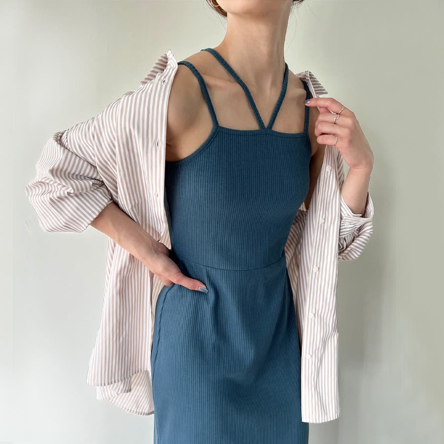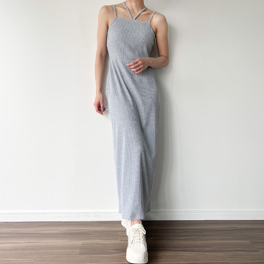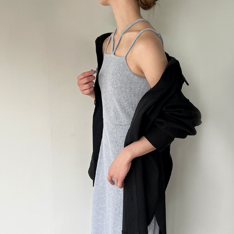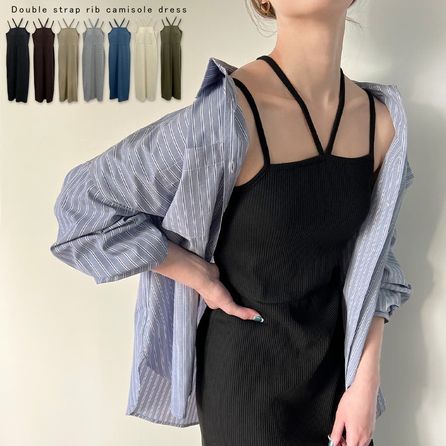 ダブルストラップリブキャミワンピース