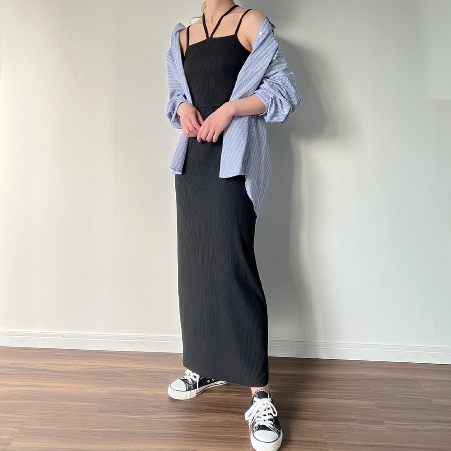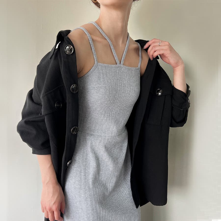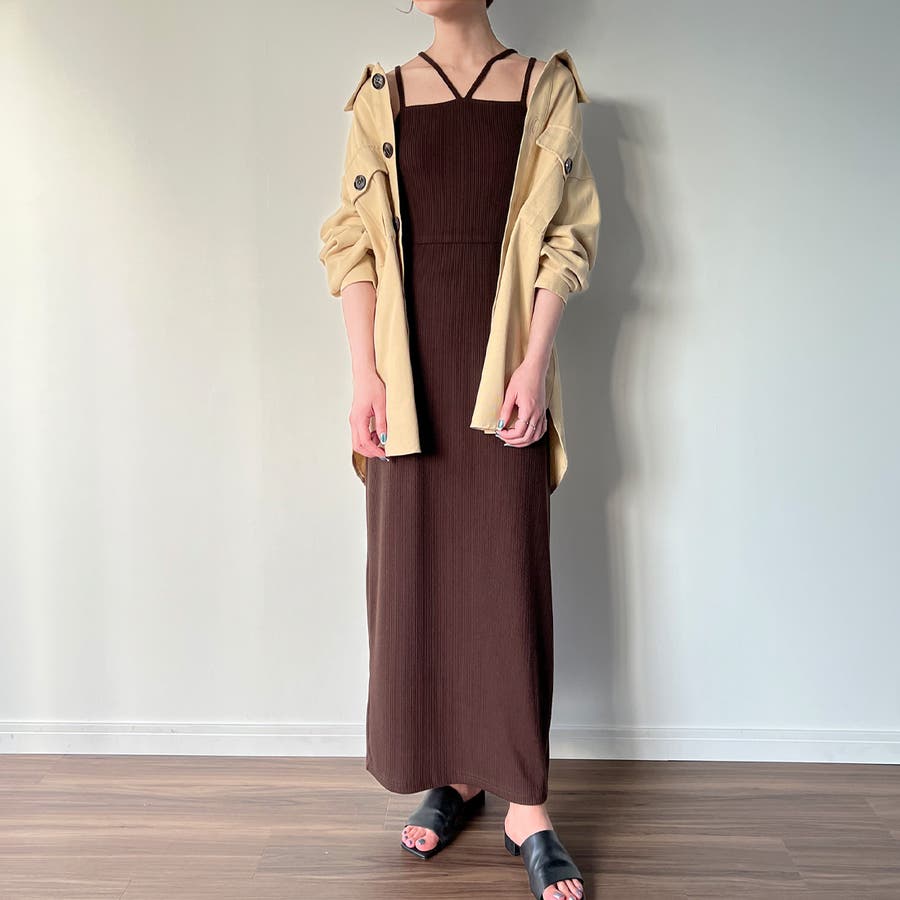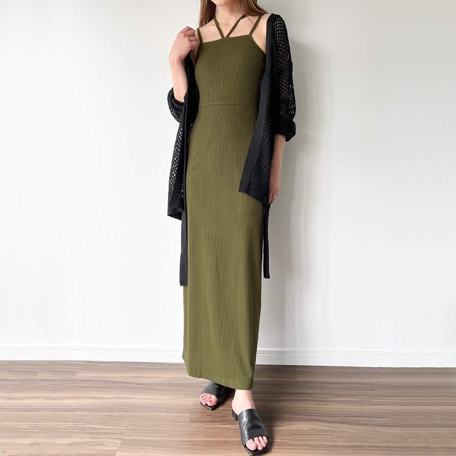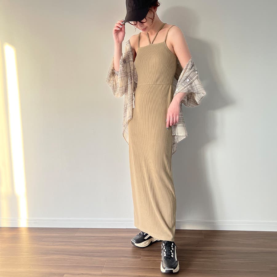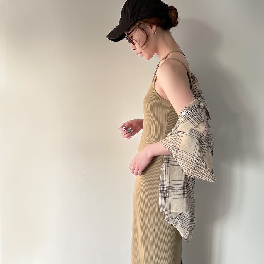 ダブルストラップリブキャミワンピース