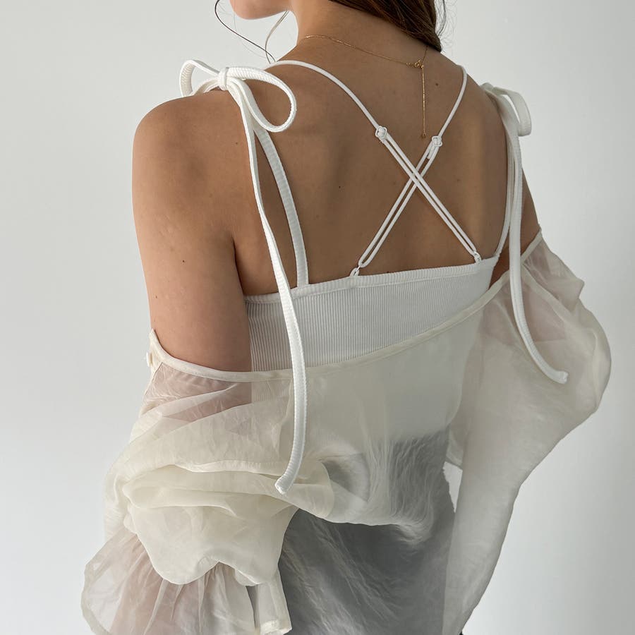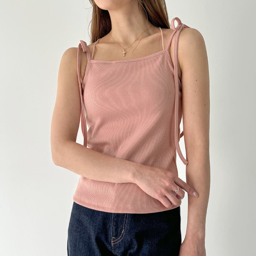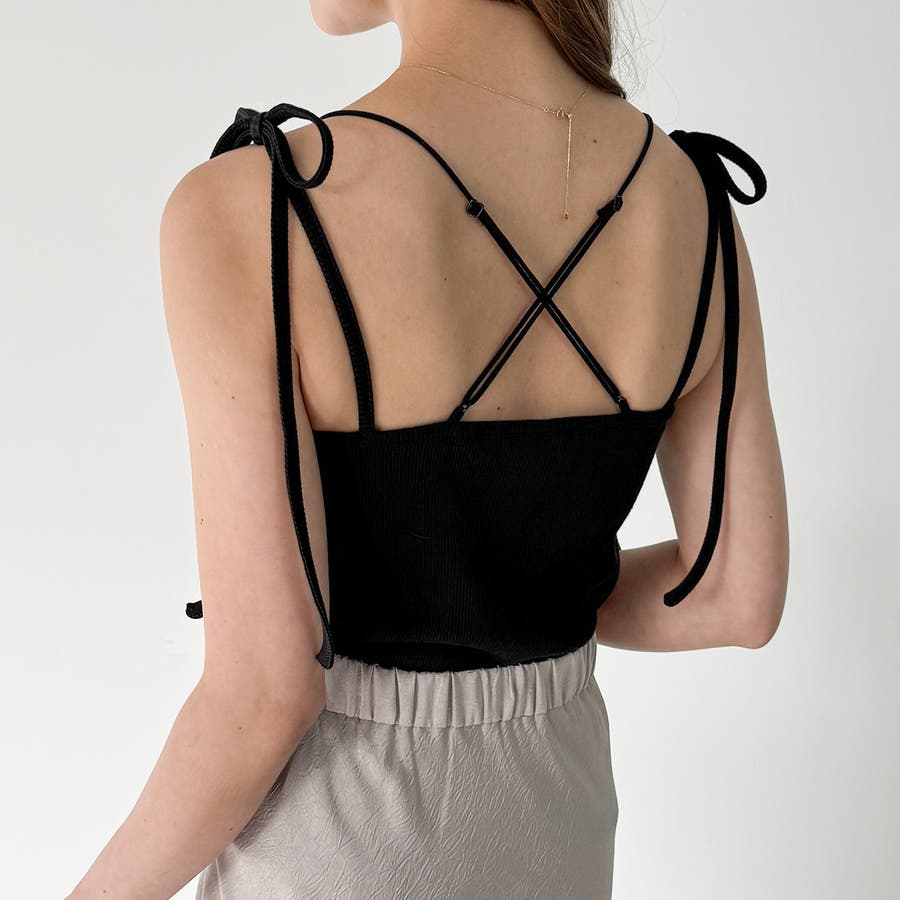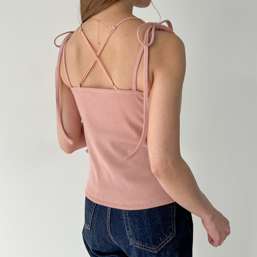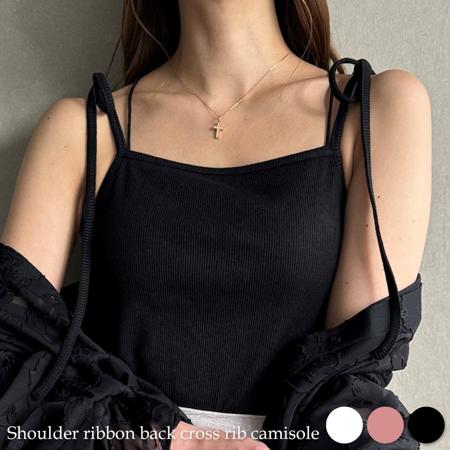 【取り外し可能パット付き】肩リボンバッククロスリブキャミソール